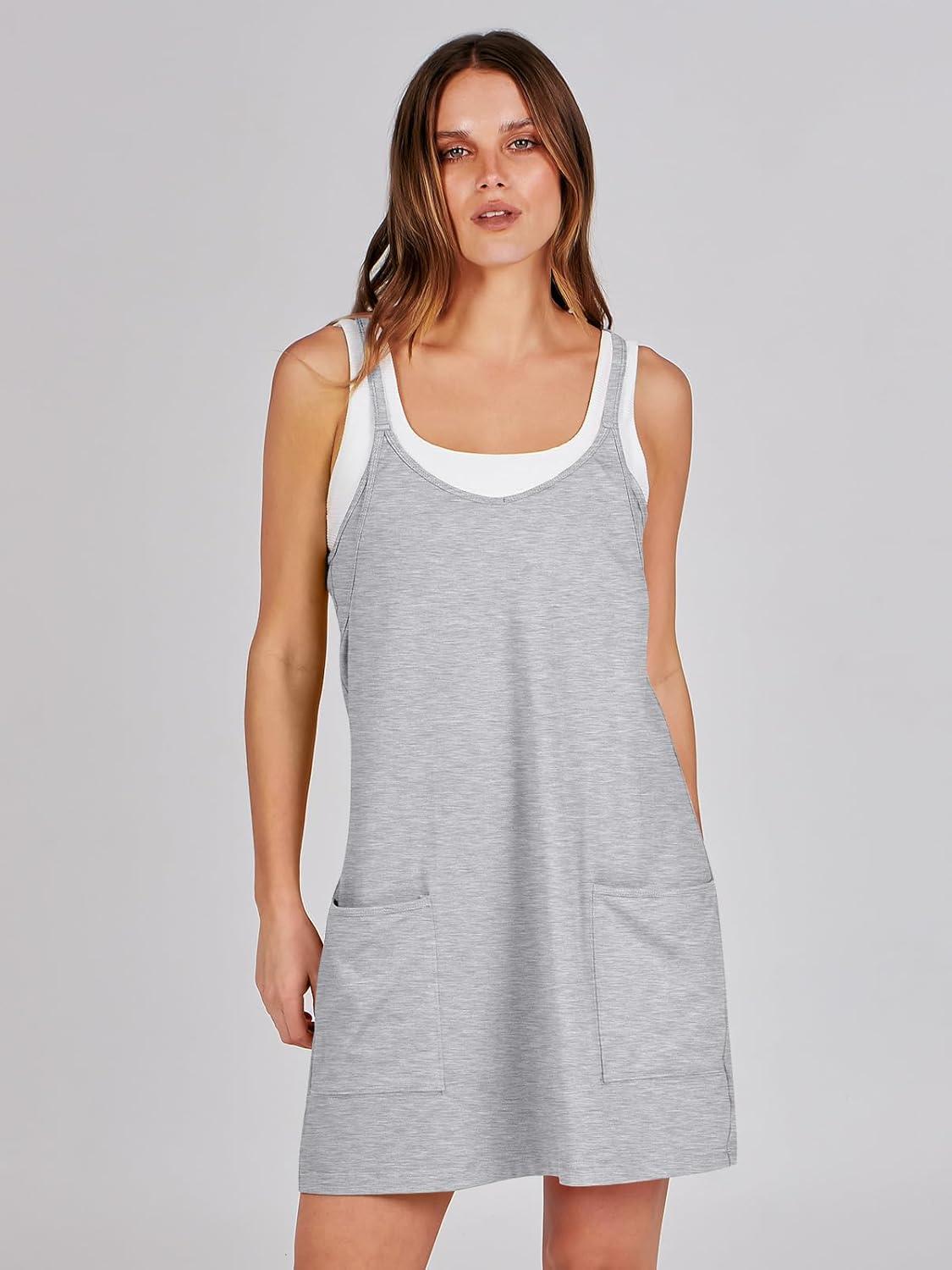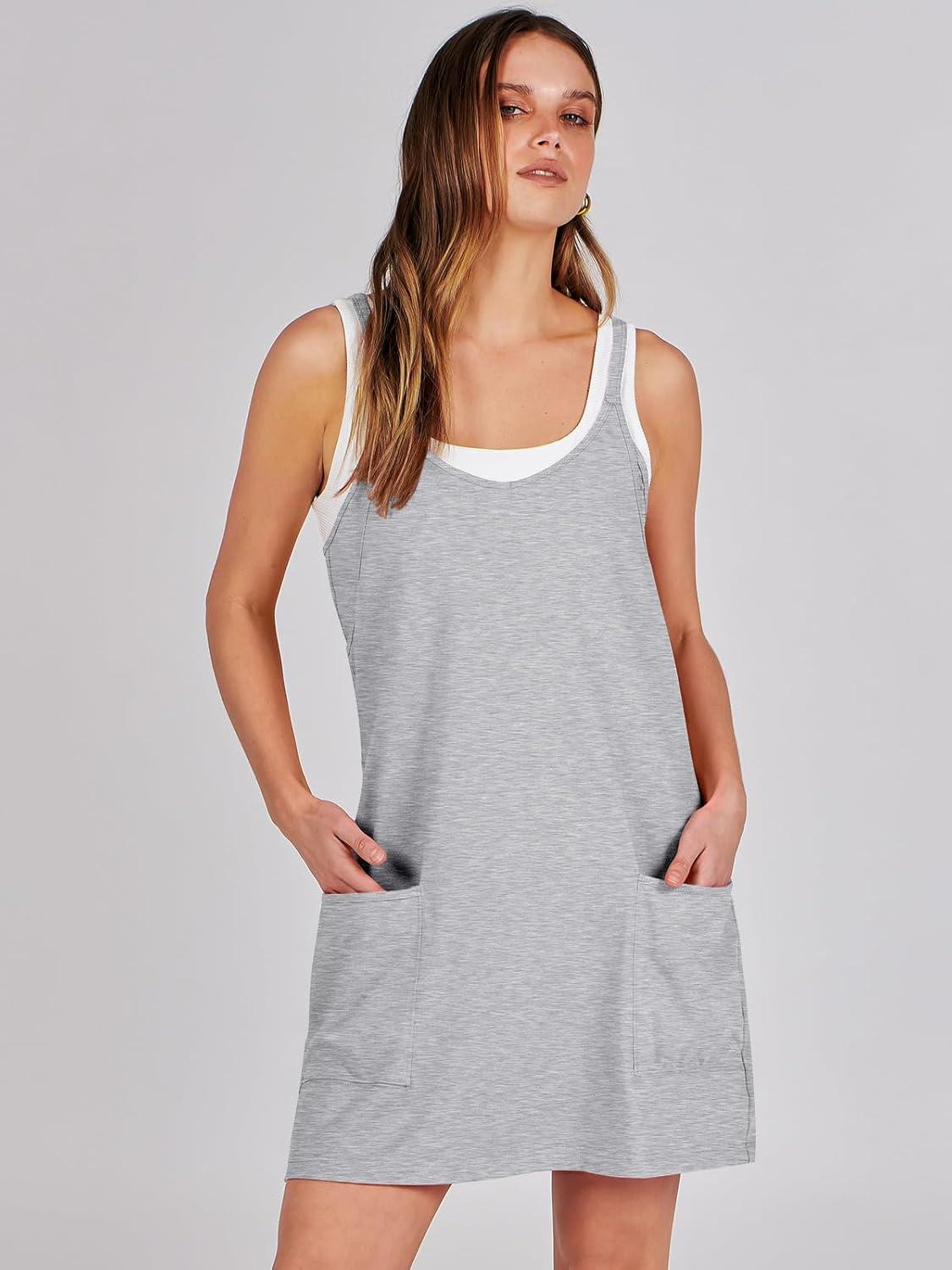 ANRABESS Women Athletic Dress Summer Tennis Workout Active Sports Mini Romper Dress Built in Shorts Travel Vacation Clothes(Heather Gray)
