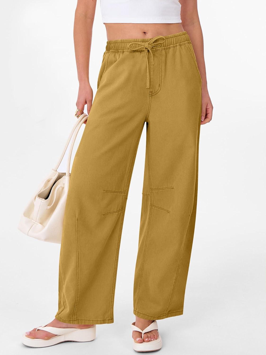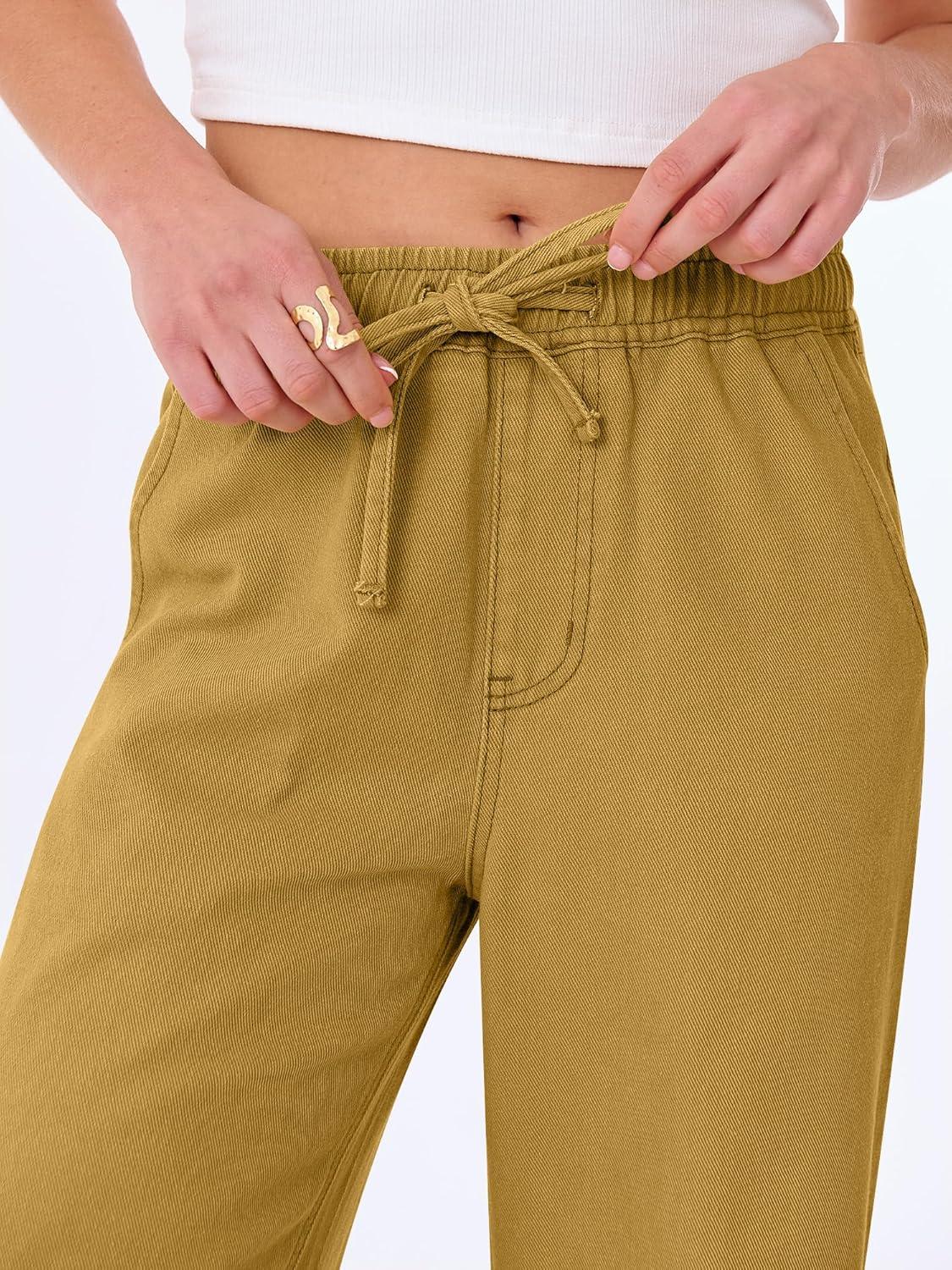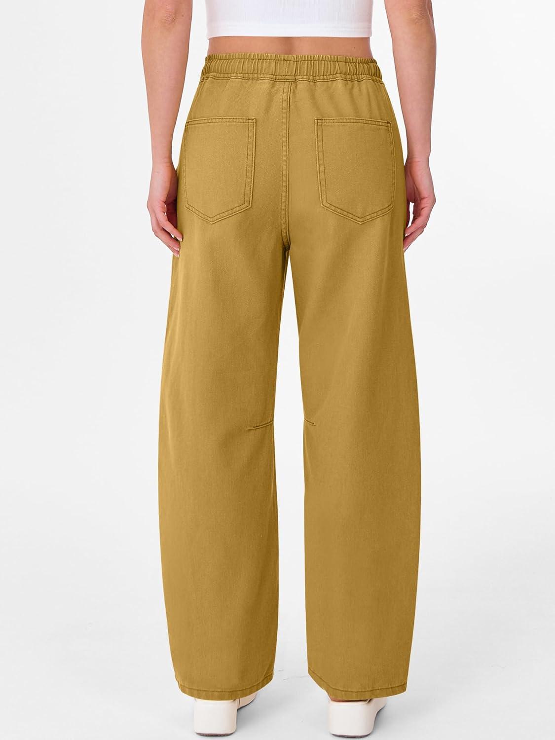 ANRABESS Women Barrel Jeans High Waisted Wide Leg Drawstring Denim Pants Y2K Baggy Loose Fit Trouser Jeans with Pockets(Light Khaki)