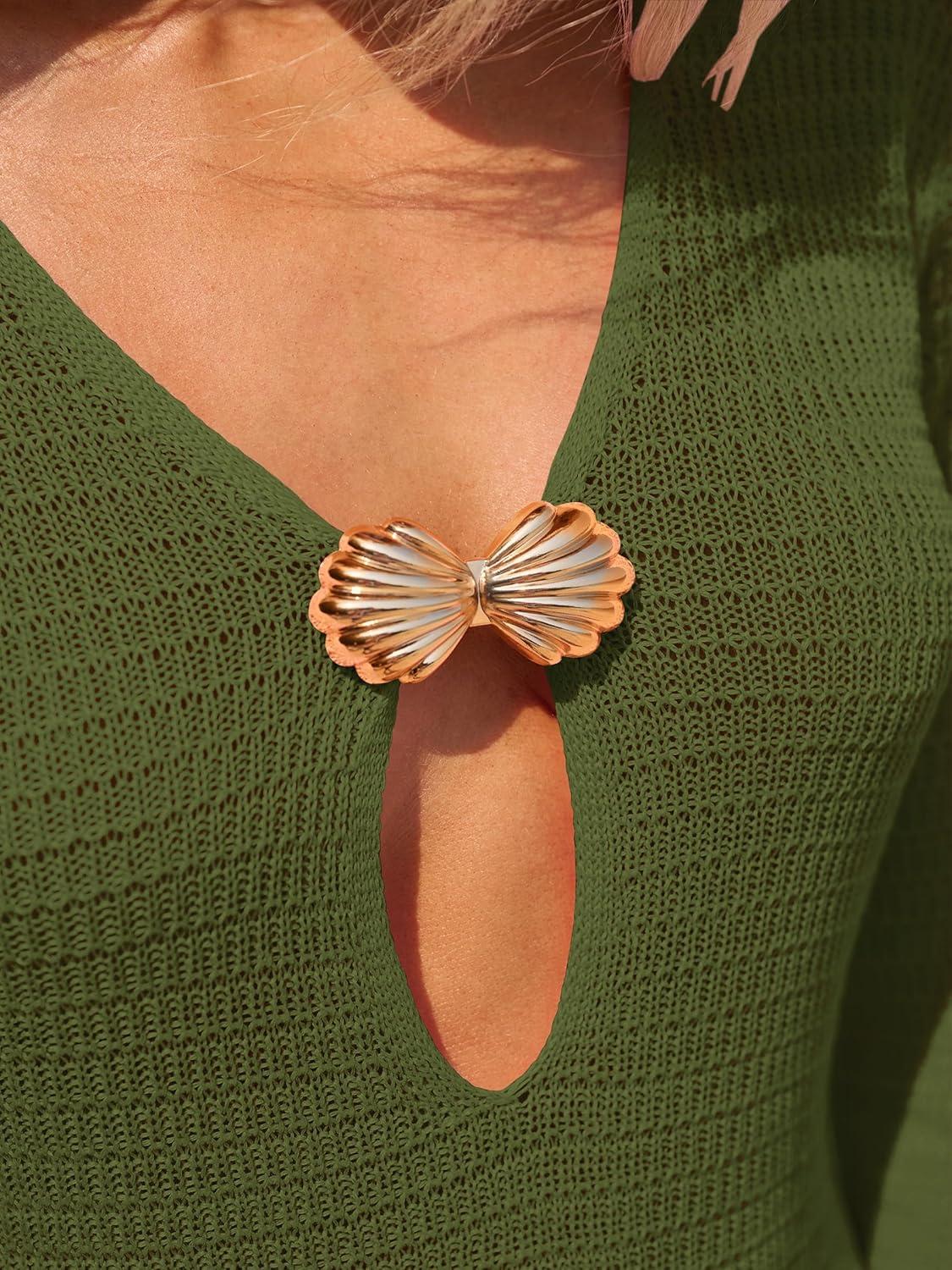 imageANRABESS Women Beach Cover Ups 2026 Summer Crochet Knit Swimwear Mesh Bathing Suit Hollow Out Dress Swimsuit Vacation ClothesGreen