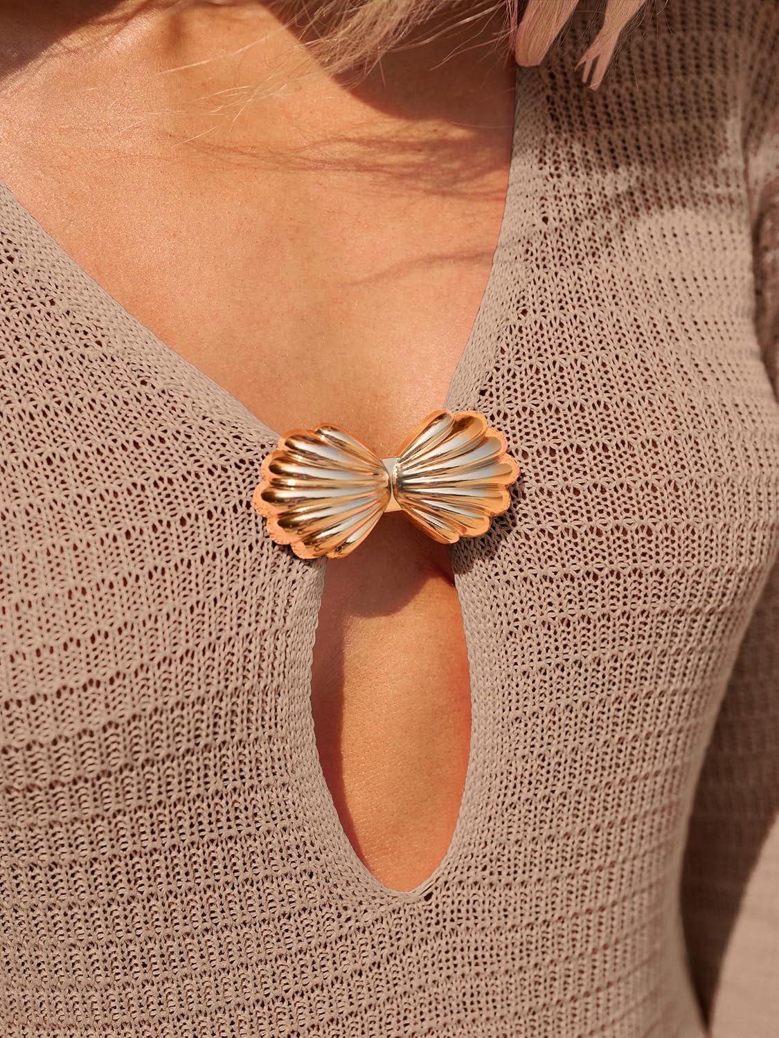 imageANRABESS Women Beach Cover Ups 2026 Summer Crochet Knit Swimwear Mesh Bathing Suit Hollow Out Dress Swimsuit Vacation ClothesKhaki