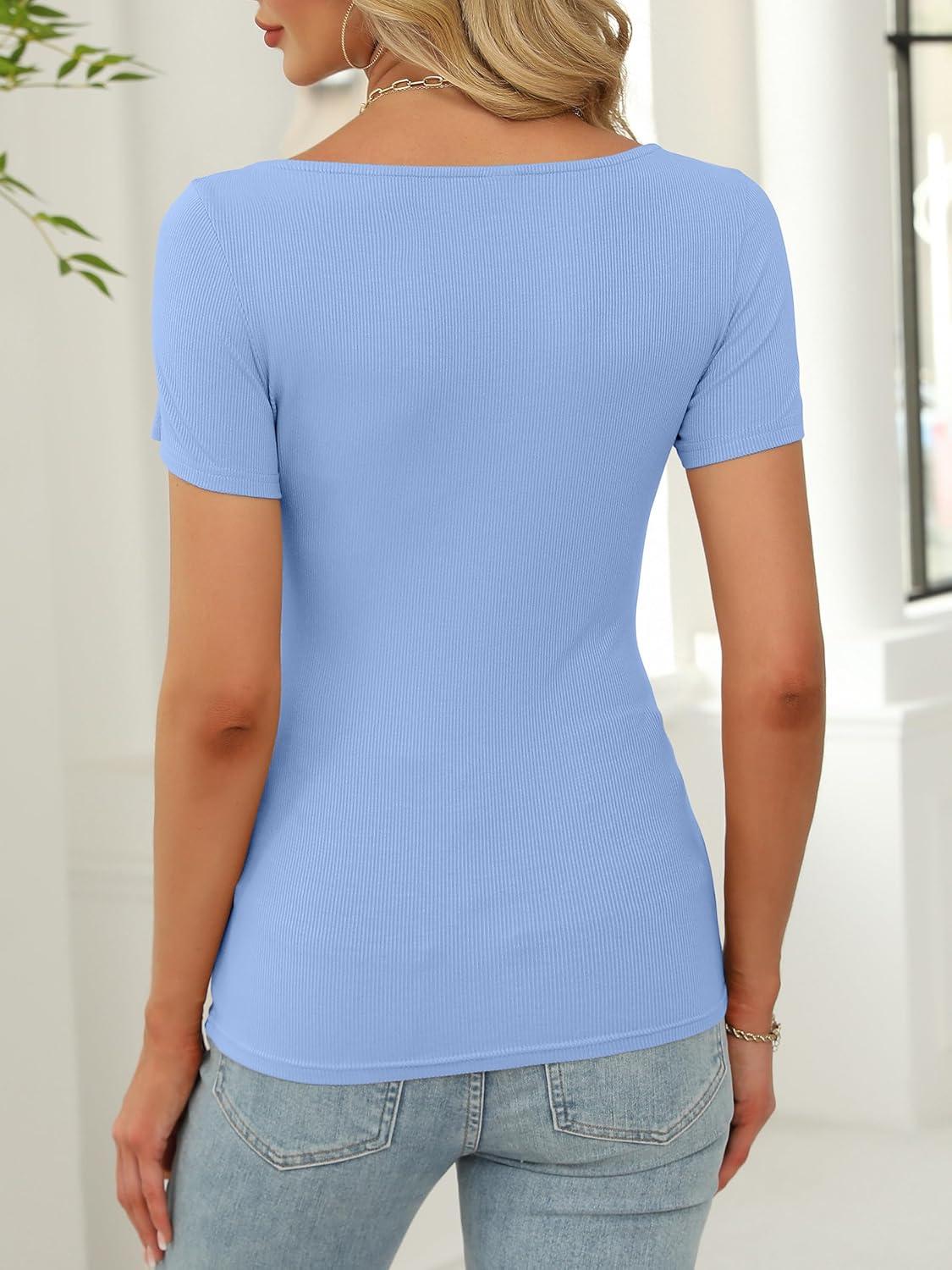 imageANRABESS Women Boat Neck Tops Short Sleeve TShirts Ribbed Knit Tight Fitted Basic Tees Shirts 2025 Summer ClothesSky Blue