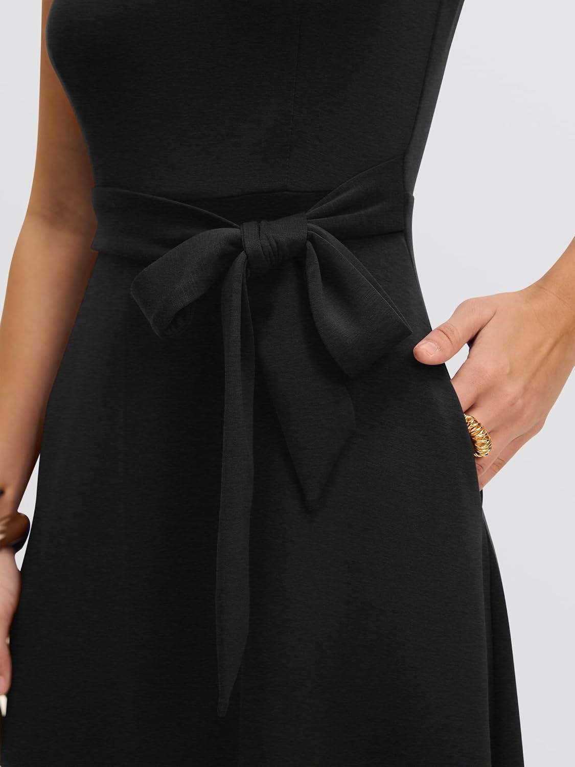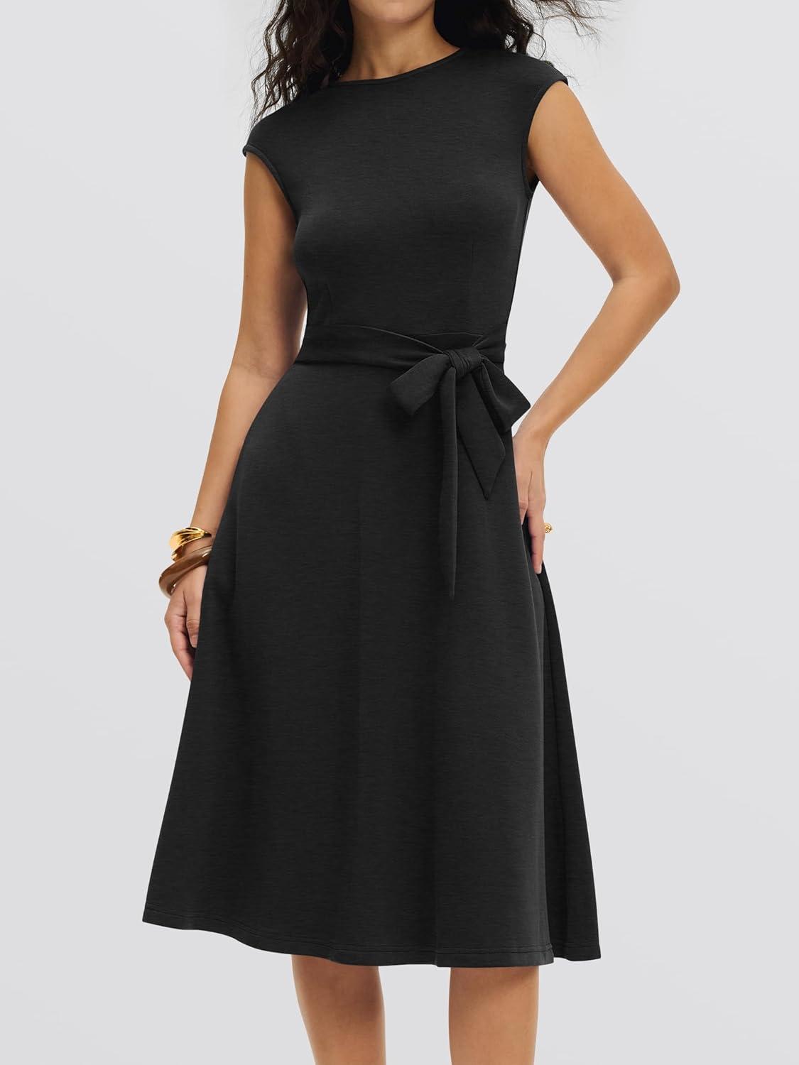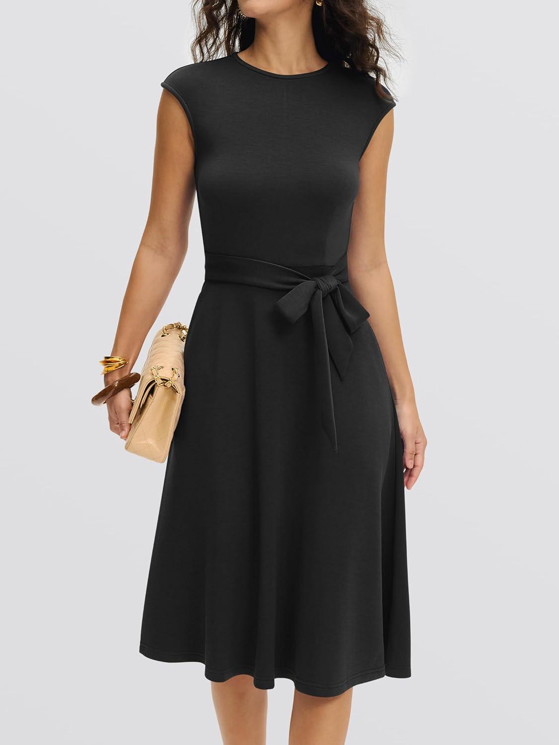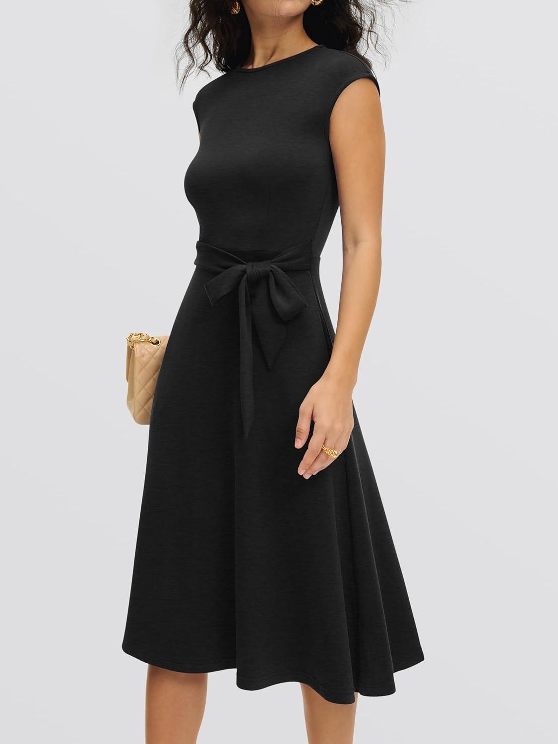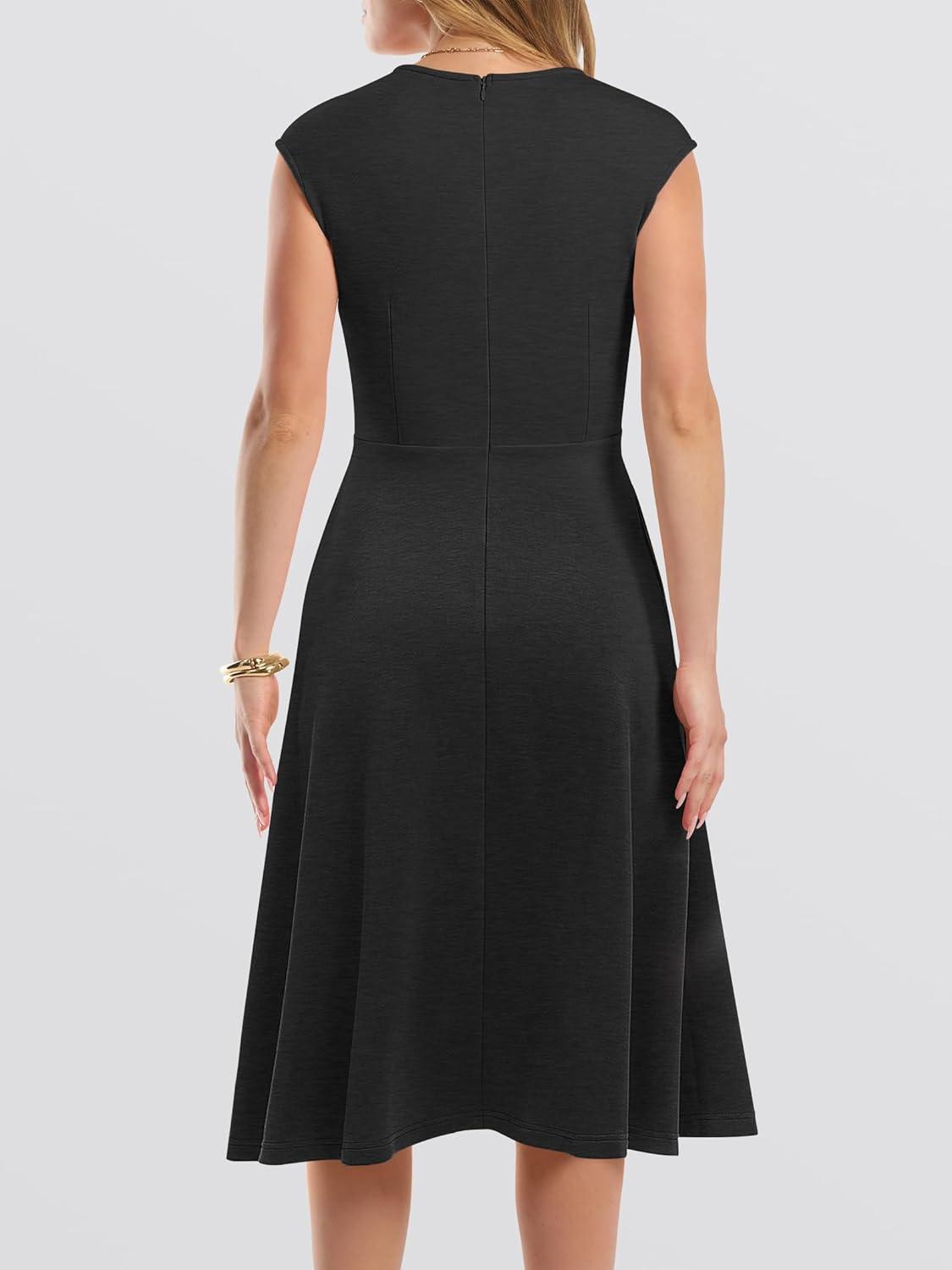 ANRABESS Women Cap Sleeve Cocktail Party Semi Formal Midi Dress 2026 Summer Spring A-Line Swing Wedding Guest Vintage Dresses(Black)