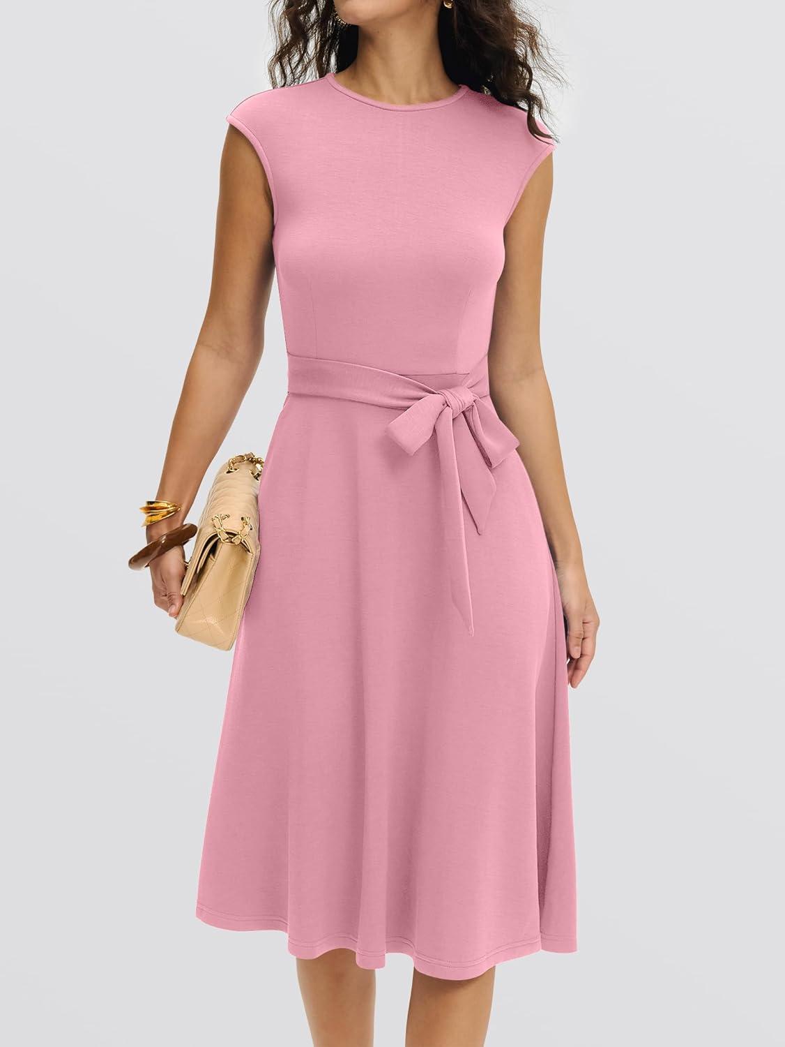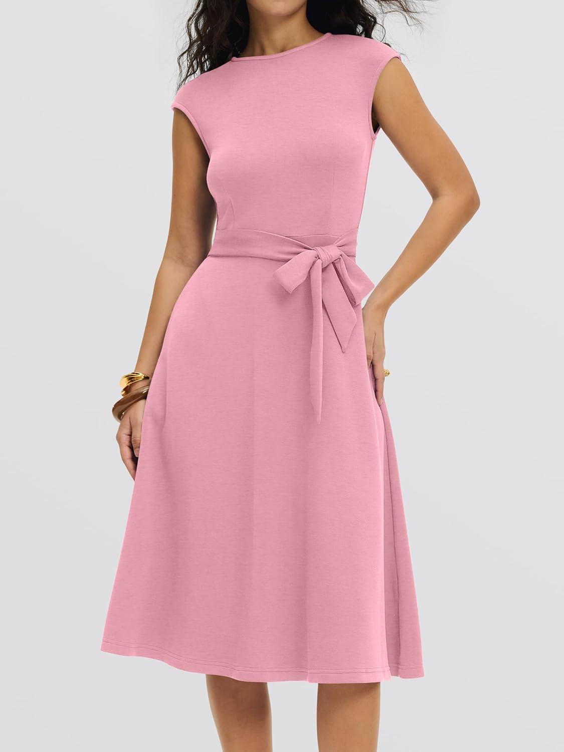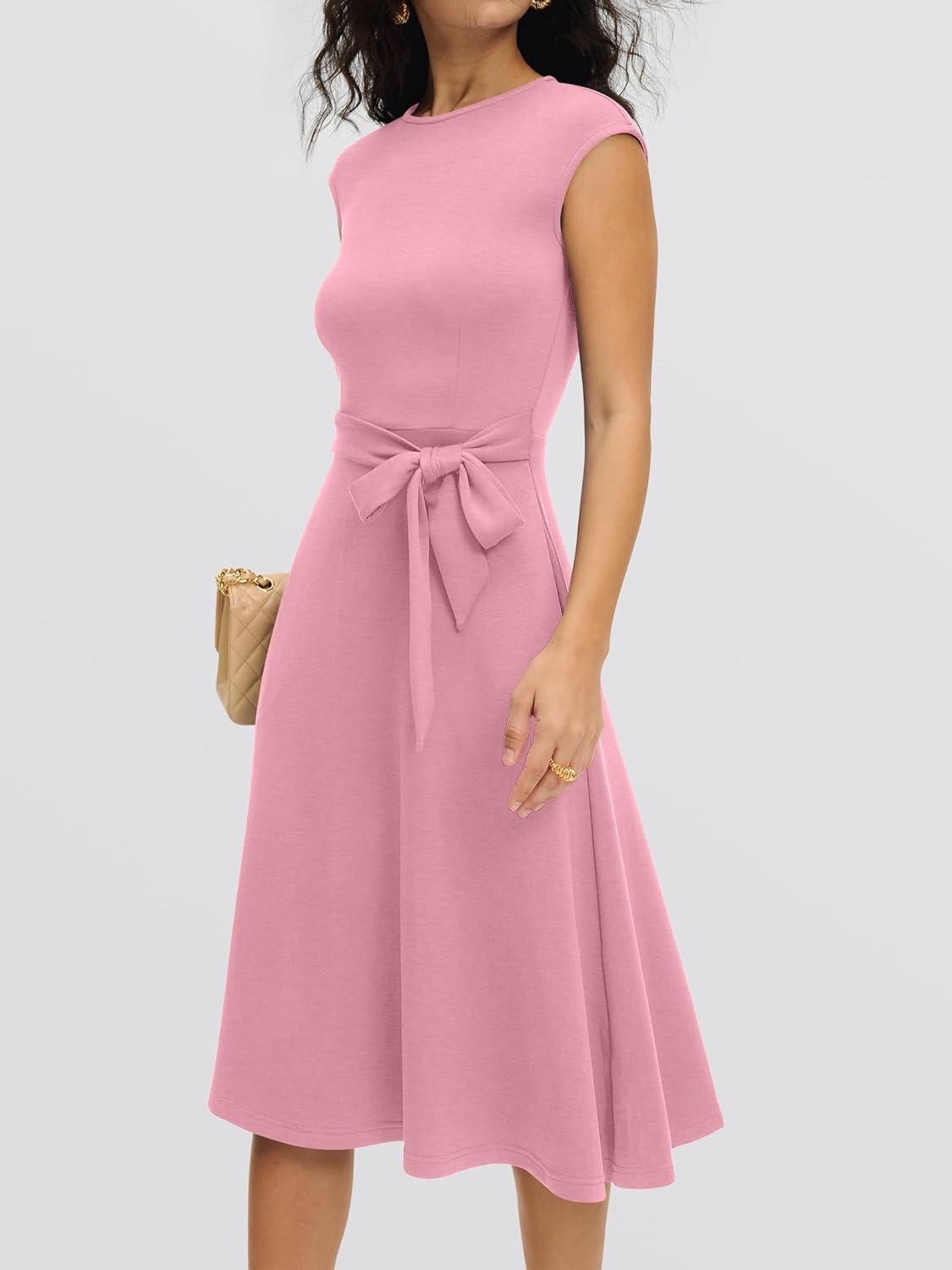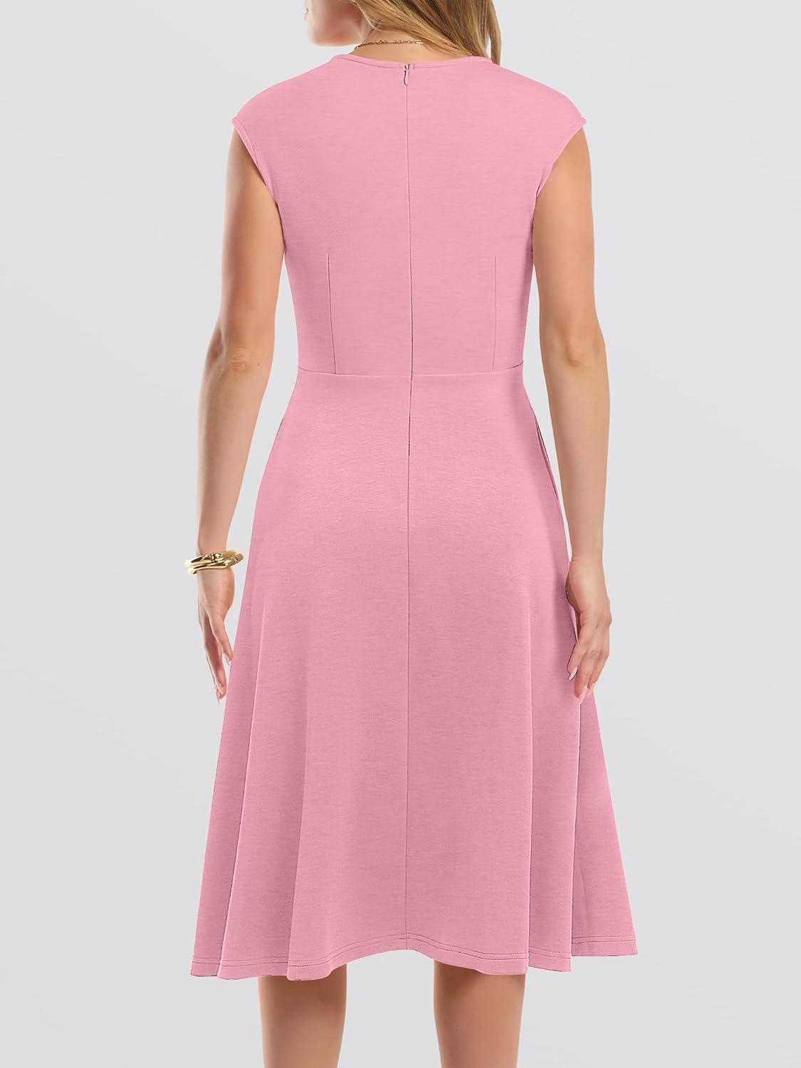 ANRABESS Women Cap Sleeve Cocktail Party Semi Formal Midi Dress 2026 Summer Spring A-Line Swing Wedding Guest Vintage Dresses(Pink)