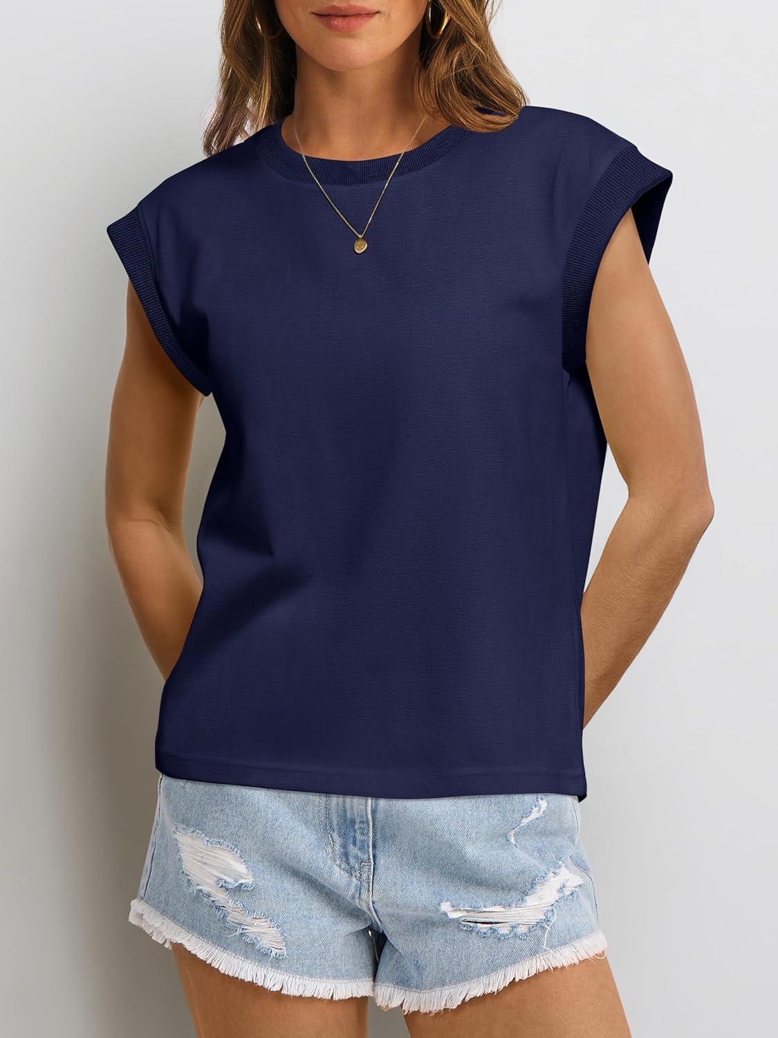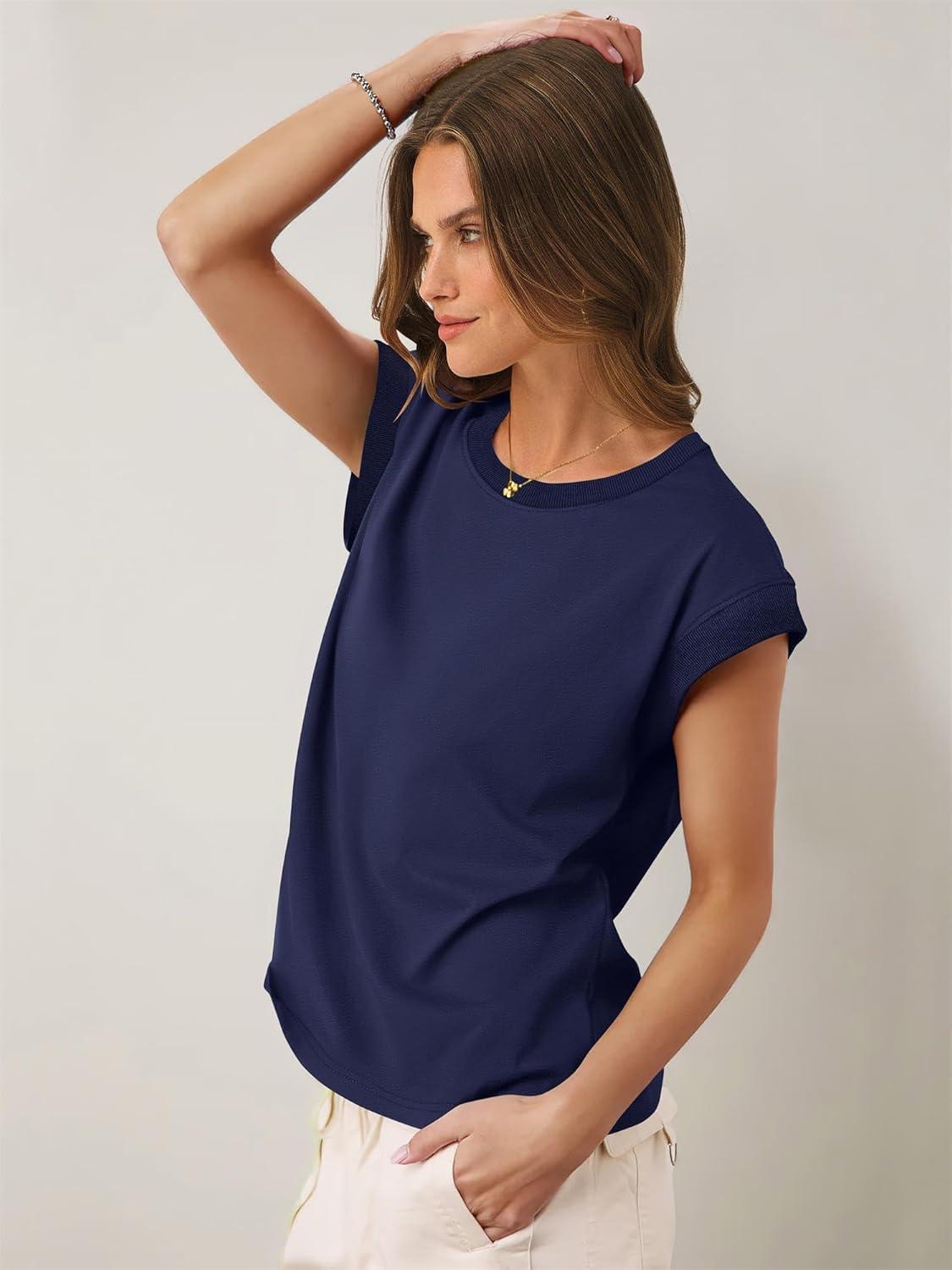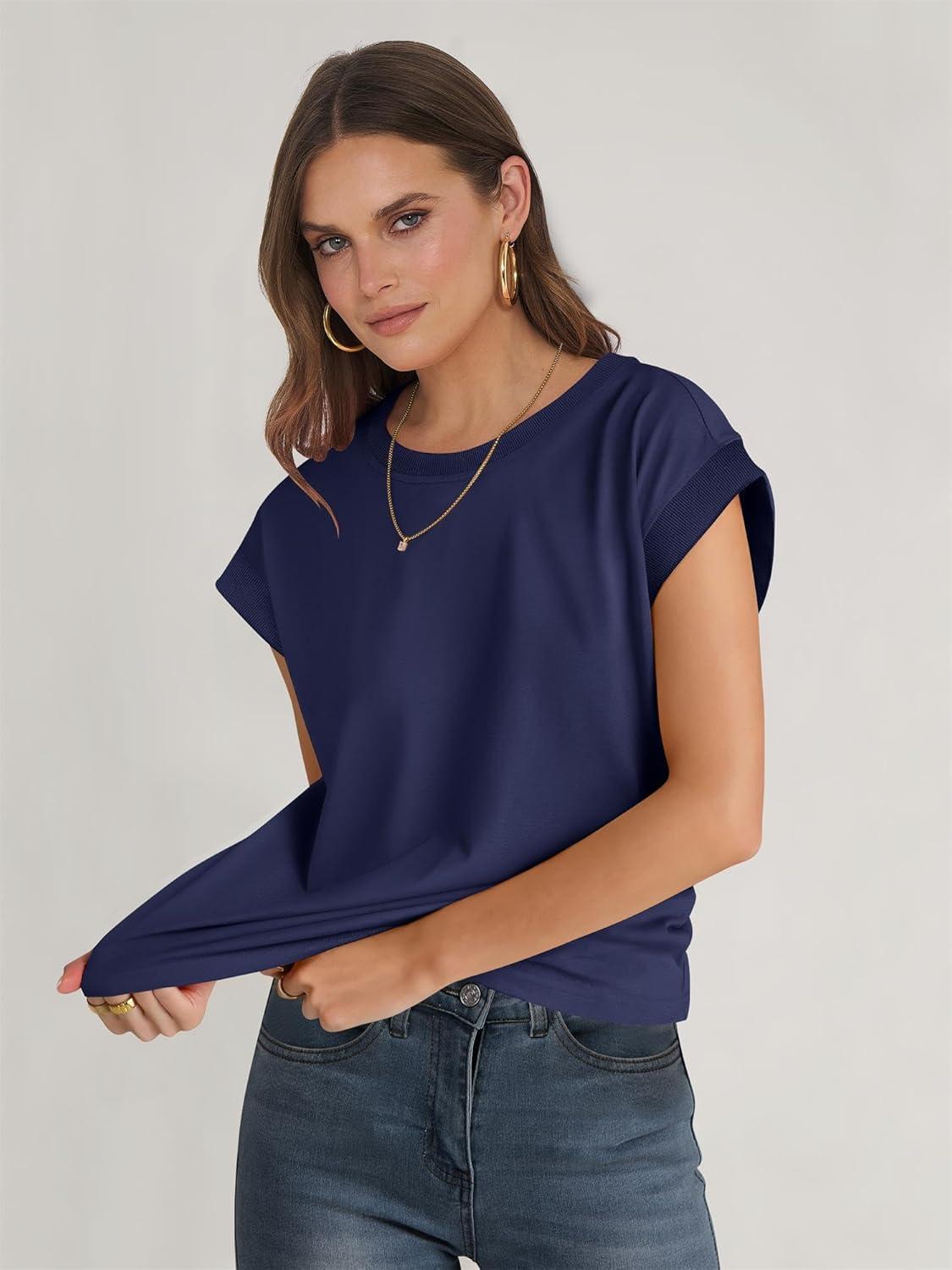 ANRABESS Women Cap Sleeve Tops 2025 Trendy Summer Loose Fit Cute Basic T Shirts Business Dressy Casual Outfits Clothes(Navy Blue)