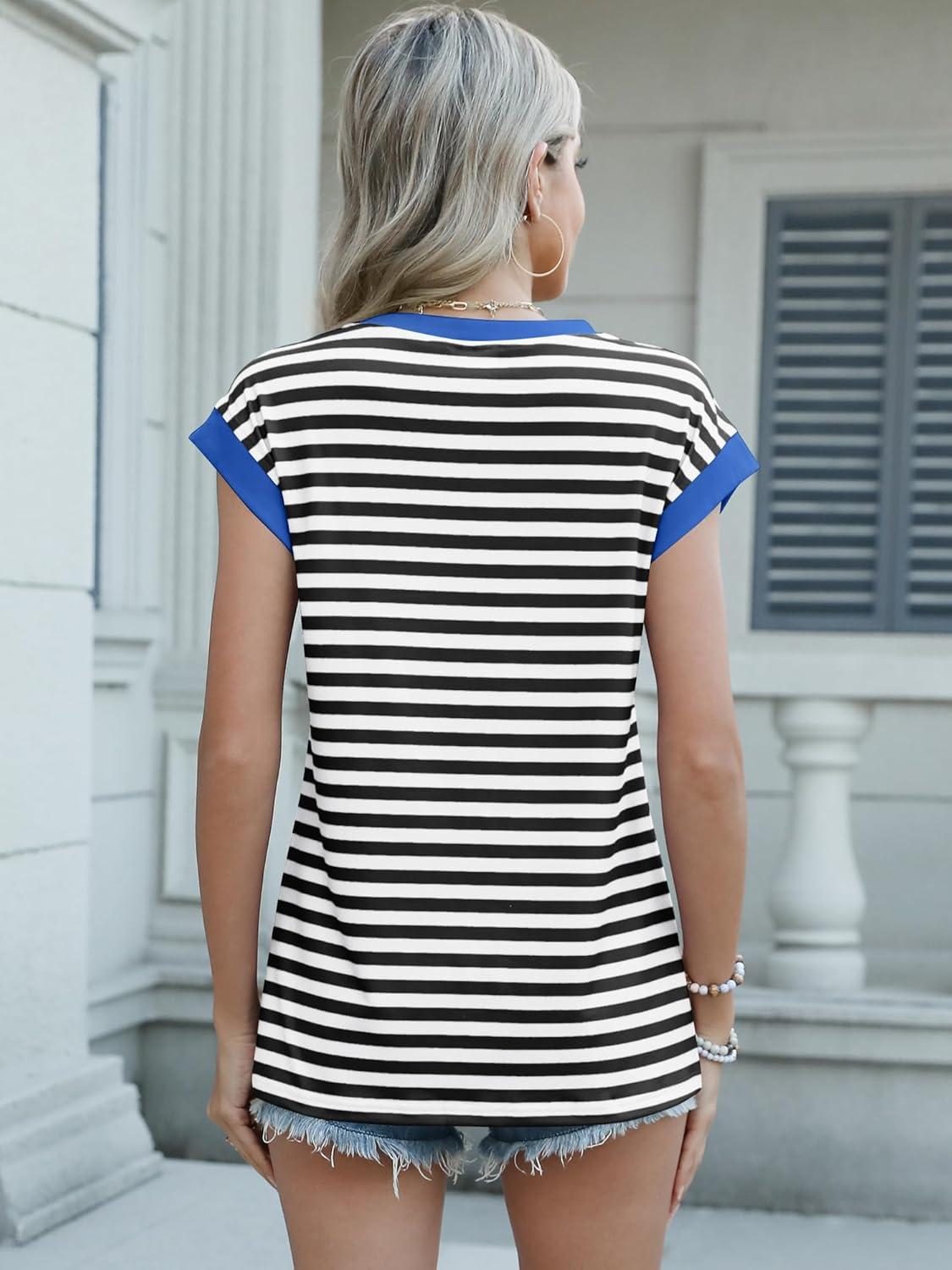 ANRABESS Women Cap Sleeve Tops 2026 Trendy Summer Loose Fit Cute Basic T Shirts Business Dressy Casual Outfits Clothes(Black White Stripe)