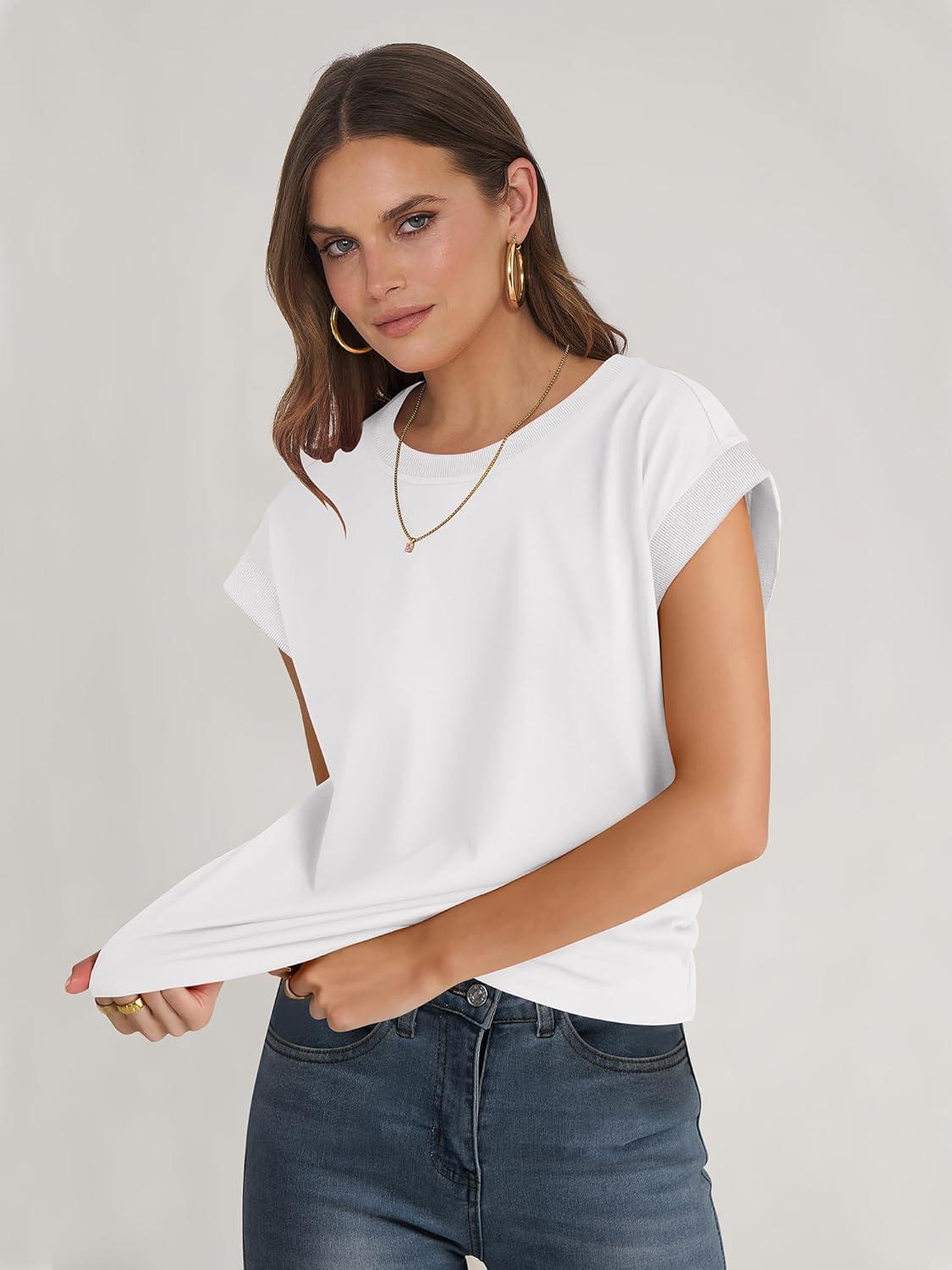 imageANRABESS Women Cap Sleeve Tops 2026 Trendy Summer Loose Fit Cute Basic T Shirts Business Dressy Casual Outfits ClothesWhite