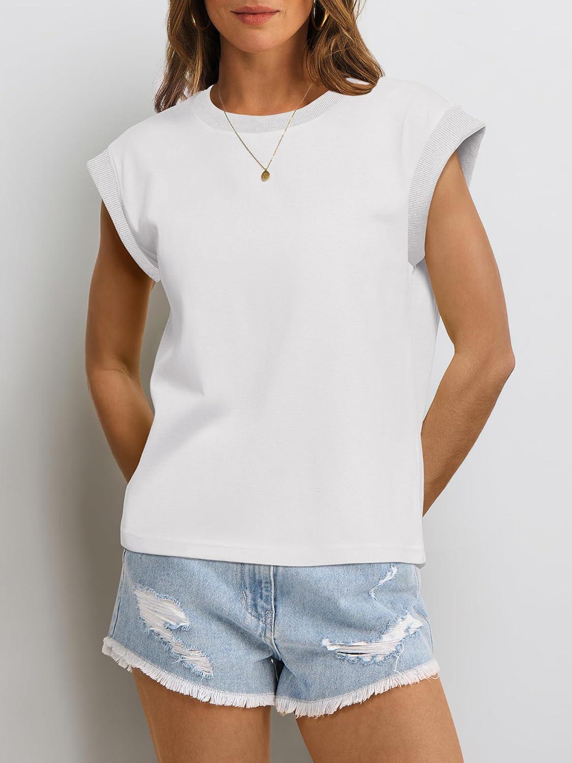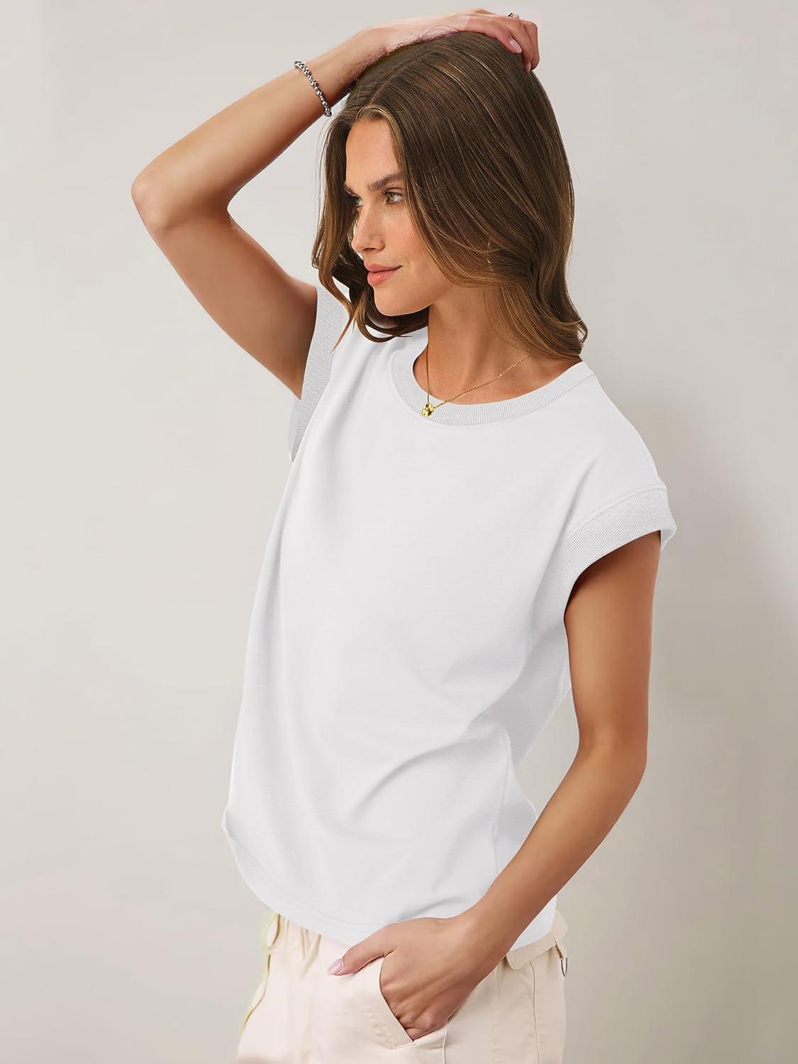 ANRABESS Women Cap Sleeve Tops 2026 Trendy Summer Loose Fit Cute Basic T Shirts Business Dressy Casual Outfits Clothes(White)
