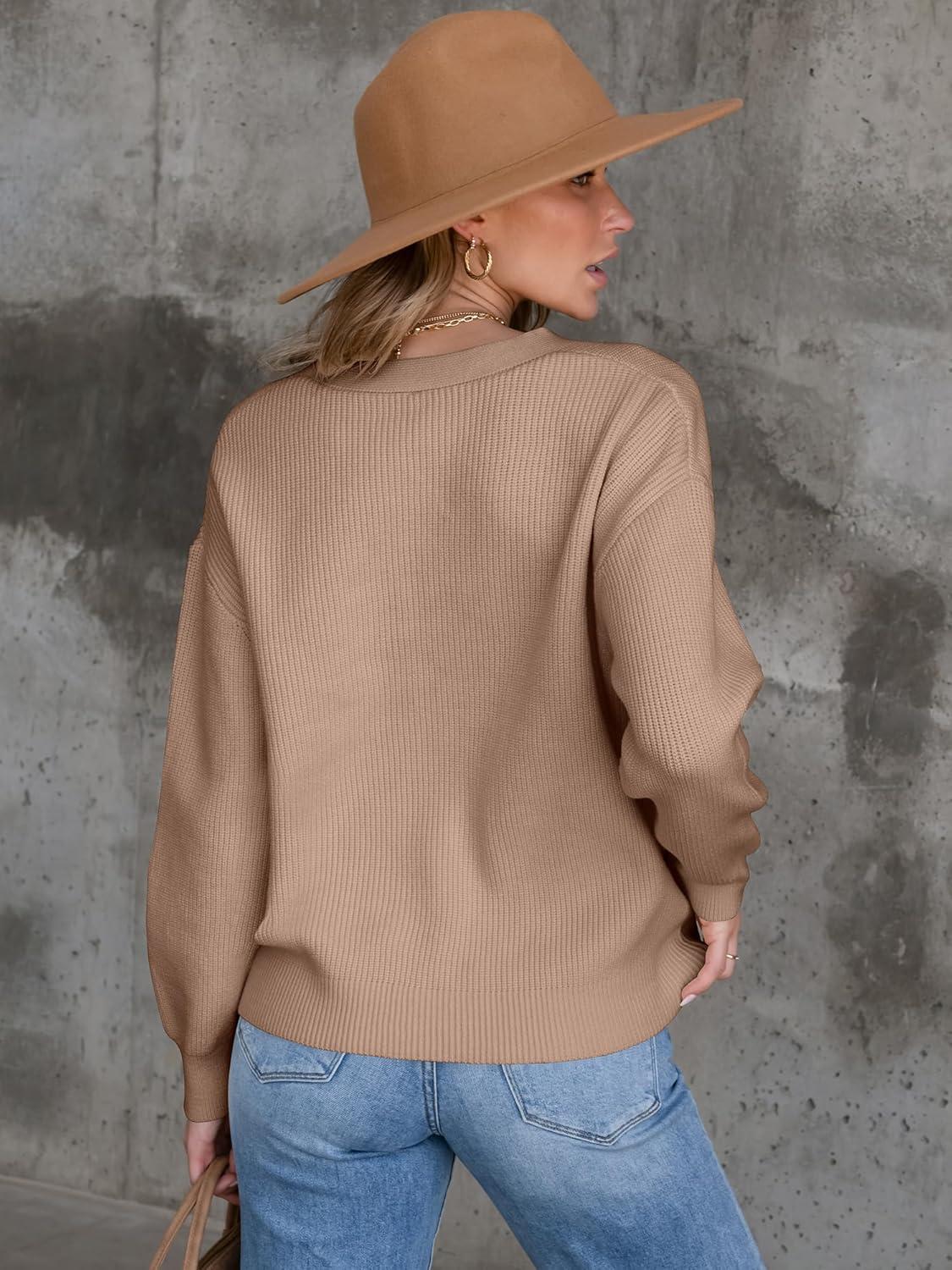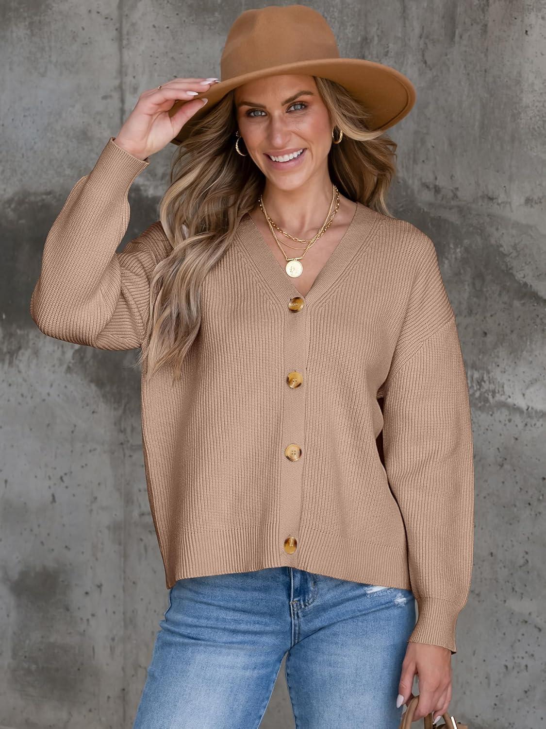 ANRABESS Women Cardigan Sweaters 2024 Fall Oversized Button Open Front Knit Lightweight Cardigans Fall Outfits Outerwear(Khaki)