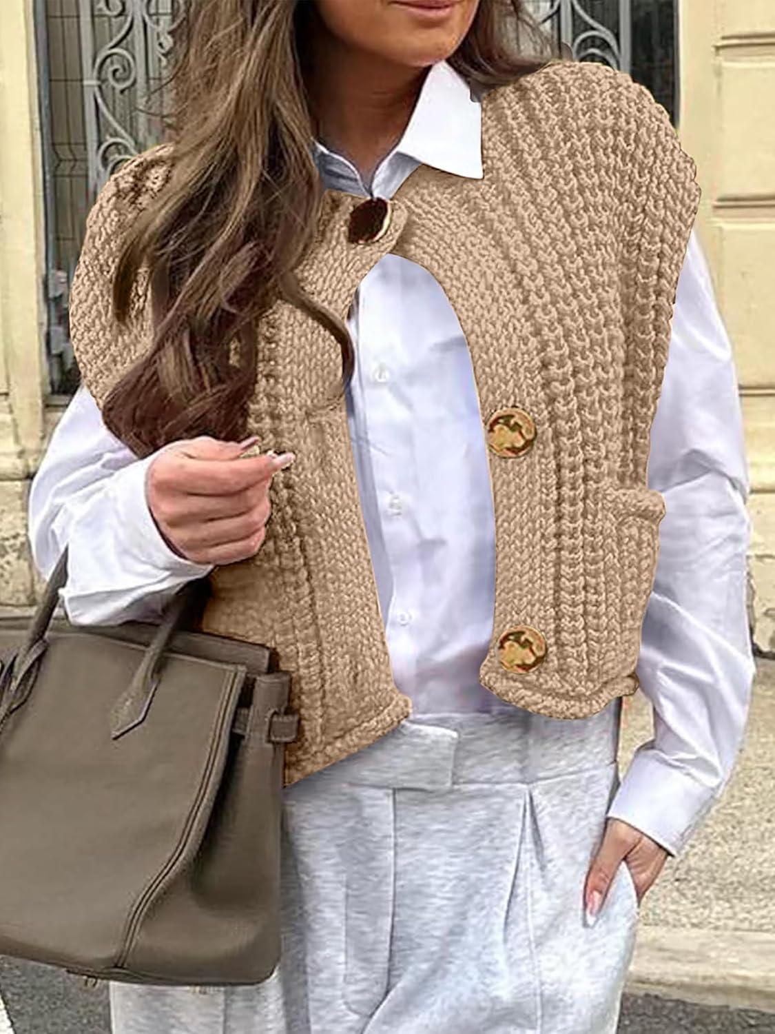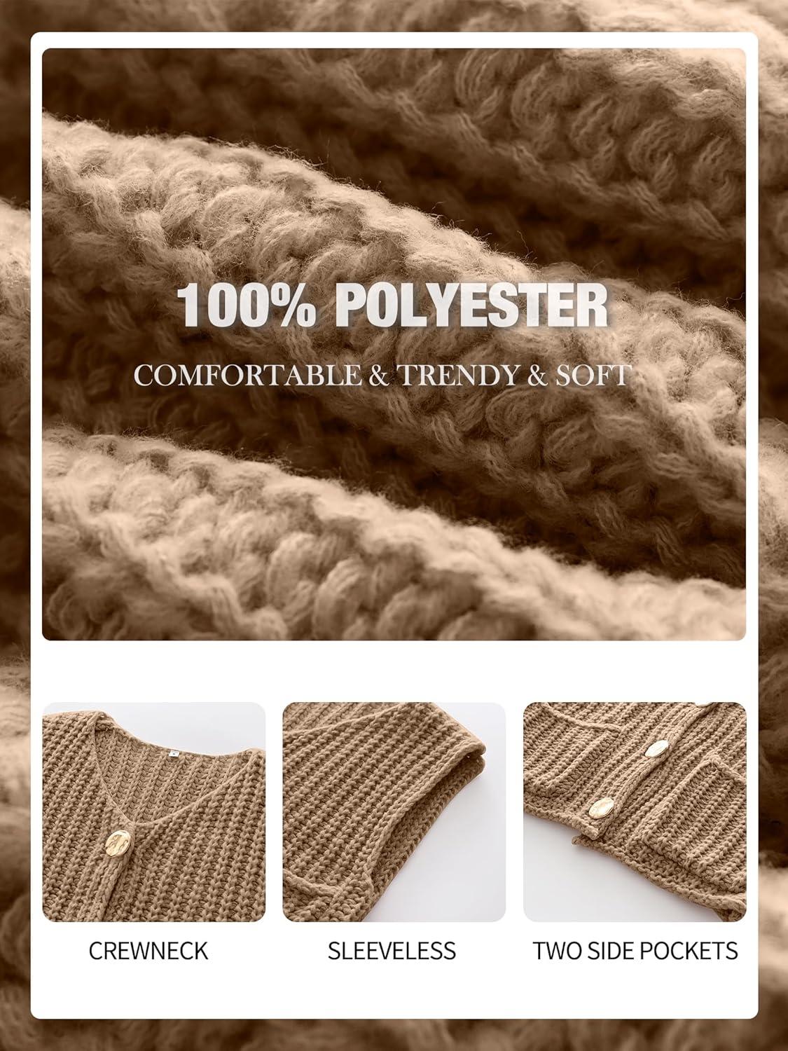 ANRABESS Women Chunky Knit Sweater Vest Button Down Casual Sleeveless Cardigan with Pockets Spring Trendy Outfits 2025(Khaki)