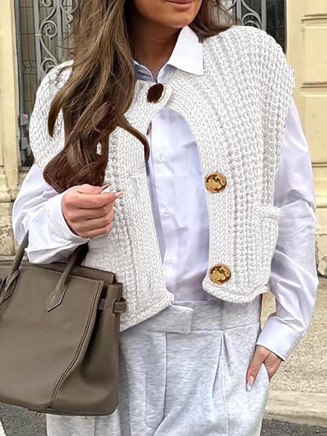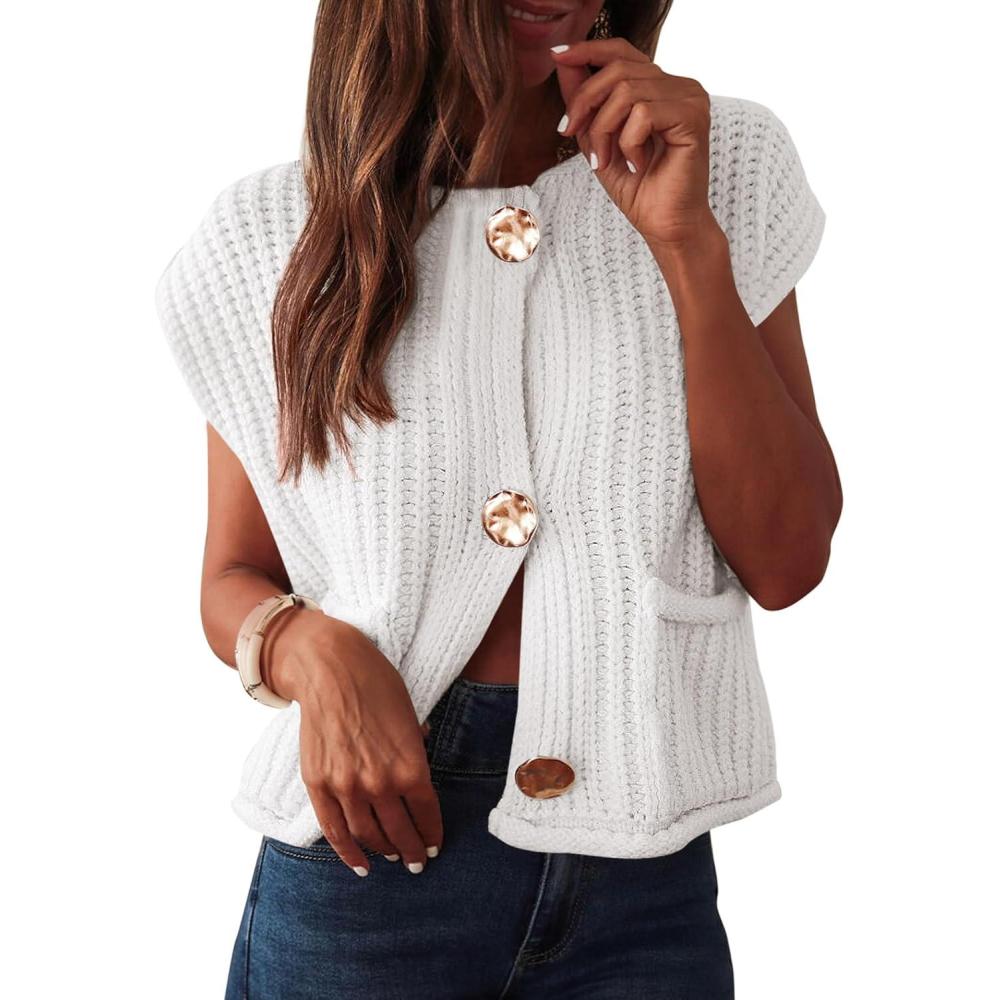 ANRABESS Women Chunky Knit Sweater Vest Button Down Casual Sleeveless Cardigan with Pockets Spring Trendy Outfits 2025(White)