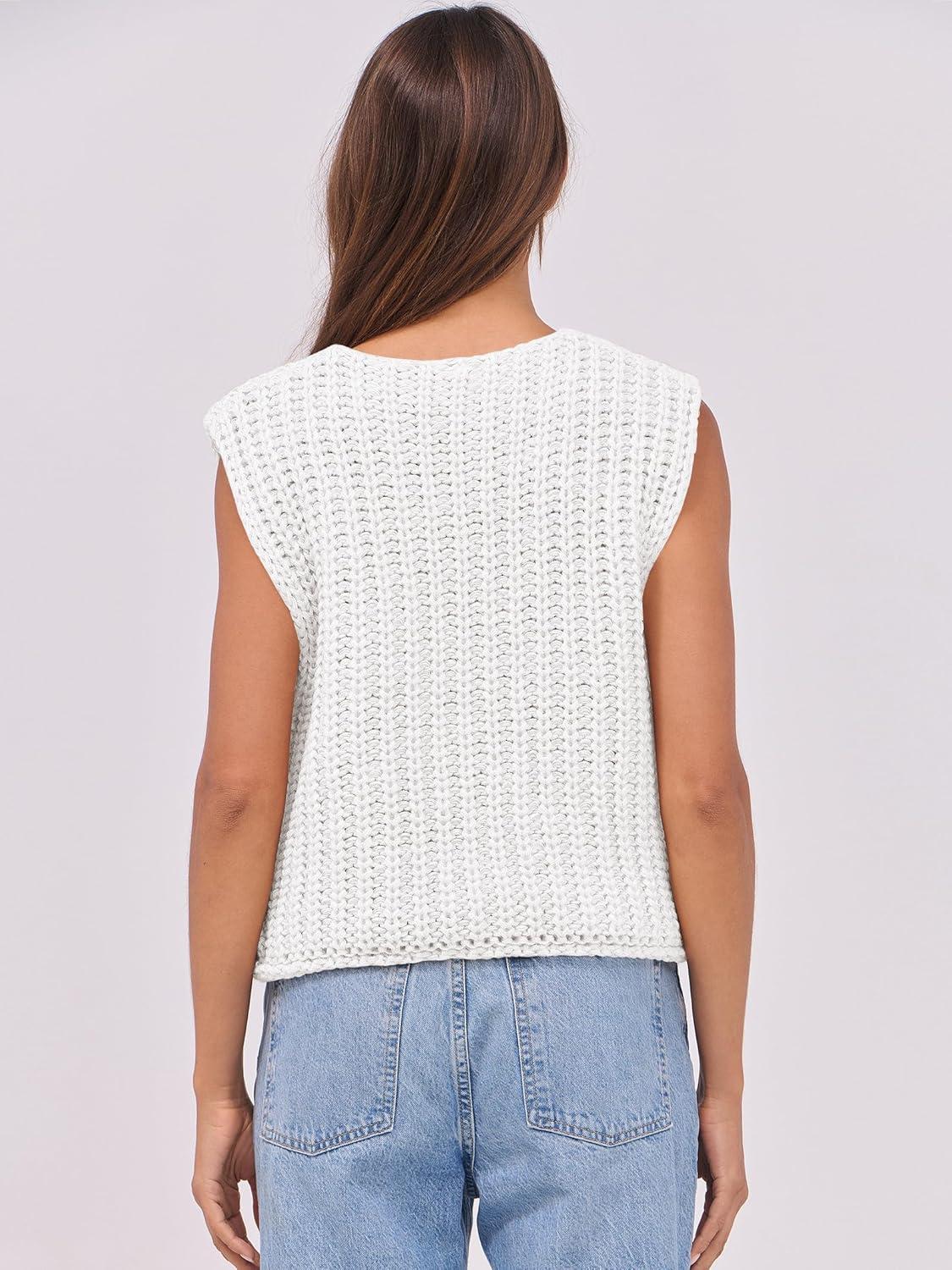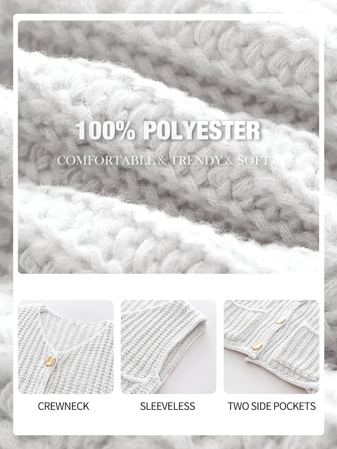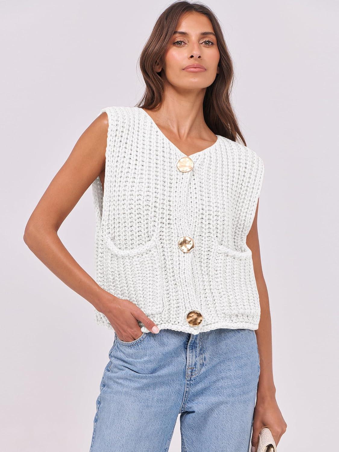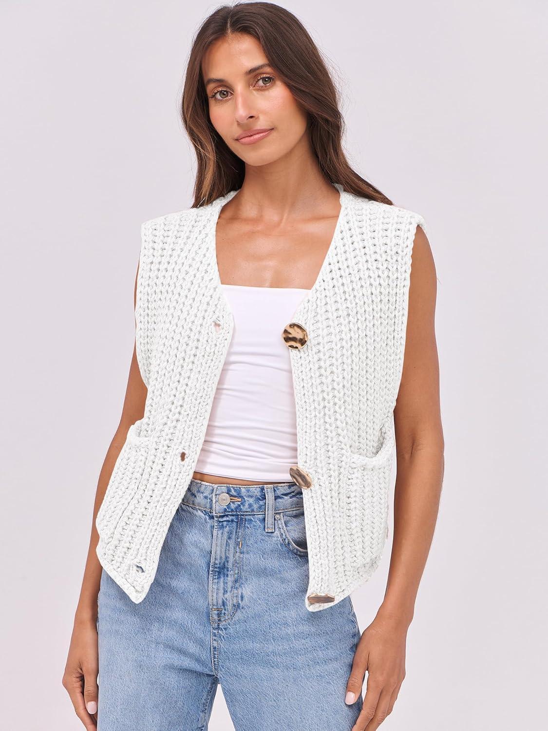 imageANRABESS Women Chunky Knit Sweater Vest Button Down Casual Sleeveless Cardigan with Pockets Spring Trendy Outfits 2025White