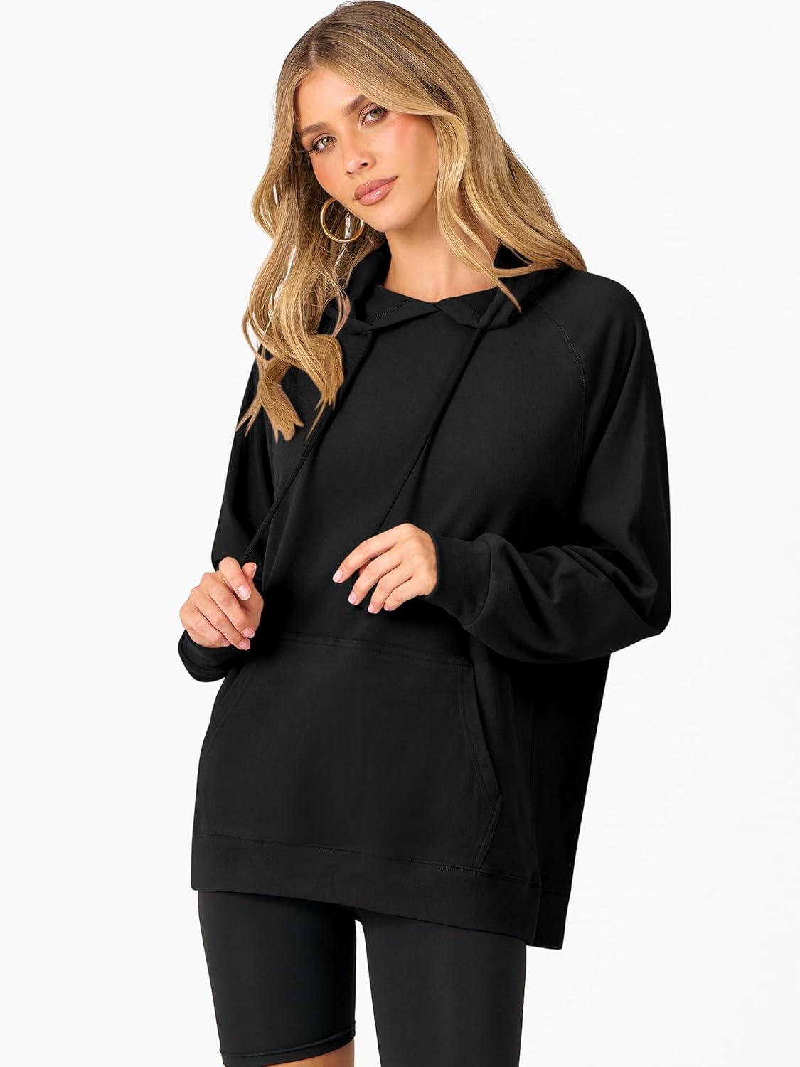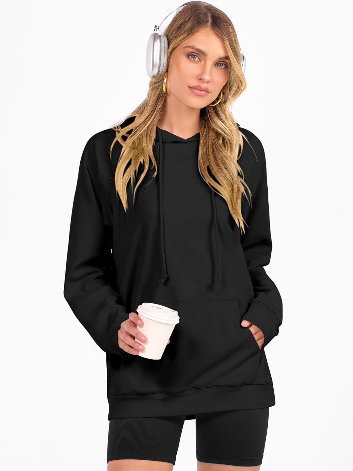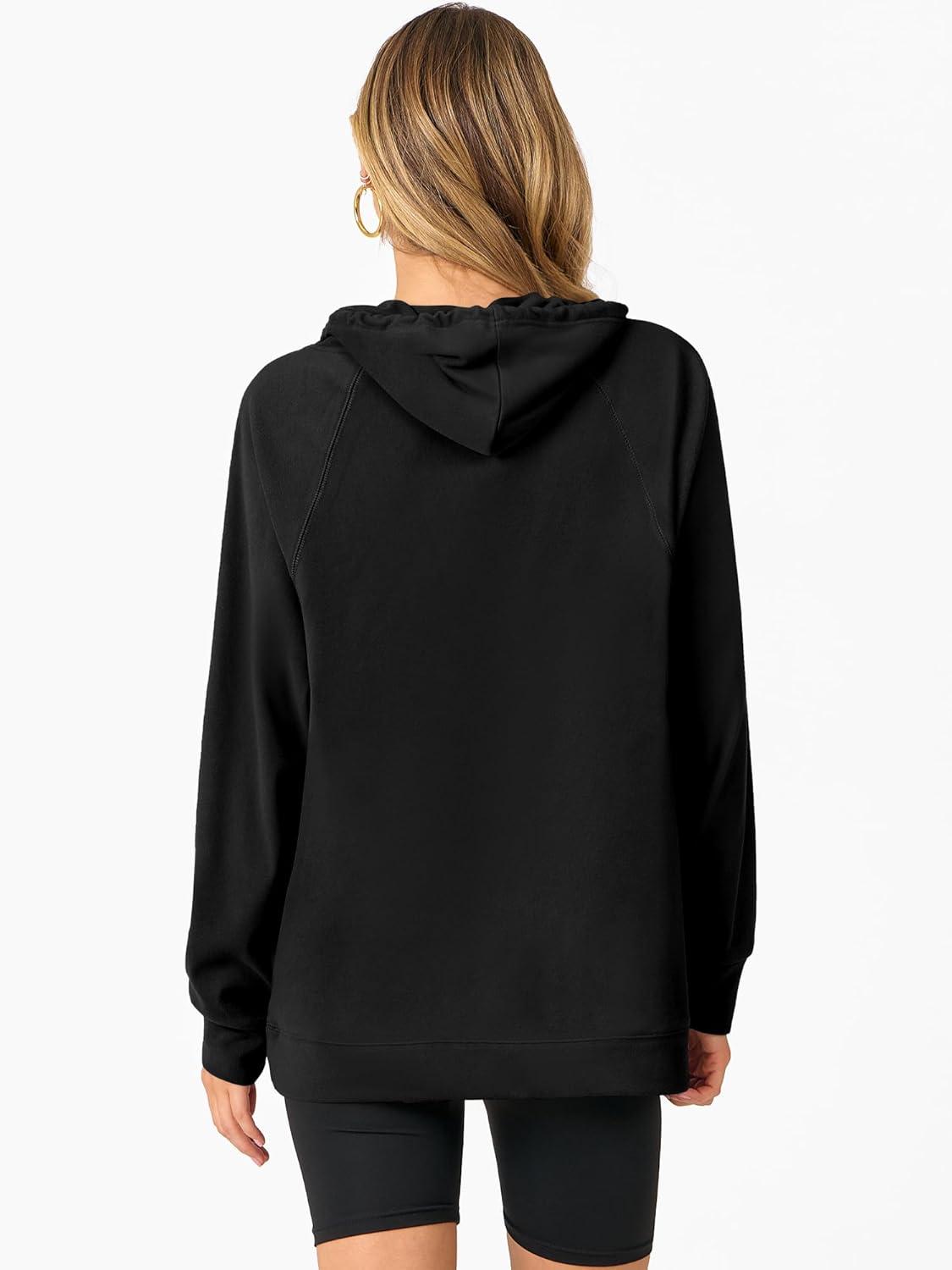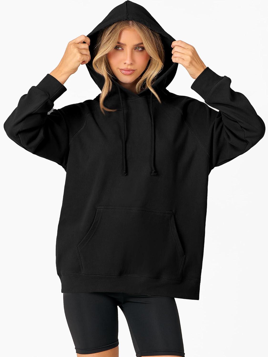 ANRABESS Women Hoodies Long Sleeve Loose Fit Fleece Hooded Sweatshirts Drawstring Pullover Top With Pockets 2025 Fall Outfits(Black)