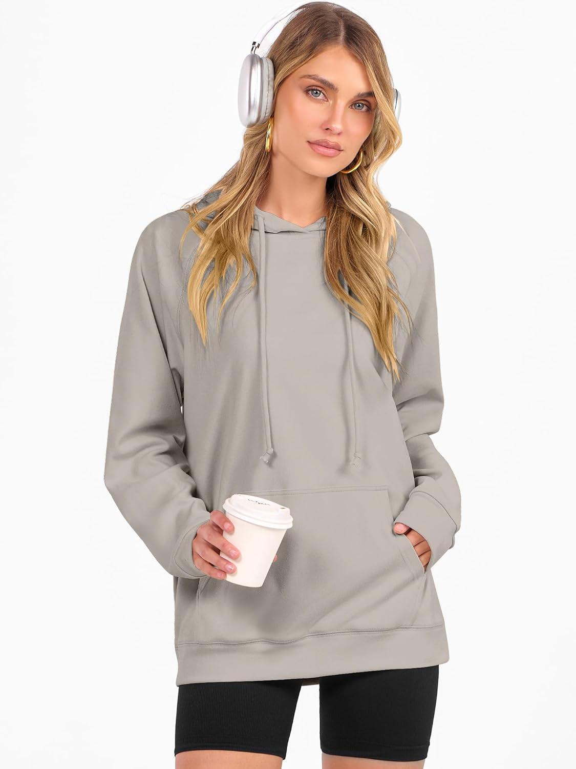 ANRABESS Women Hoodies Long Sleeve Loose Fit Fleece Hooded Sweatshirts Drawstring Pullover Top With Pockets 2025 Fall Outfits(Grey Khaki)
