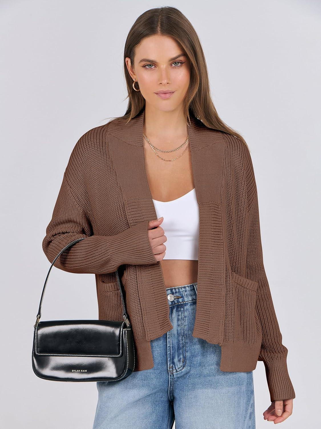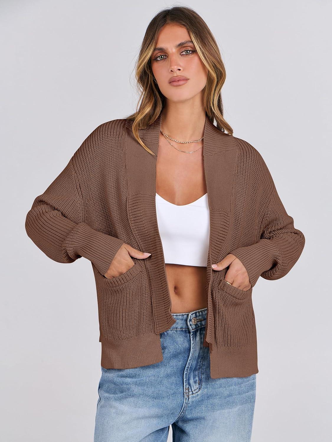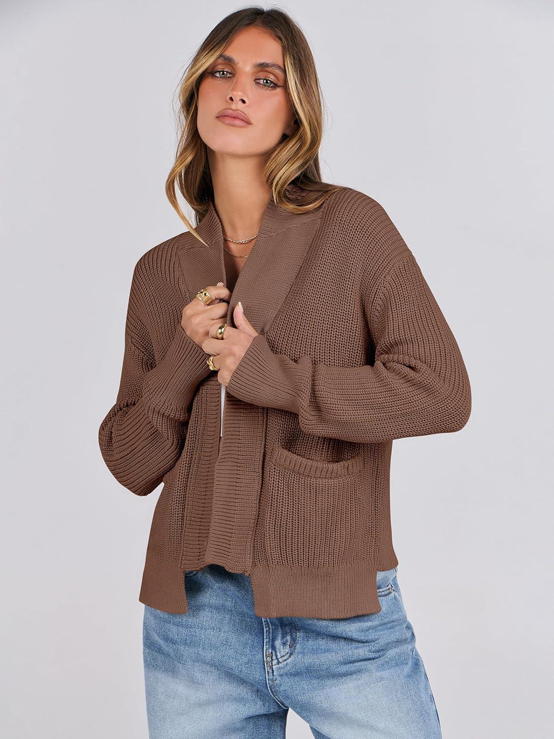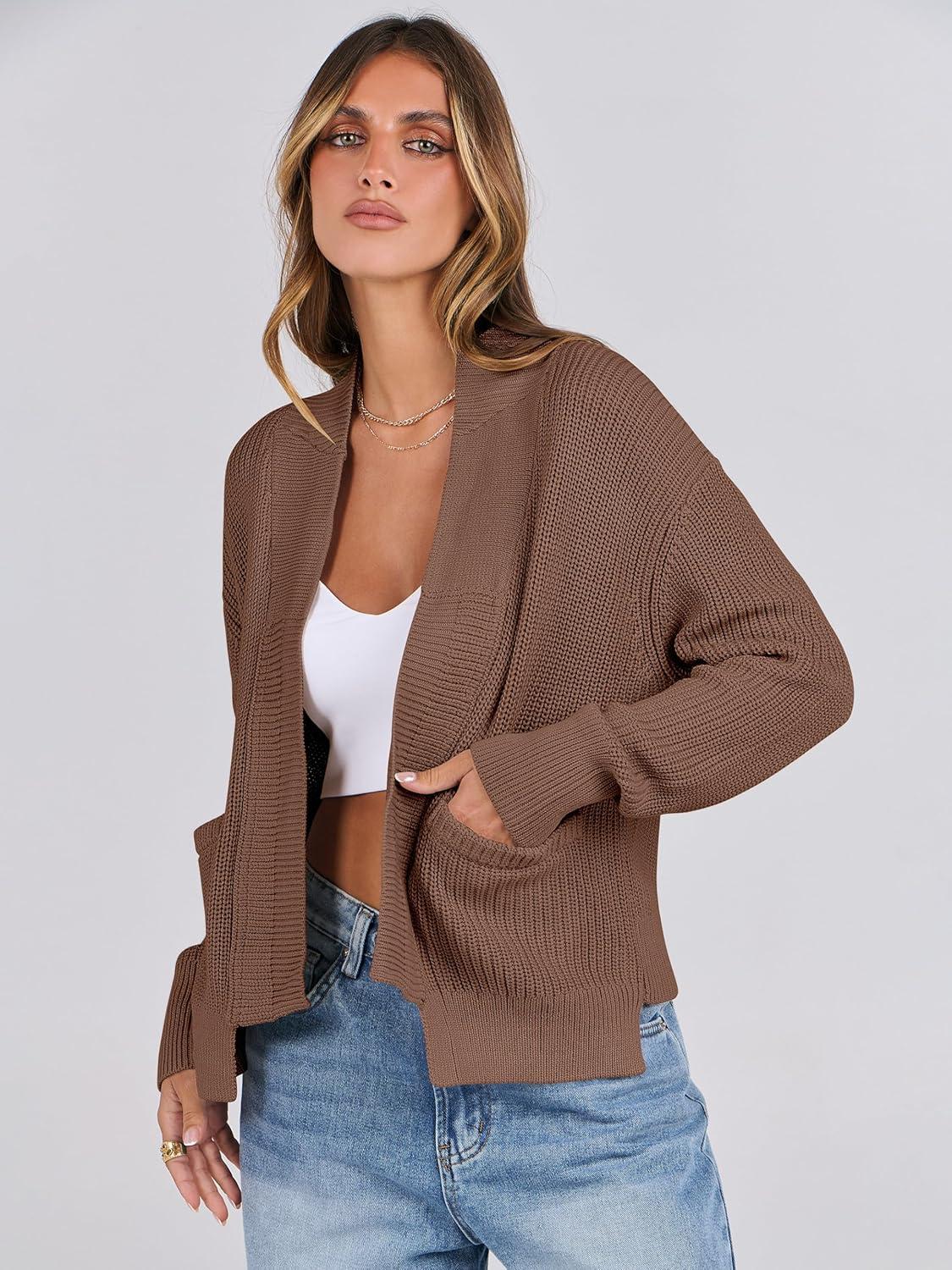 imageANRABESS Women Jackets Sweaters Long Sleeve Open Front Loose Lightweight Knit Cropped Cardigan 2025 Fall Trendy CoatsBrown