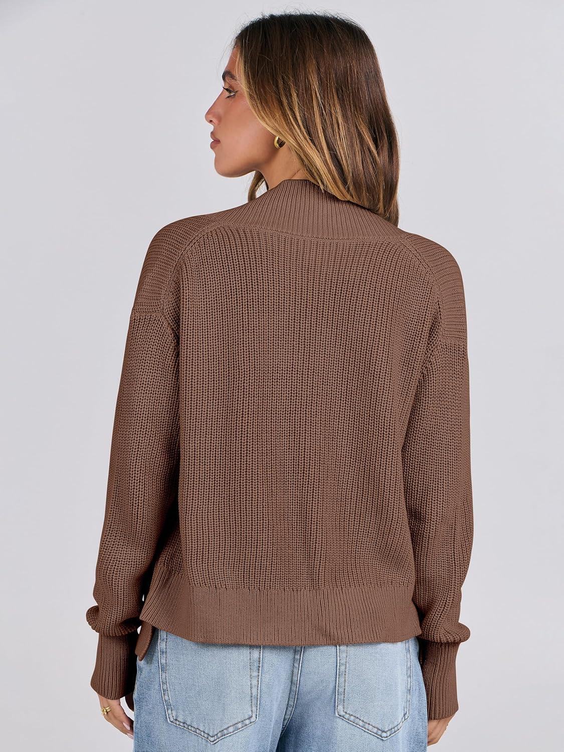 ANRABESS Women Jackets Sweaters Long Sleeve Open Front Loose Lightweight Knit Cropped Cardigan 2025 Fall Trendy Coats(Brown)