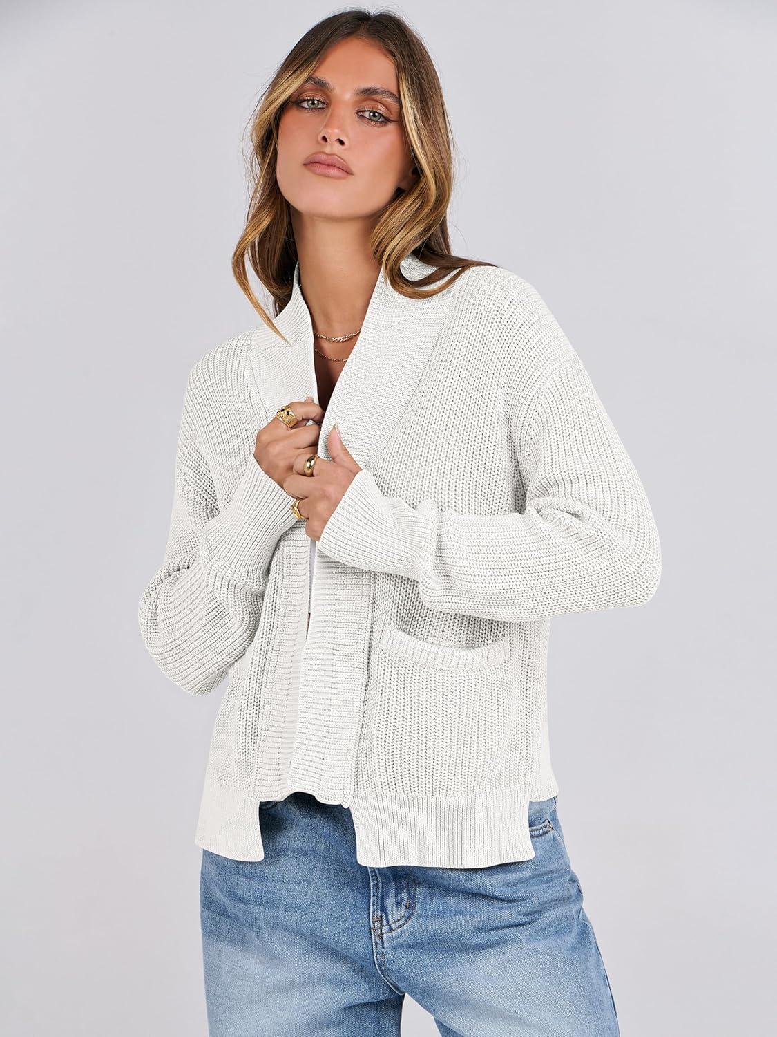 ANRABESS Women Jackets Sweaters Long Sleeve Open Front Loose Lightweight Knit Cropped Cardigan 2025 Fall Trendy Coats(Cream White)