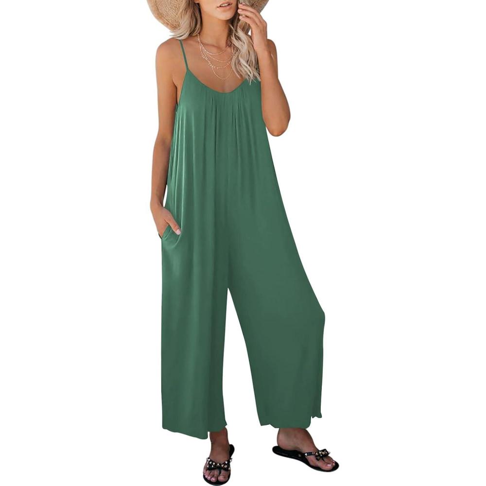 imageANRABESS Women Jumpsuits 2025 Casual Sleeveless Spaghetti Strap Boho Wide Leg Rompers Dressy Summer Outfits Vacation ClothesBlue Green