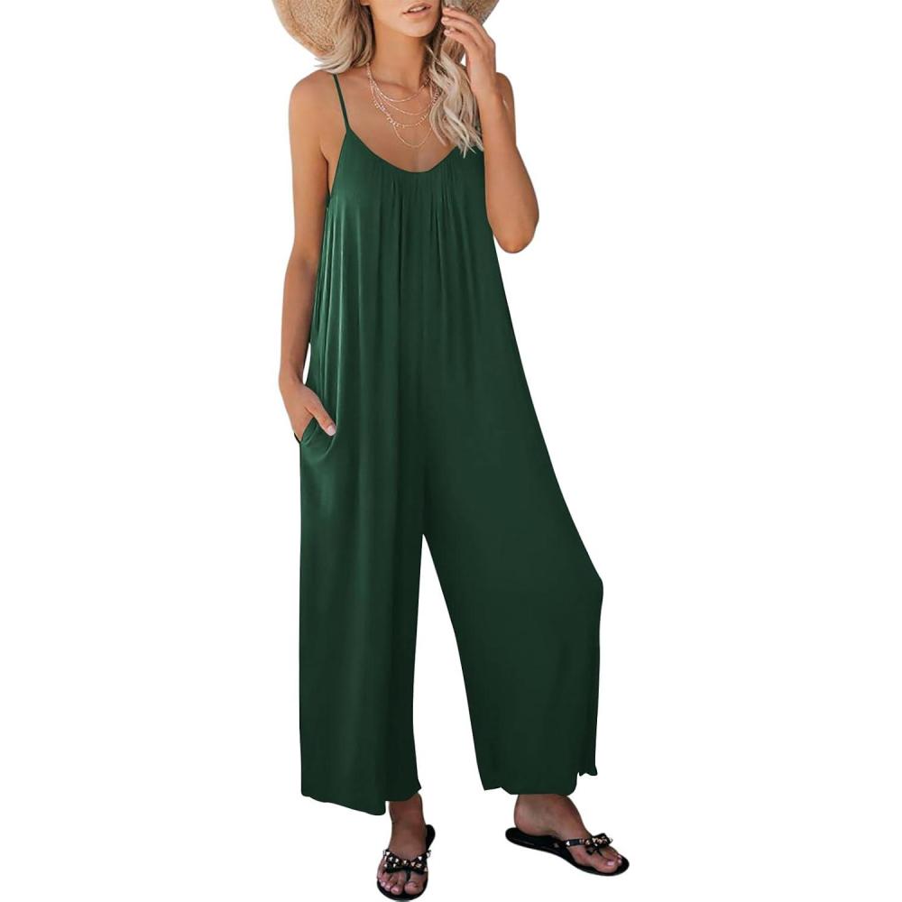 imageANRABESS Women Jumpsuits 2025 Casual Sleeveless Spaghetti Strap Boho Wide Leg Rompers Dressy Summer Outfits Vacation ClothesDeep Green
