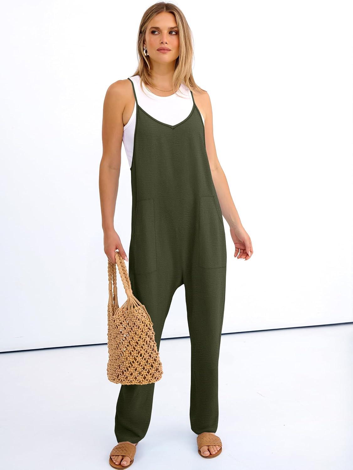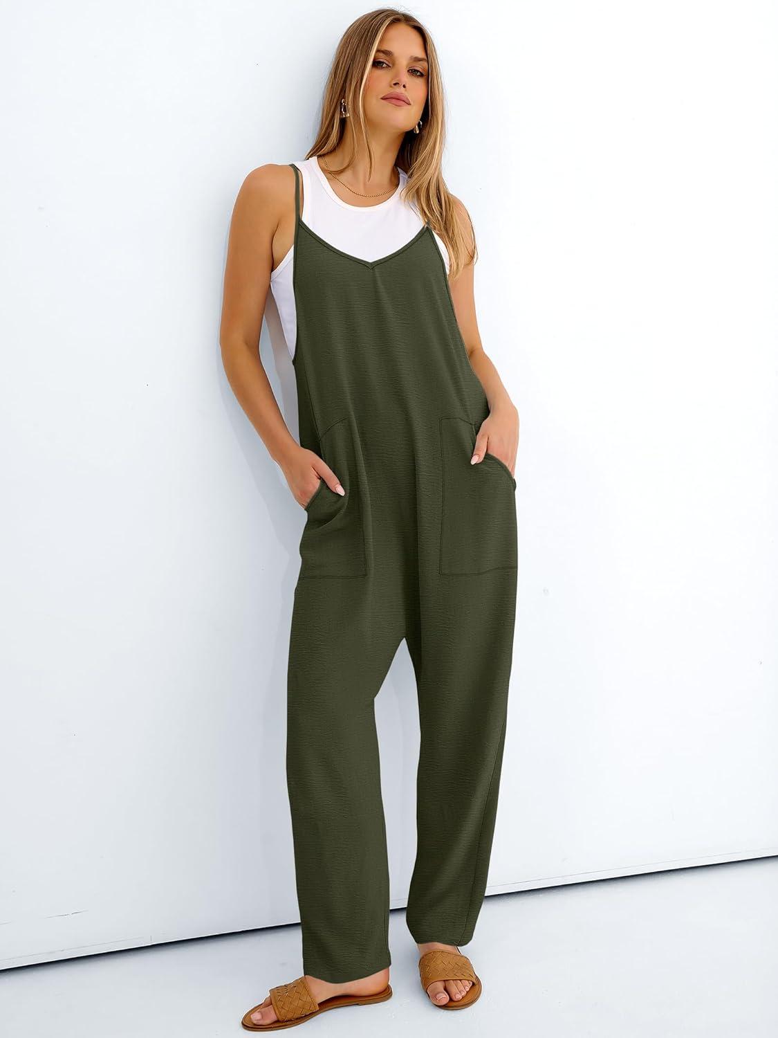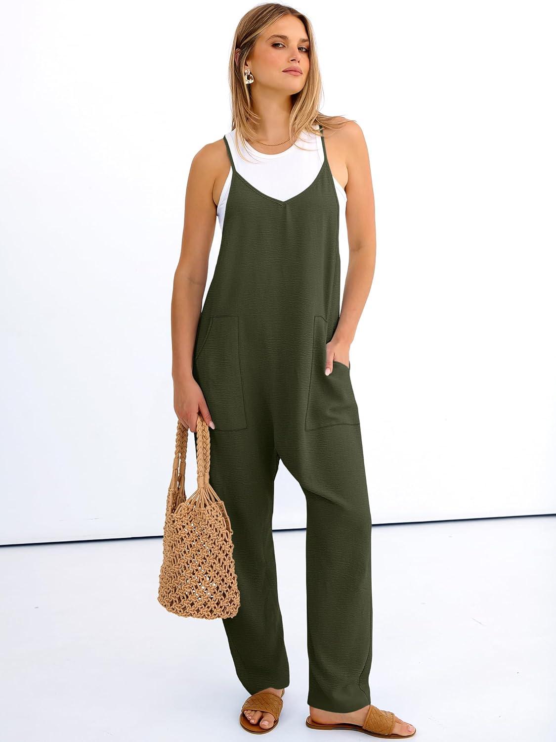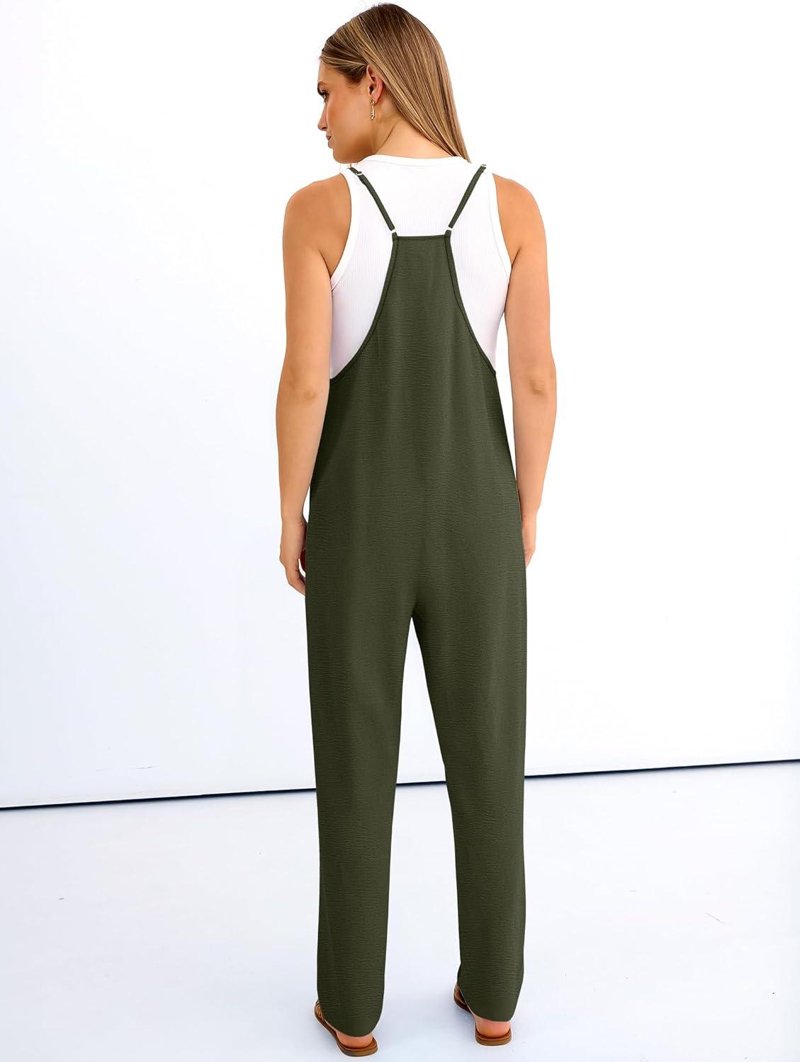 ANRABESS Women Jumpsuits Casual Summer Overalls Loose Sleeveless Spaghetti Strap Romper Jumpers 2026 Beach Vacation Clothes(Army Green)