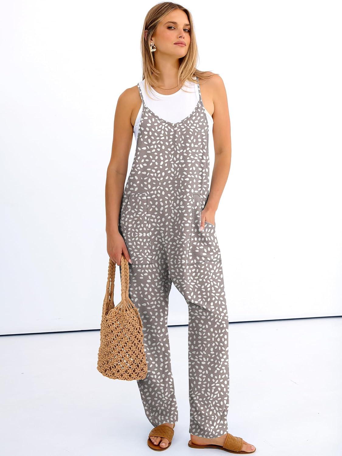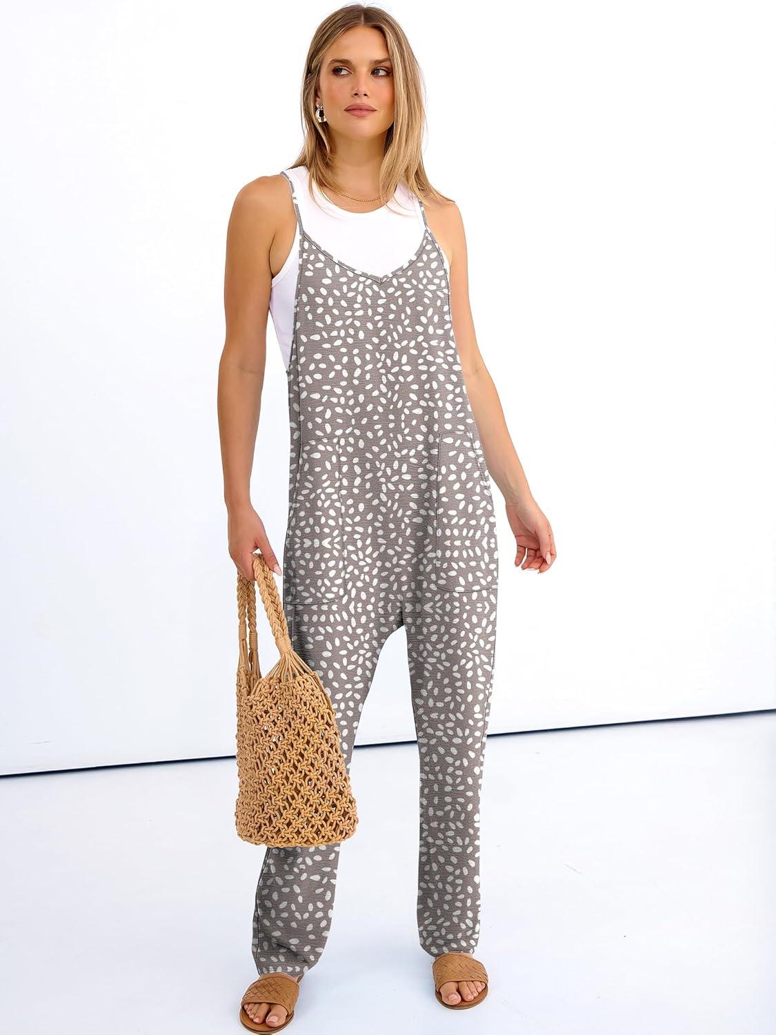 ANRABESS Women Jumpsuits Casual Summer Overalls Loose Sleeveless Spaghetti Strap Romper Jumpers 2026 Beach Vacation Clothes(Khaki Polka Dot)