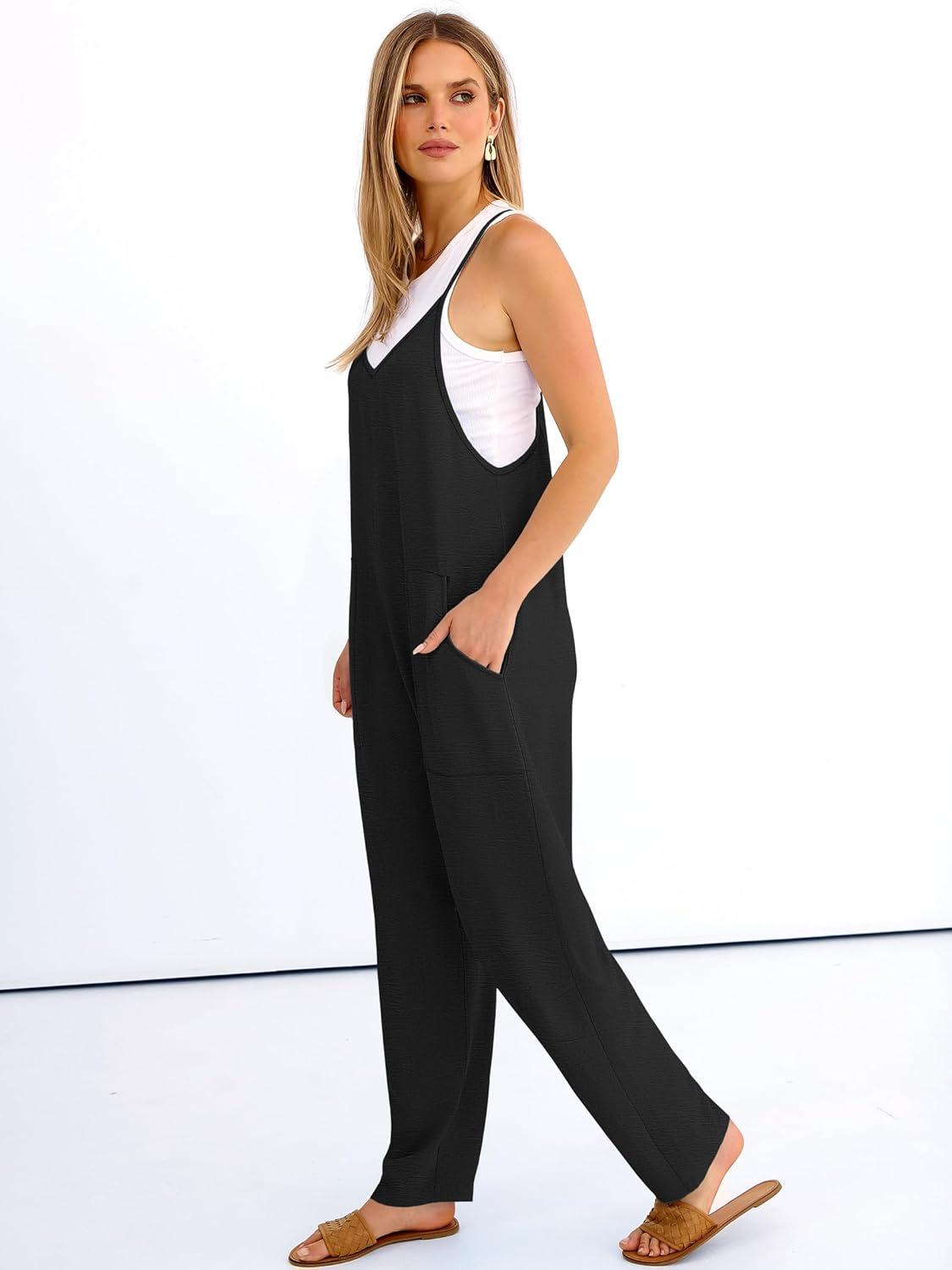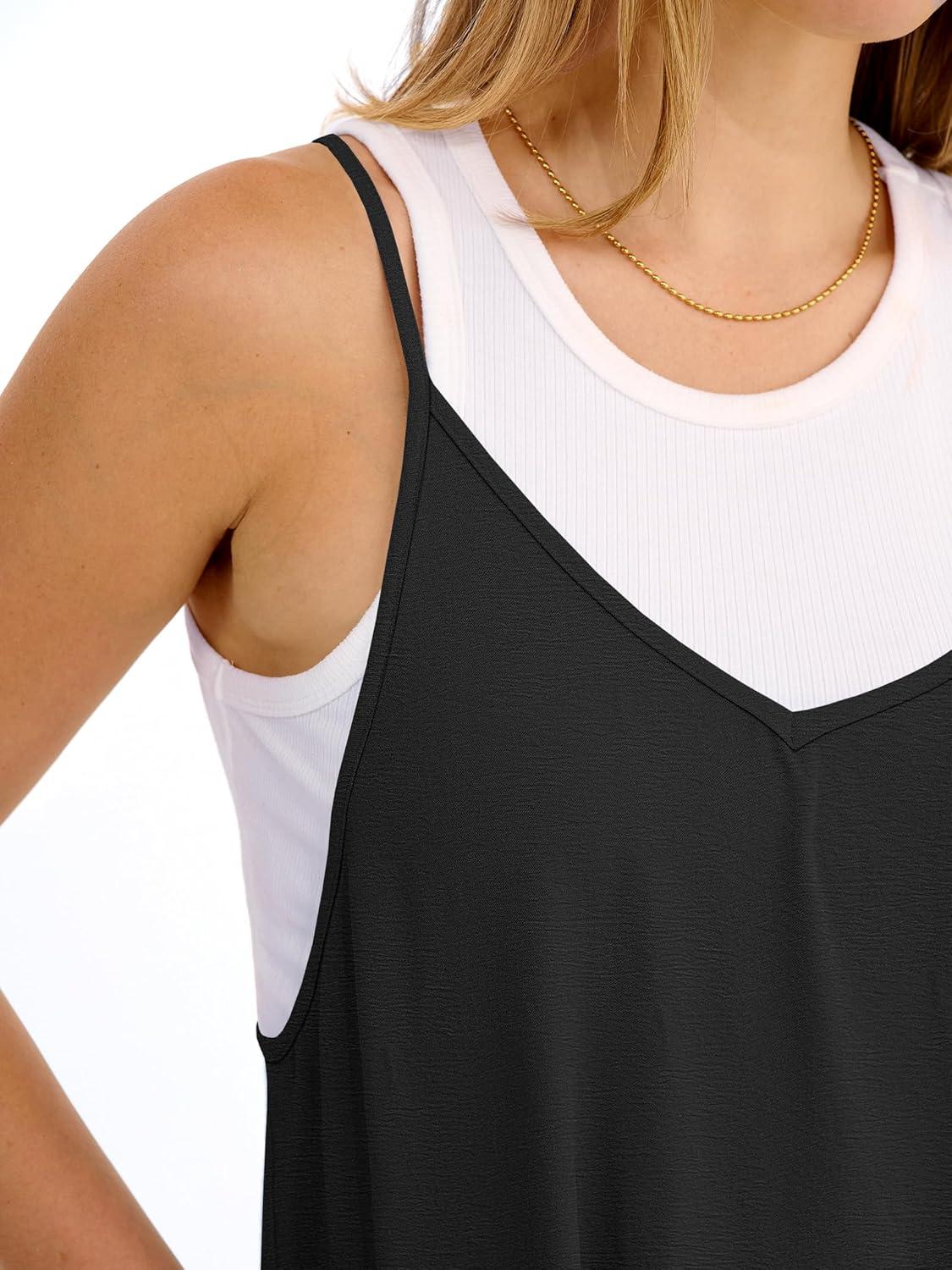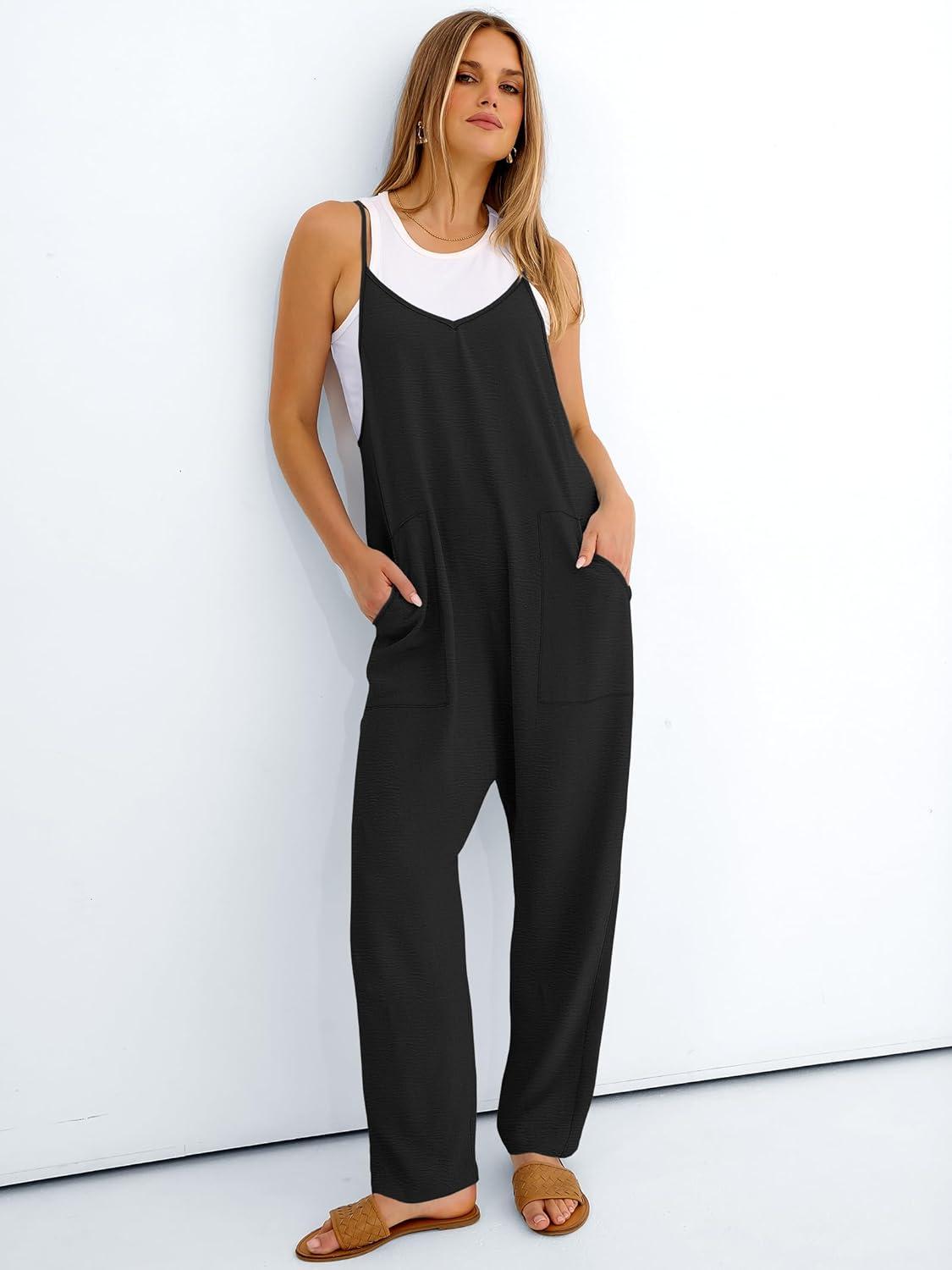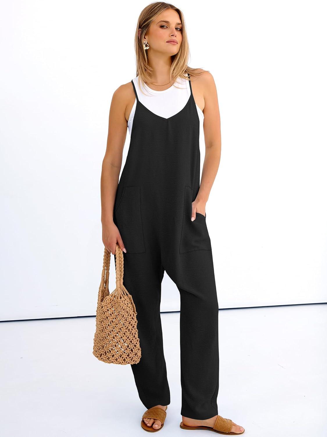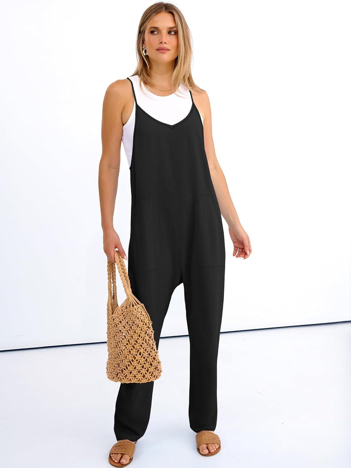 ANRABESS Women Jumpsuits Casual Summer Overalls Loose Spaghetti Strap Romper Jumpers with Pockets 2026 Beach Vacation Clothes(Black)