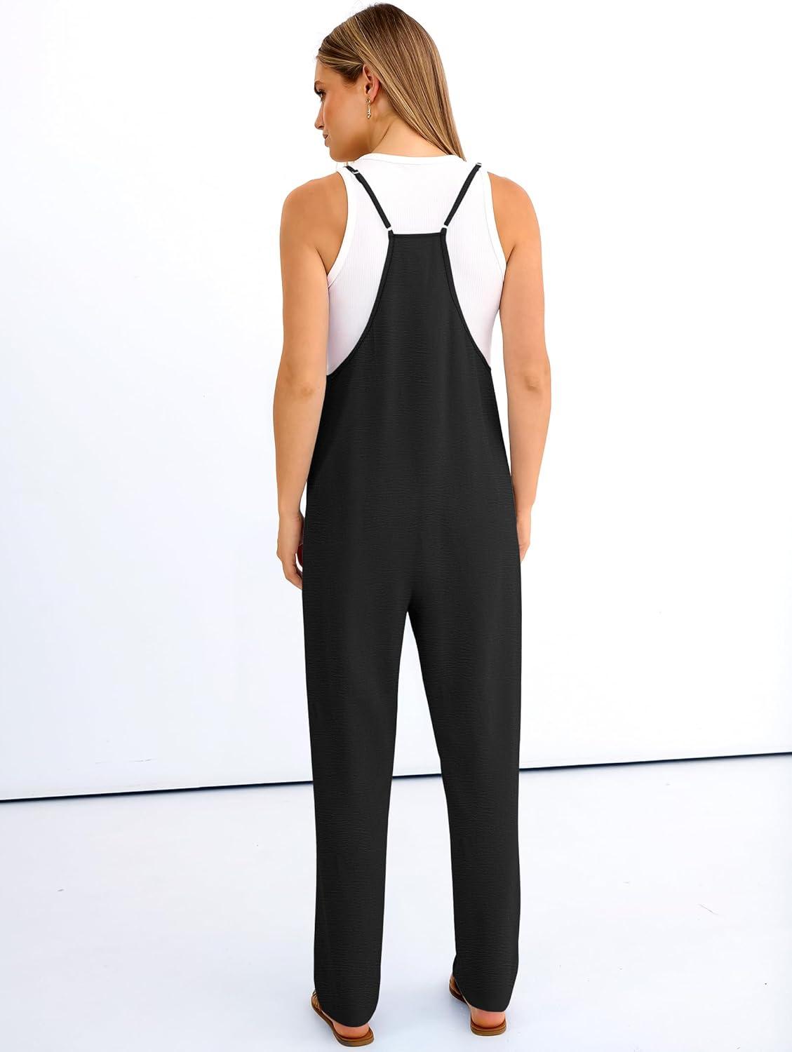 imageANRABESS Women Jumpsuits Casual Summer Overalls Loose Spaghetti Strap Romper Jumpers with Pockets 2026 Beach Vacation ClothesBlack
