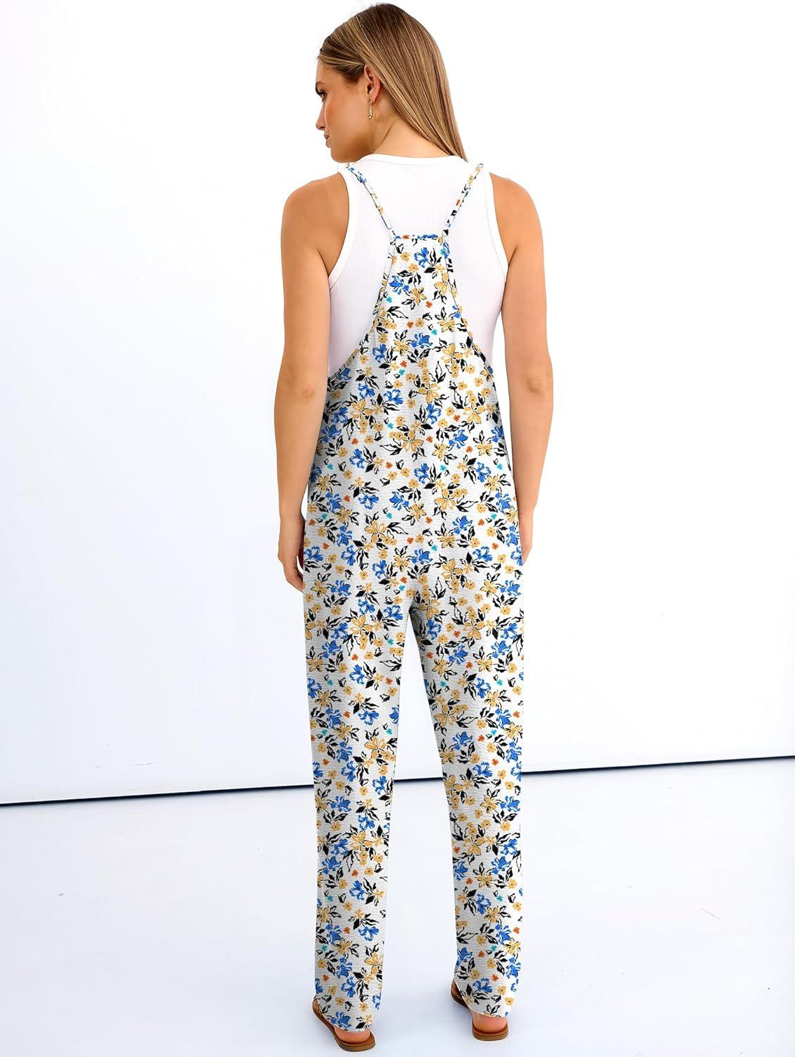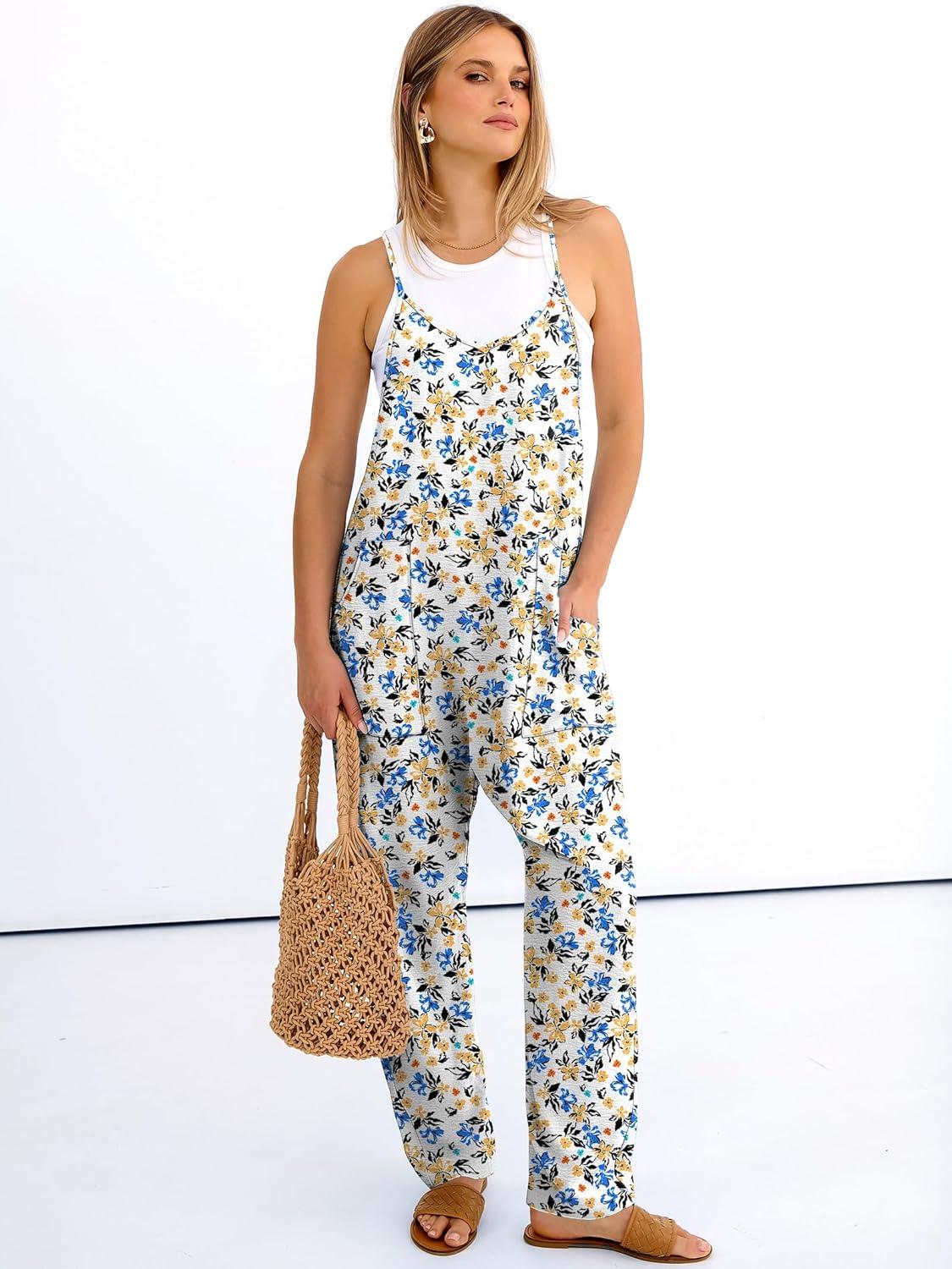 ANRABESS Women Jumpsuits Casual Summer Overalls Loose Spaghetti Strap Romper Jumpers with Pockets 2026 Beach Vacation Clothes(Yellow Blue Floral)
