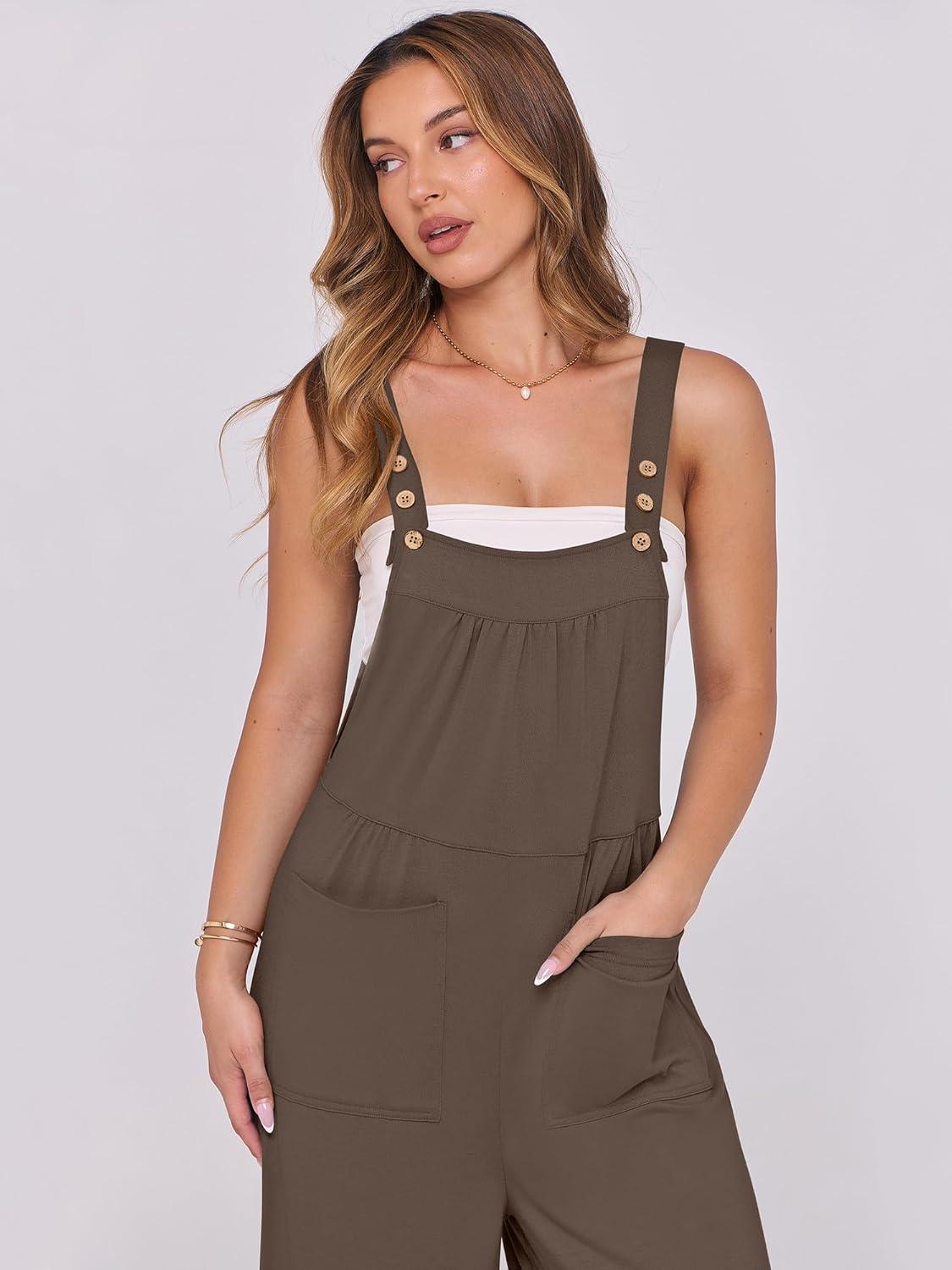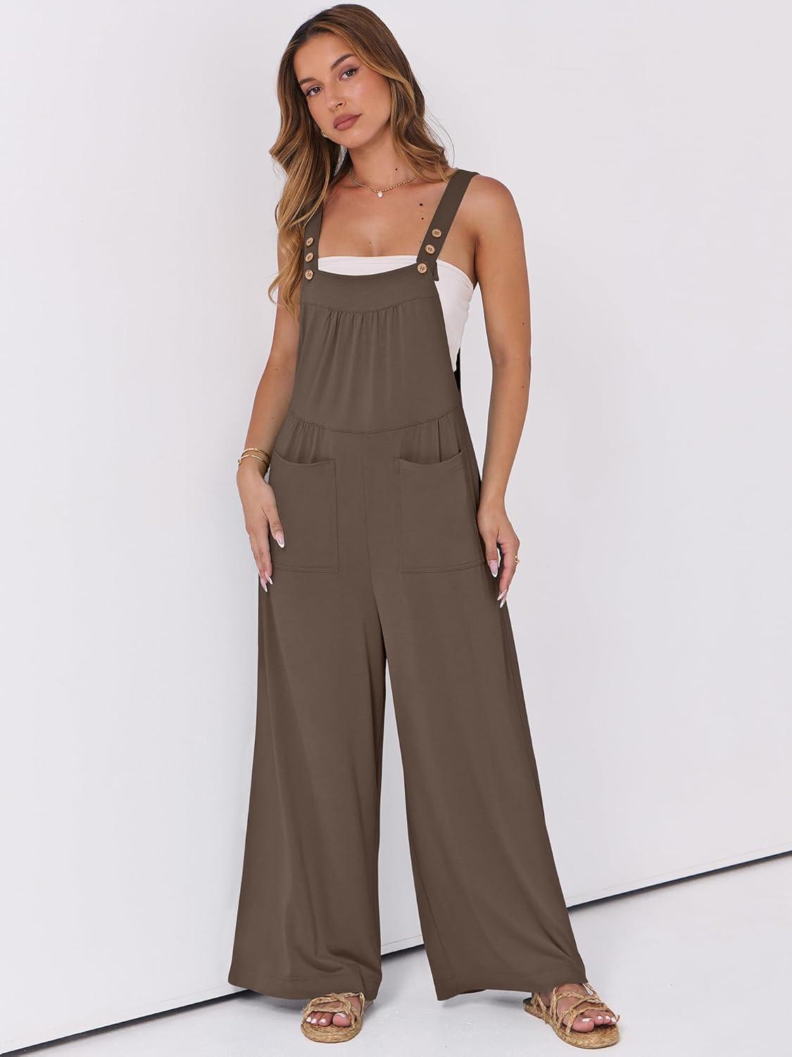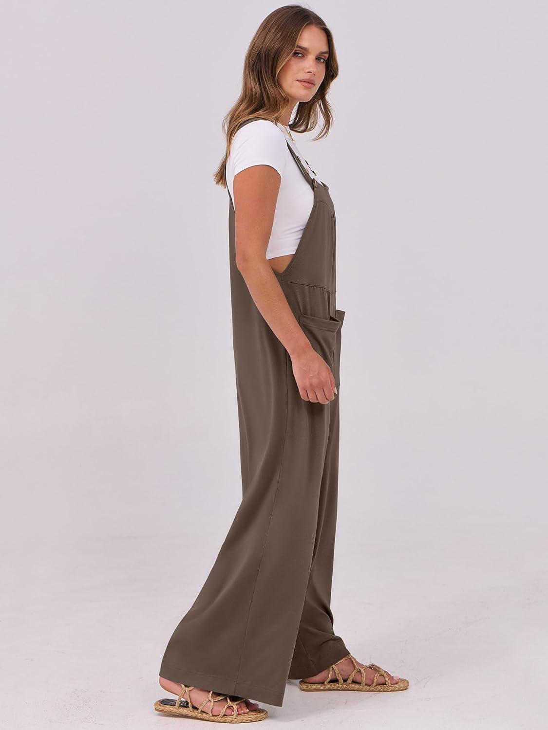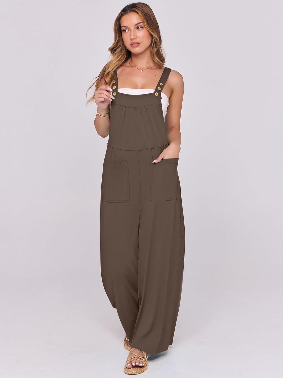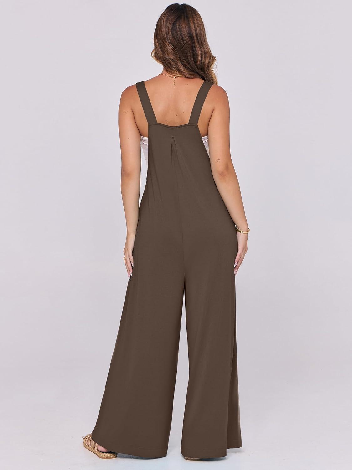 ANRABESS Women Jumpsuits Overalls Wide Leg Casual Baggy Romper Boho Loose Bib Jumpers Sleeveless Straps 2025 Summer Outfits(Brown)