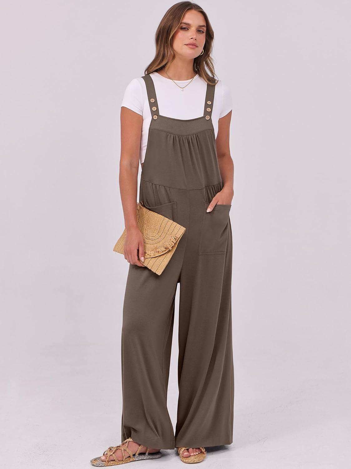 ANRABESS Women Jumpsuits Overalls Wide Leg Casual Baggy Romper Boho Loose Bib Jumpers Sleeveless Straps 2025 Summer Outfits(Multicolor)