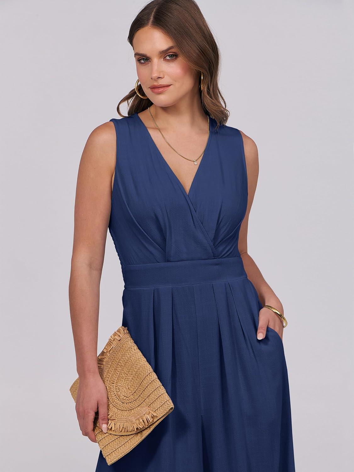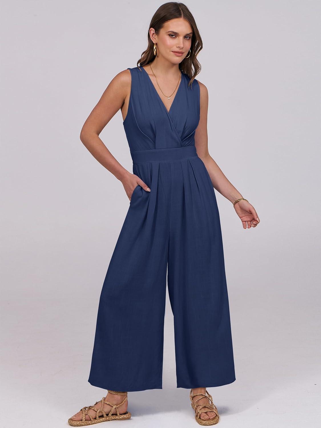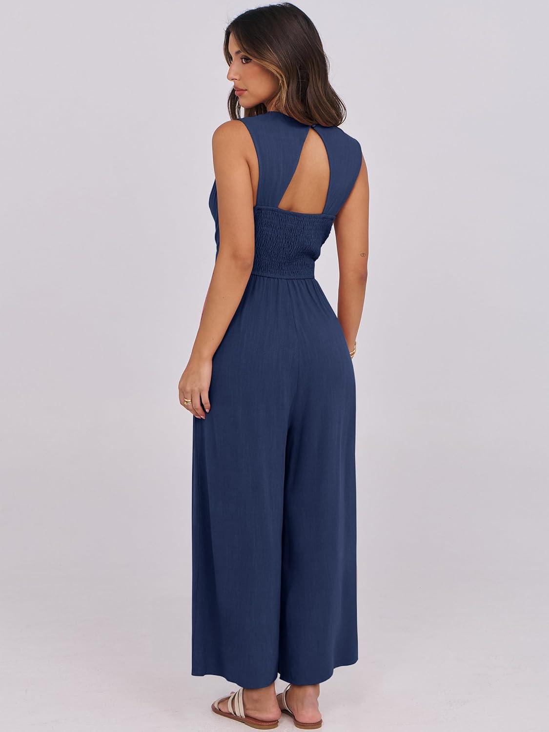 ANRABESS Women Jumpsuits Sleeveless V Neck Elegant Dressy Casual Backless One Piece Pants Romper 2025 Summer Outfits(Navy Blue)
