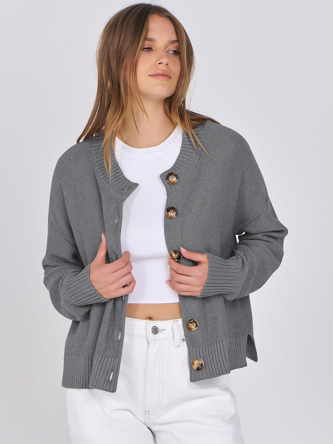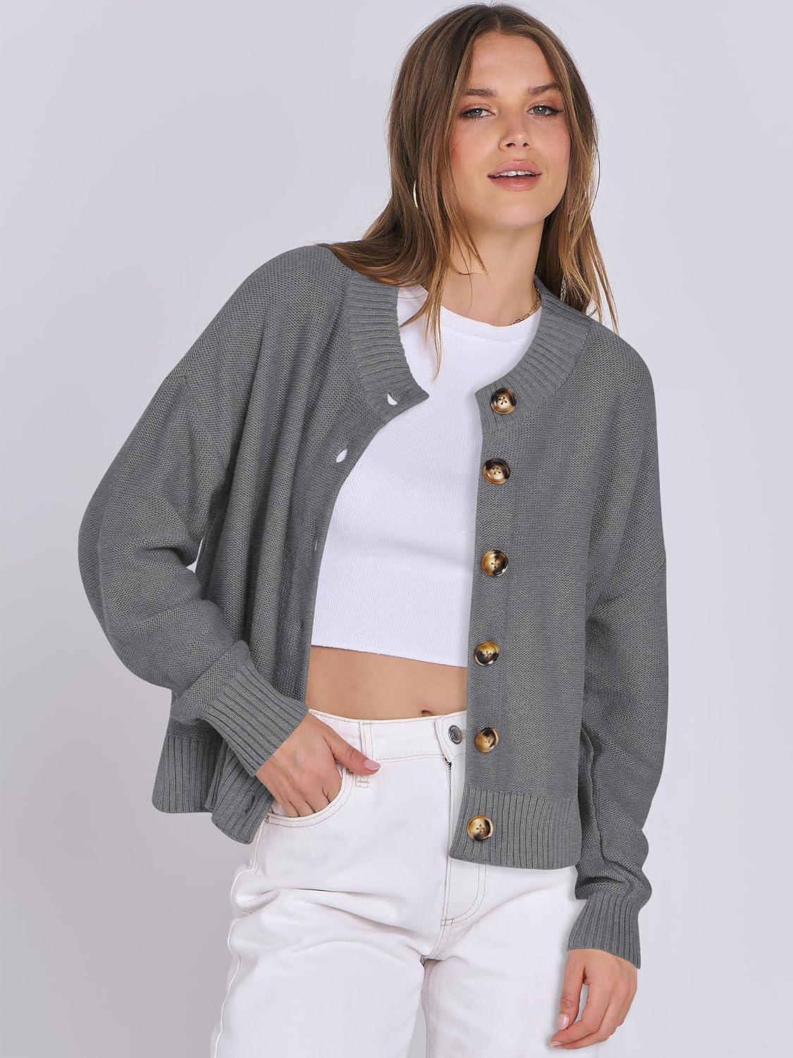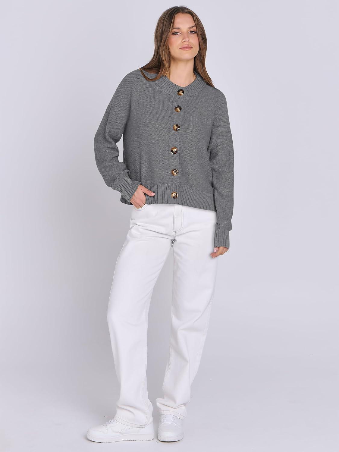 ANRABESS Women Knit Cardigans Sweater Open Front Button Down Long Sleeve Cropped Lady Jacket Outwear 2025 Fall Outfits(Deep Grey)