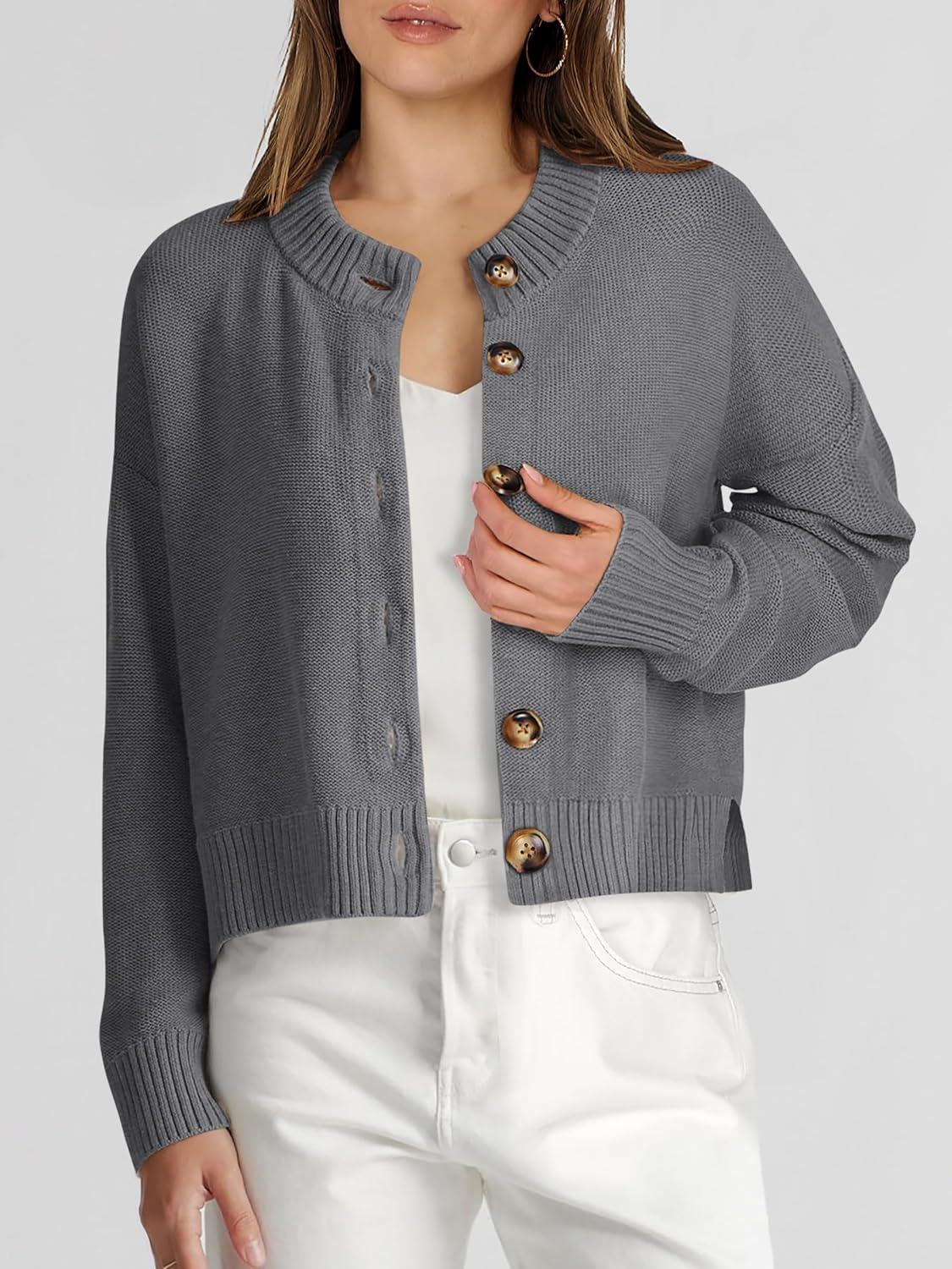 imageANRABESS Women Knit Cardigans Sweater Open Front Button Down Long Sleeve Cropped Lady Jacket Outwear 2025 Fall OutfitsDeep Grey
