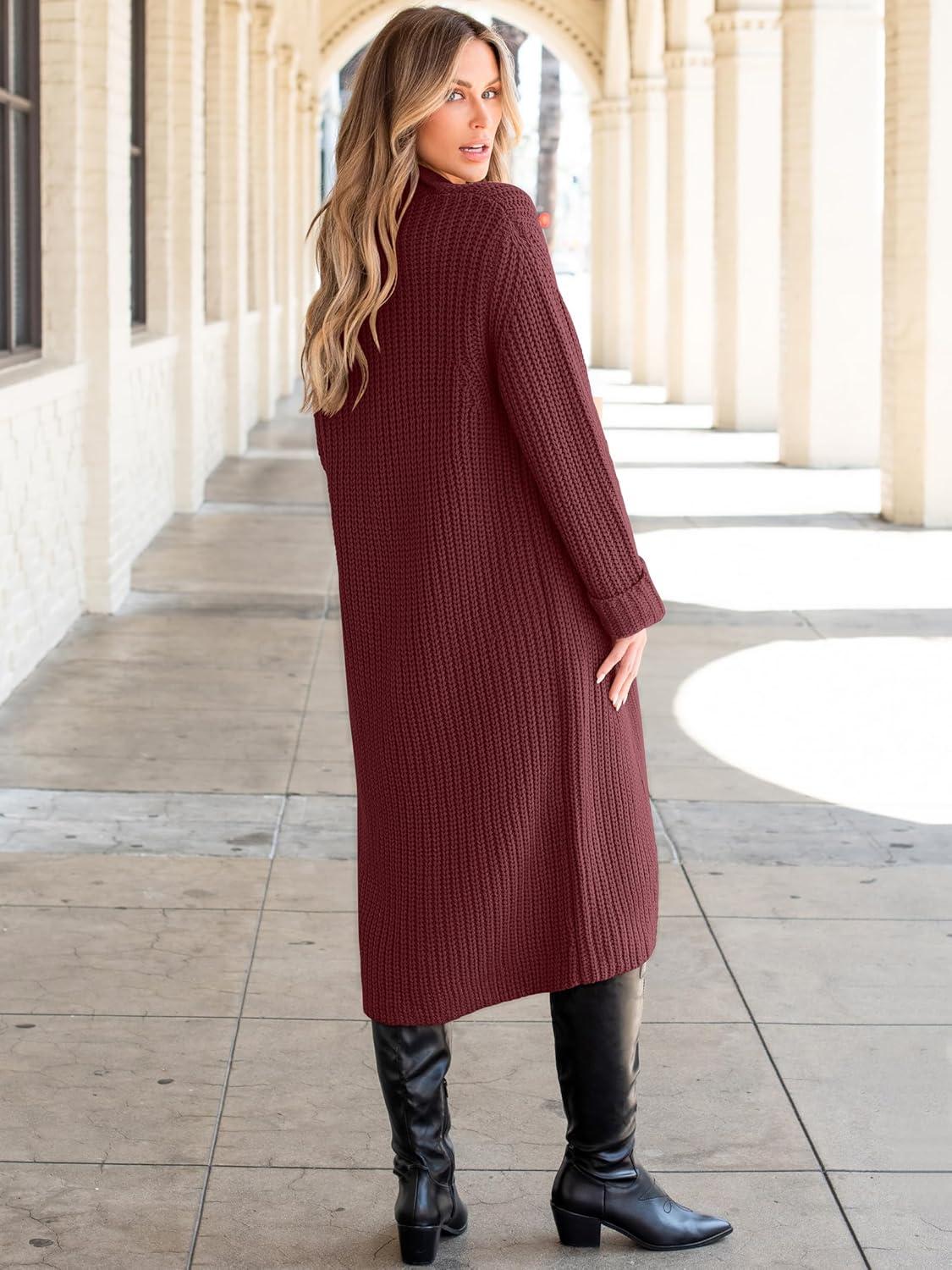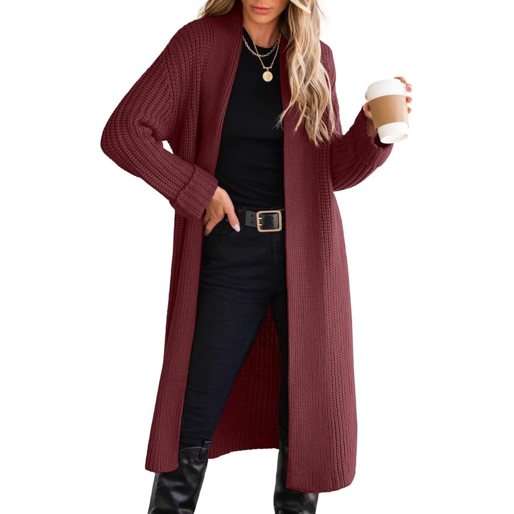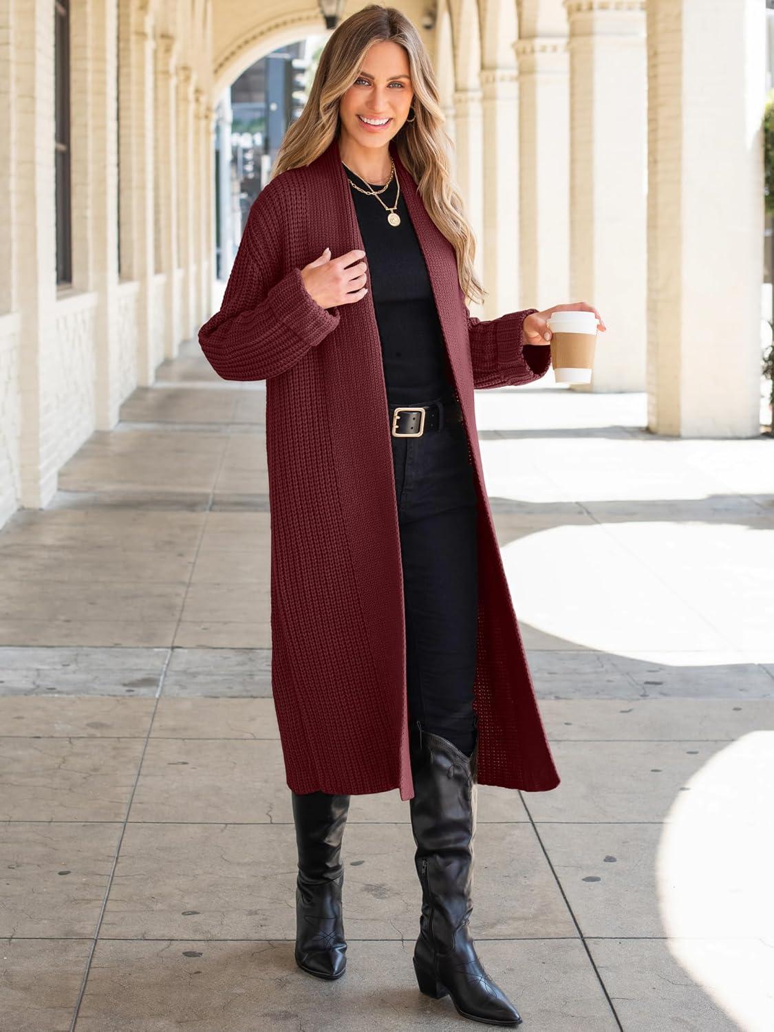 ANRABESS Women Knit Long Cardigan Long Sleeve Open Front Lapel Oversized Sweater Coat 2025 Fall Duster Outerwear Clothes(Burgundy)