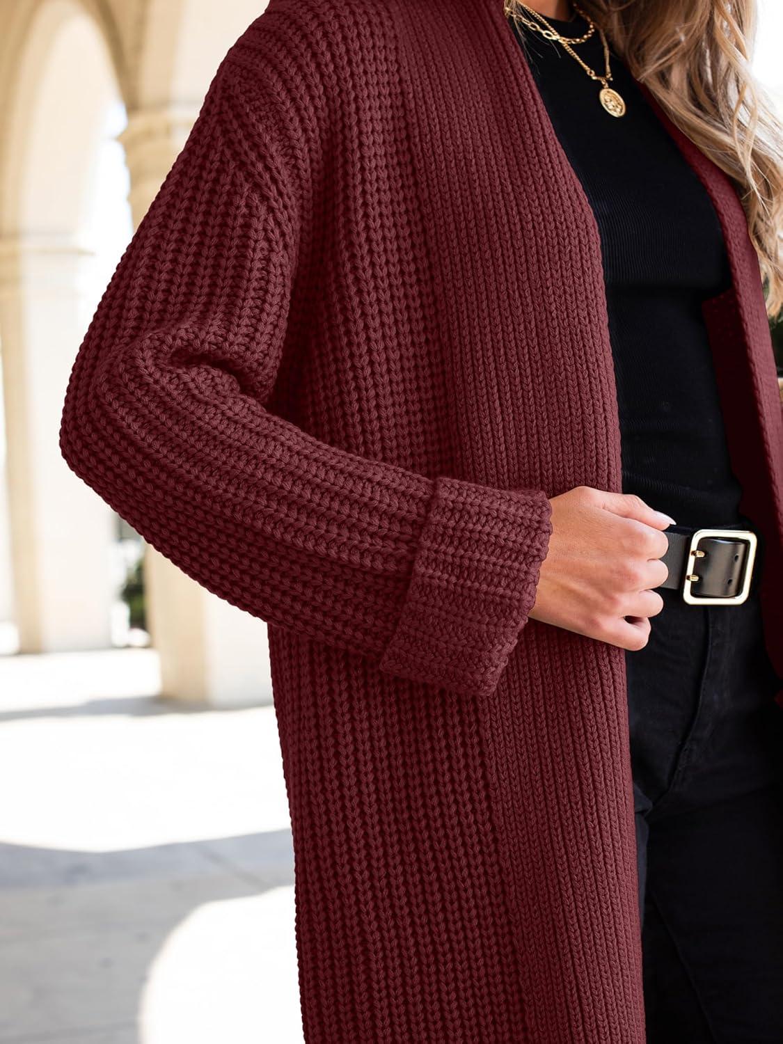 imageANRABESS Women Knit Long Cardigan Long Sleeve Open Front Lapel Oversized Sweater Coat 2025 Fall Duster Outerwear ClothesBurgundy