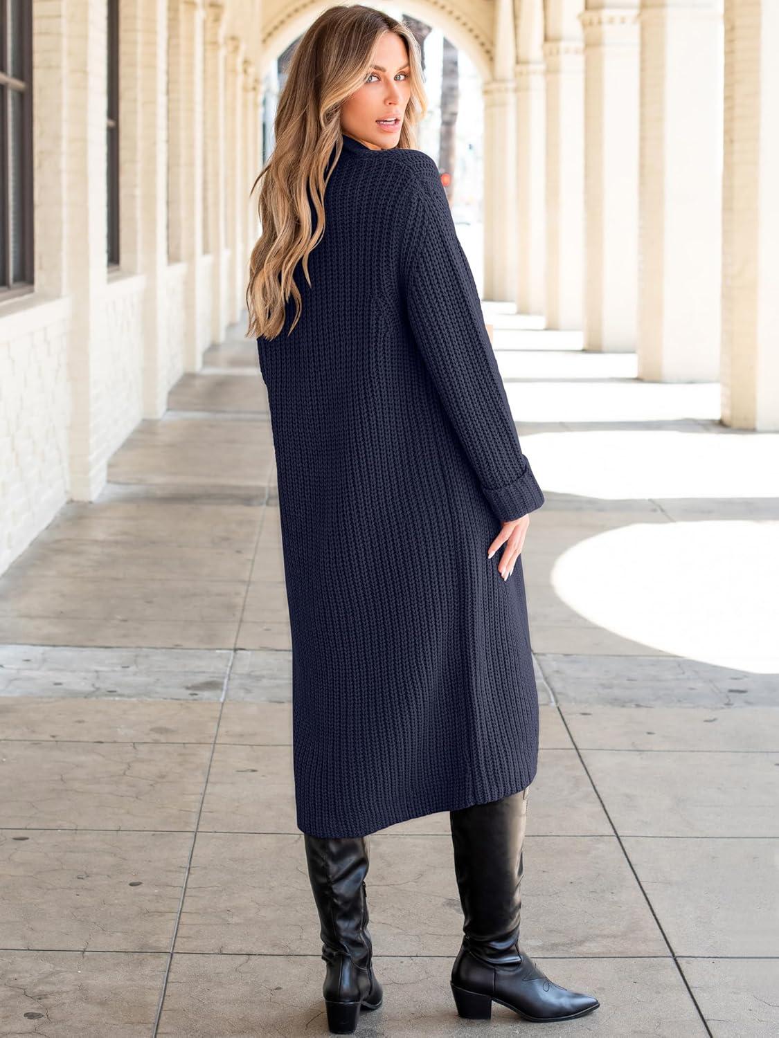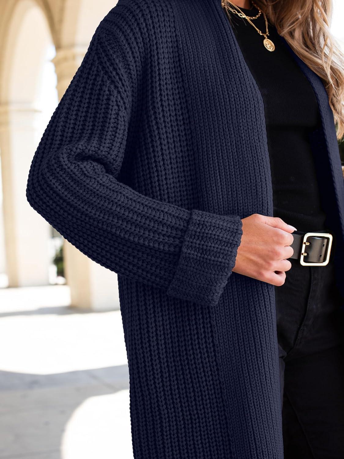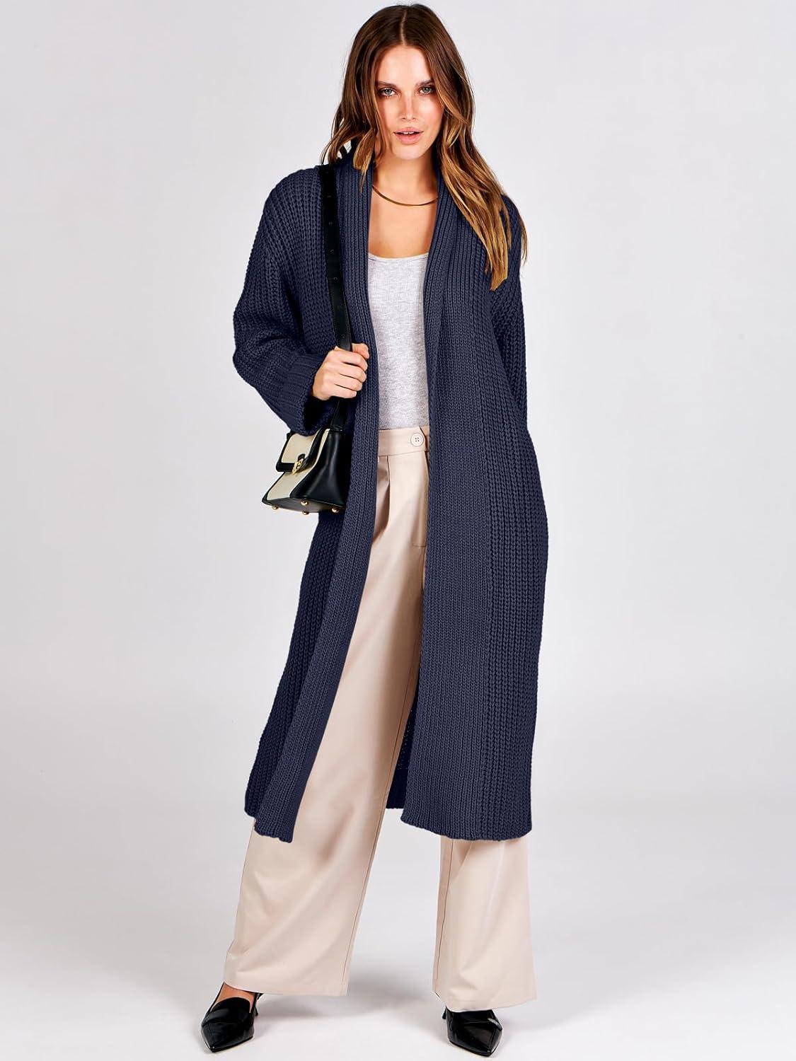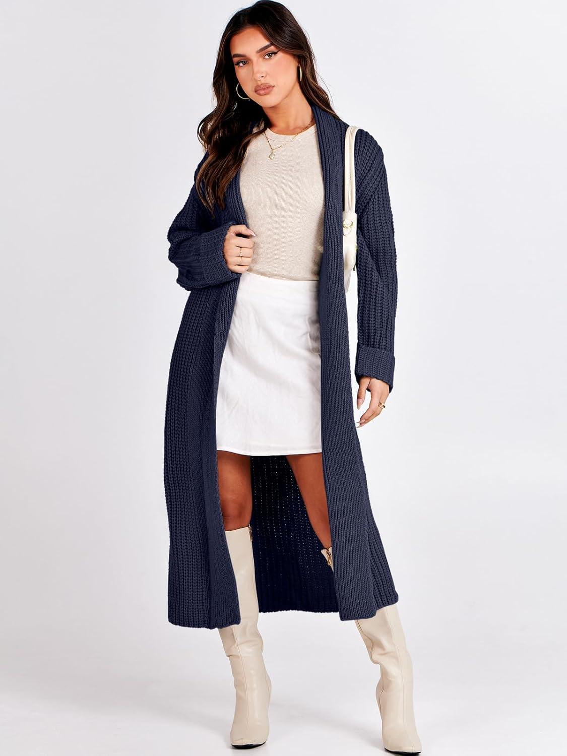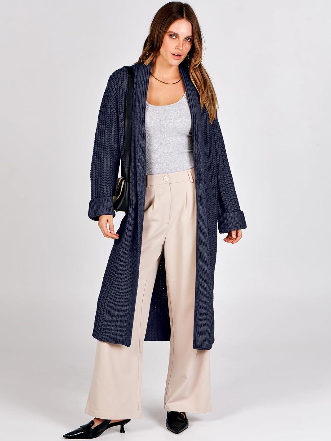 ANRABESS Women Knit Long Cardigan Long Sleeve Open Front Lapel Oversized Sweater Coat 2025 Fall Duster Outerwear Clothes(Navy Blue)