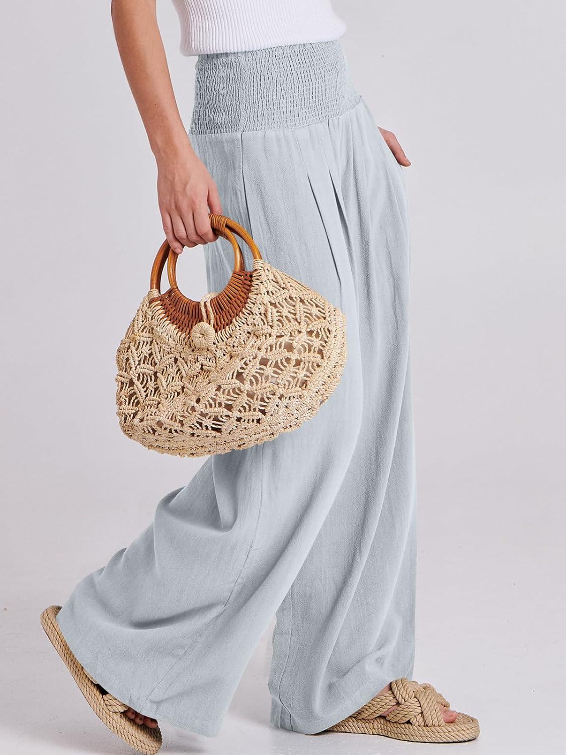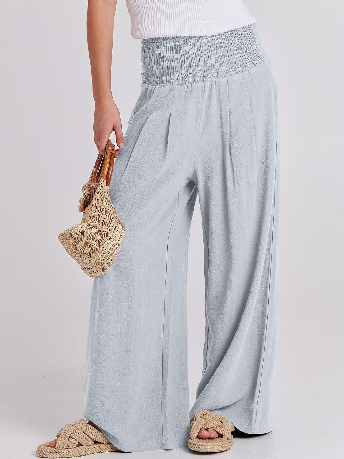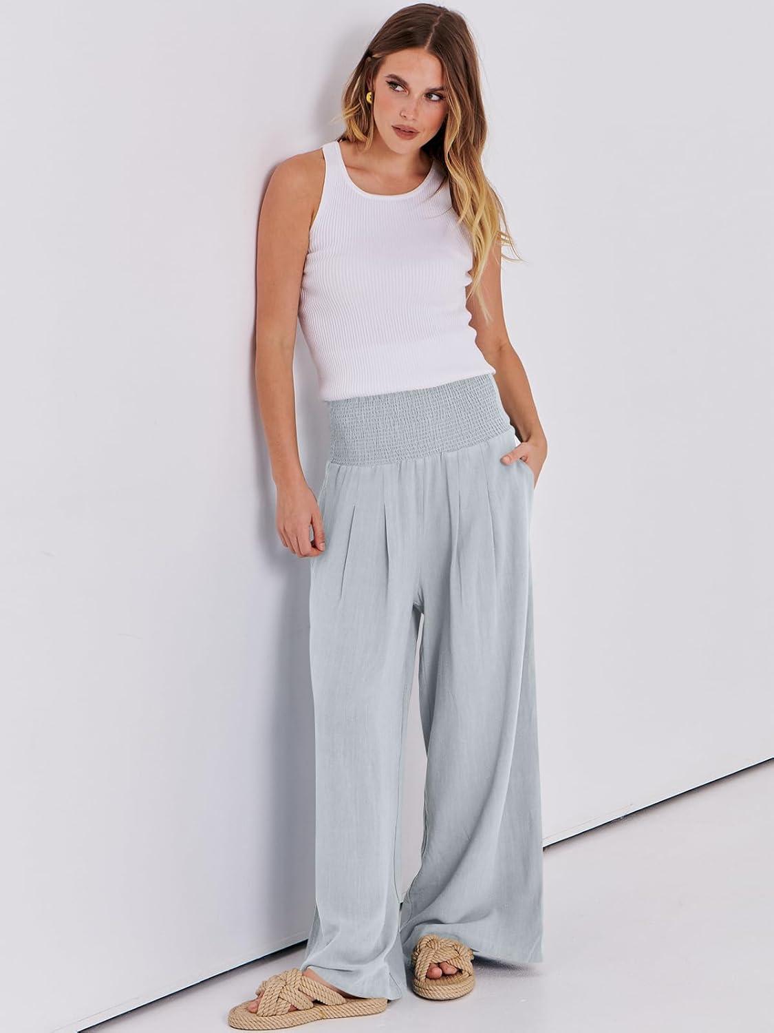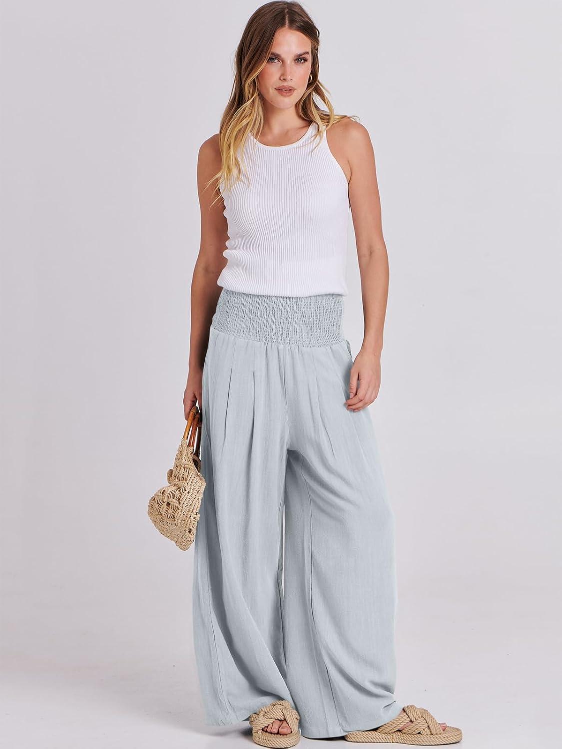 imageANRABESS Women Linen Palazzo Pants Summer Boho Wide Leg High Waist Casual Lounge Pant 2025 Beach Travel Vacation OutfitsLake