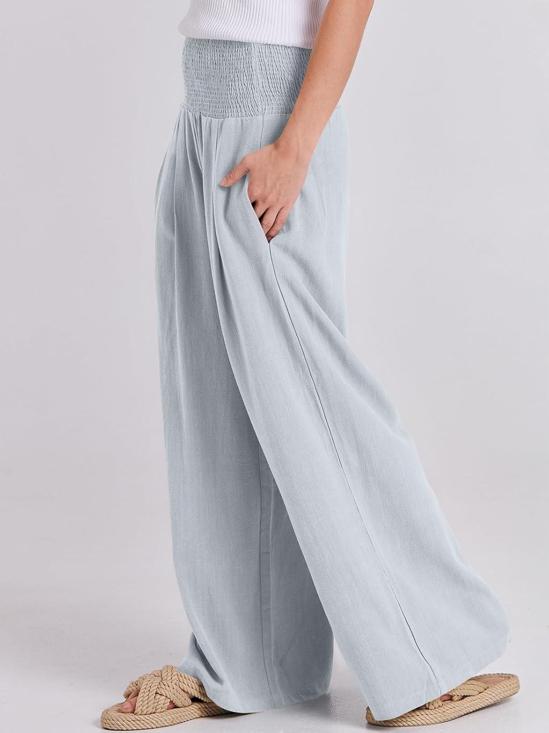 imageANRABESS Women Linen Palazzo Pants Summer Boho Wide Leg High Waist Casual Lounge Pant 2025 Beach Travel Vacation OutfitsLight Blue
