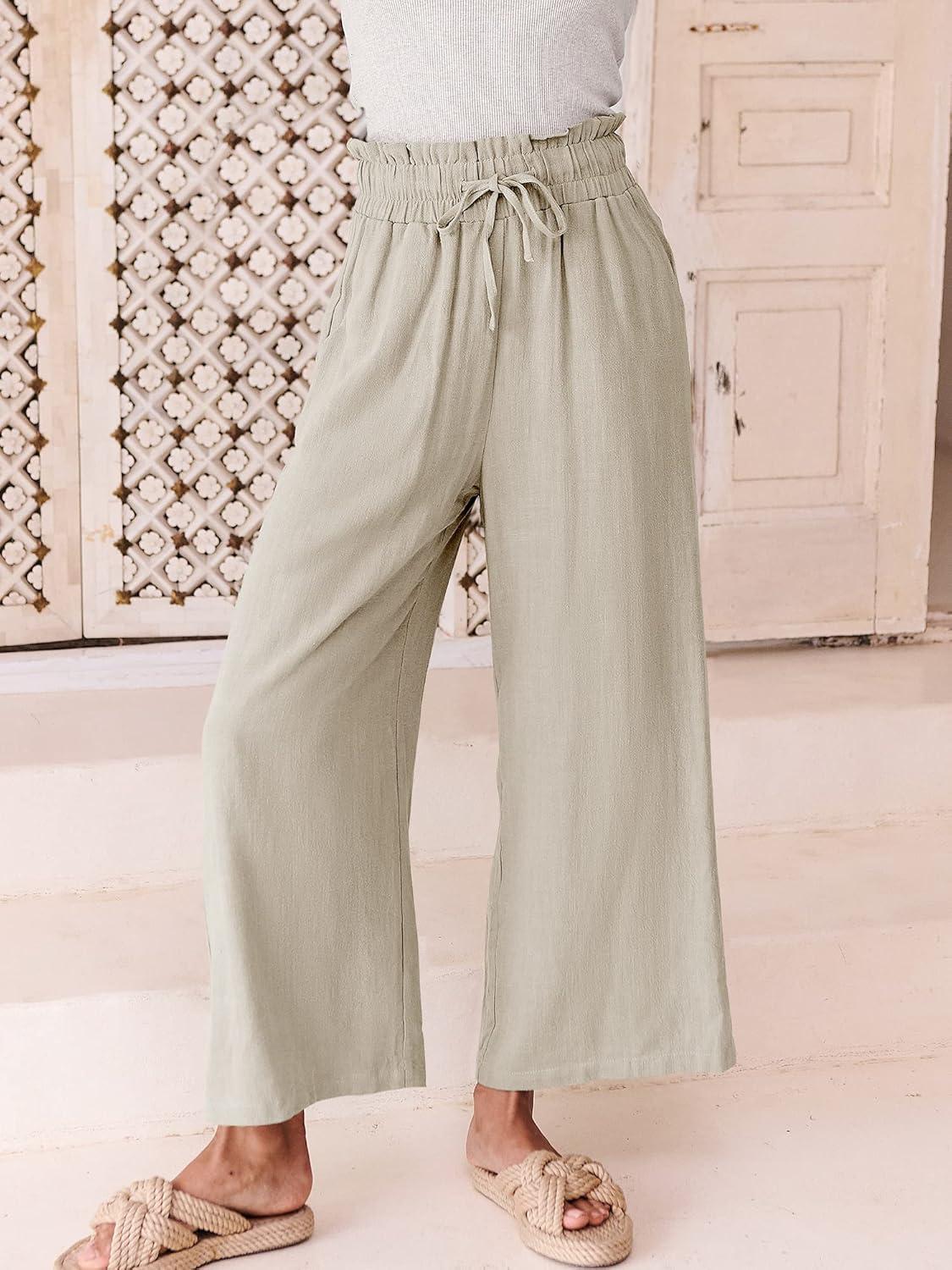 imageANRABESS Women Linen Pants Casual Loose High Waist Boho Wide Leg Cropped Palazzo Beach Pants Summer Outfits 2026 TrendyArmy Green