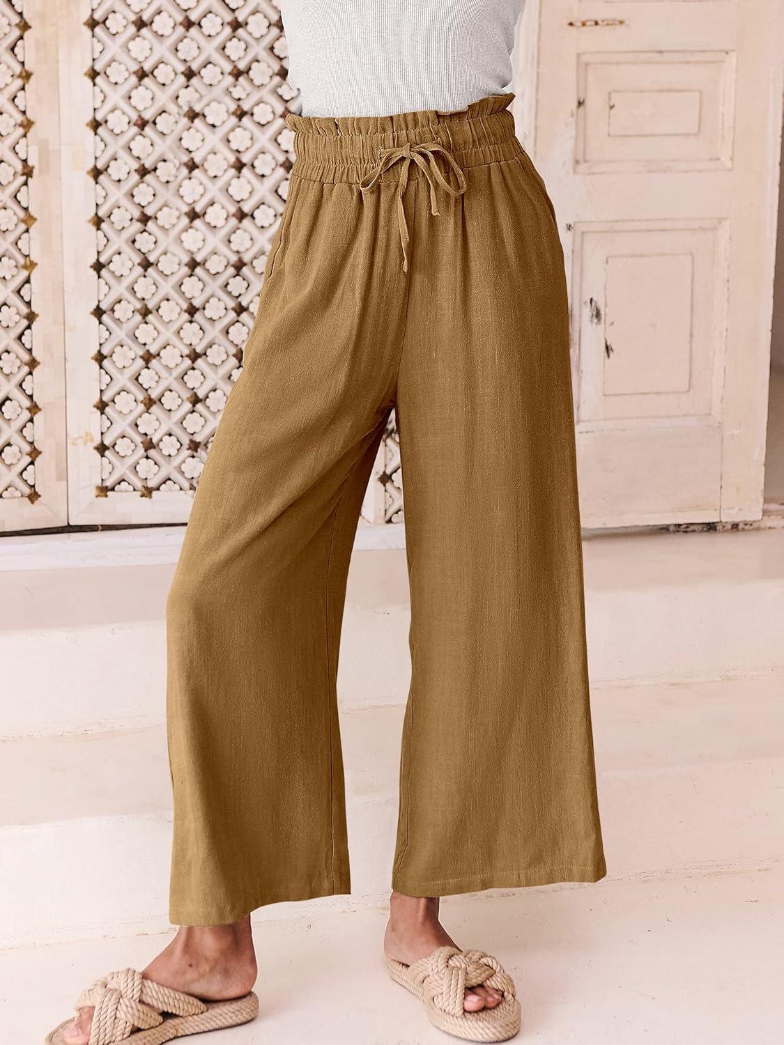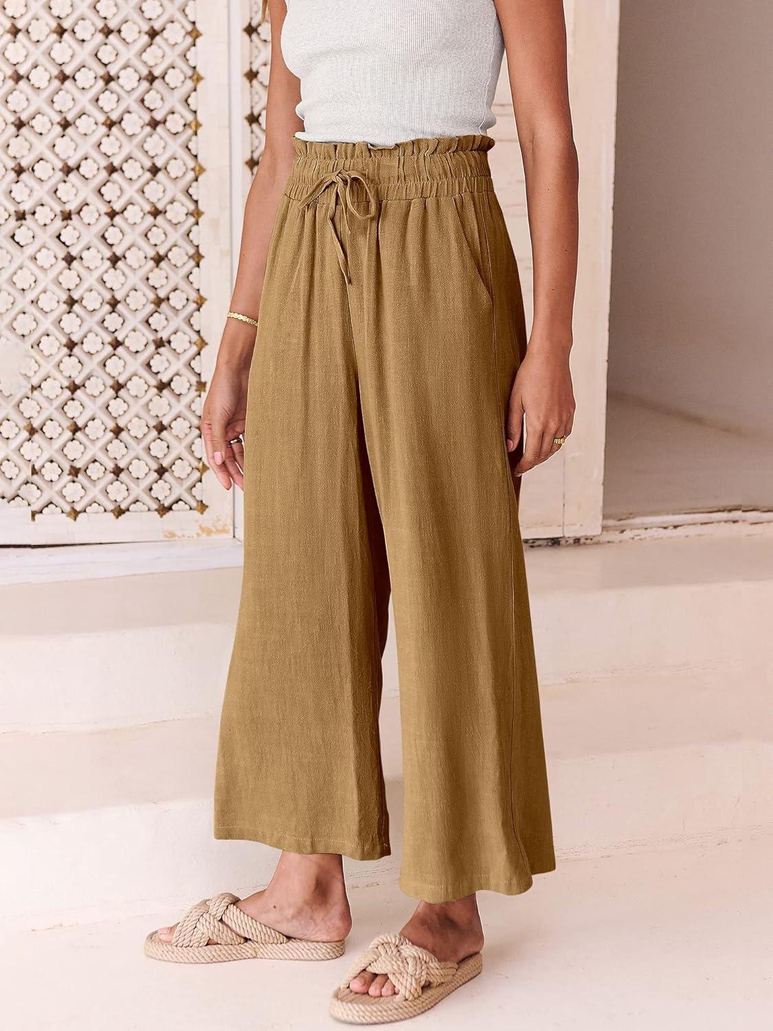 imageANRABESS Women Linen Pants Casual Loose High Waist Boho Wide Leg Cropped Palazzo Beach Pants Summer Outfits 2026 TrendyDark Khaki