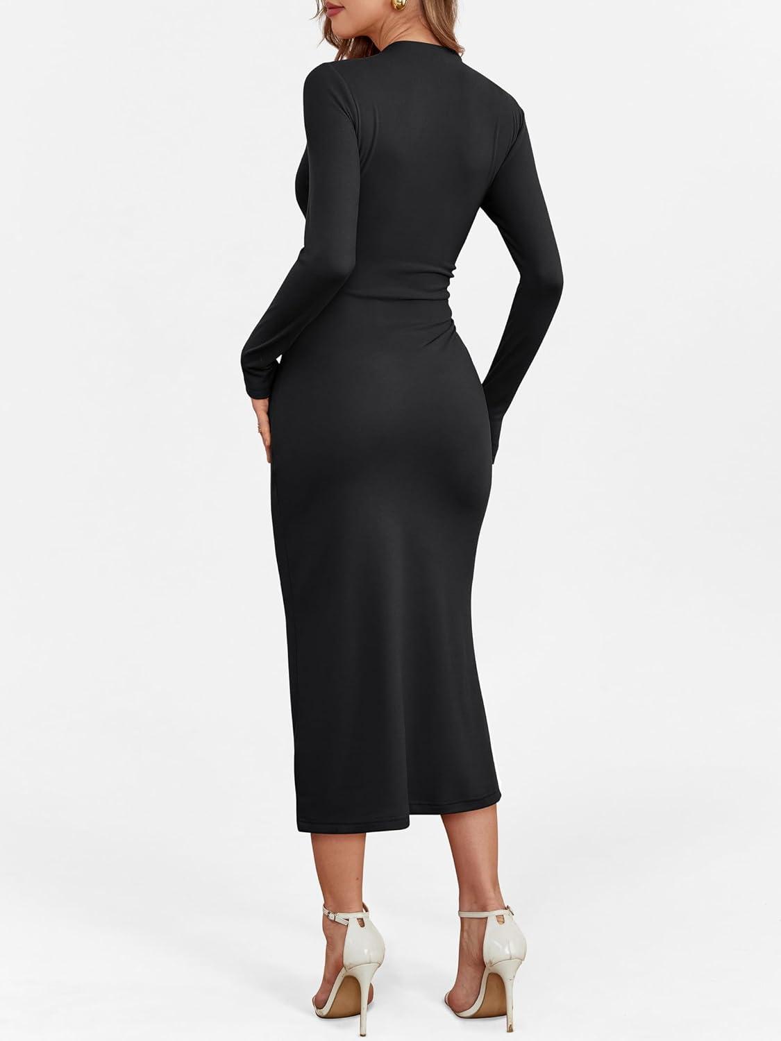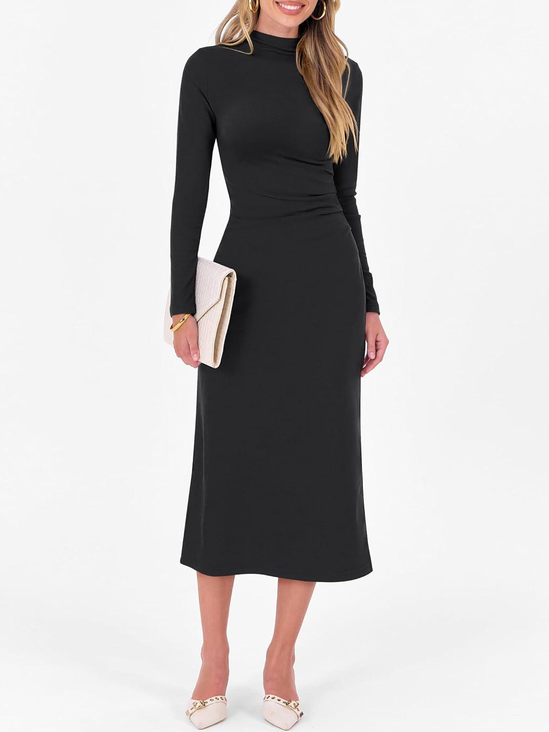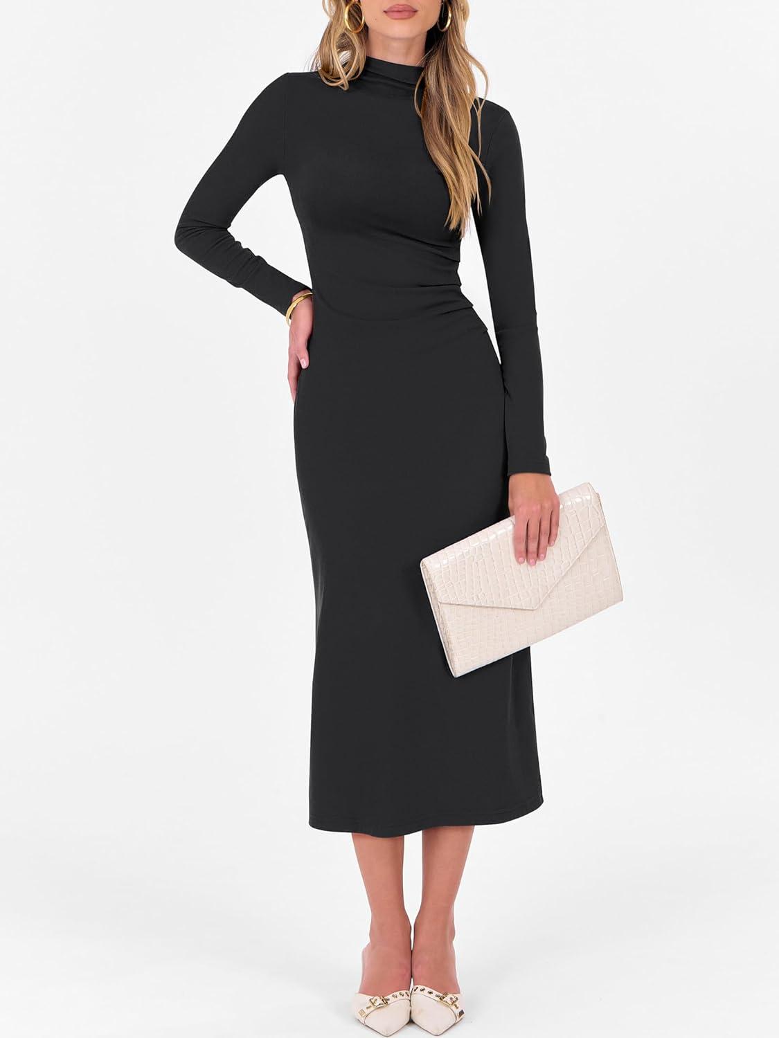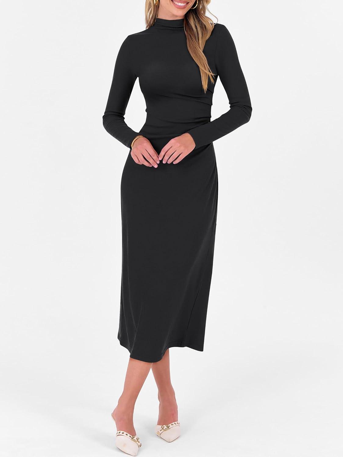 ANRABESS Women Long Sleeve Bodycon Dress Fall 2025 Mock Neck Formal Elegant Party Wedding Guest Cocktail Long Maxi Dresses(Black)