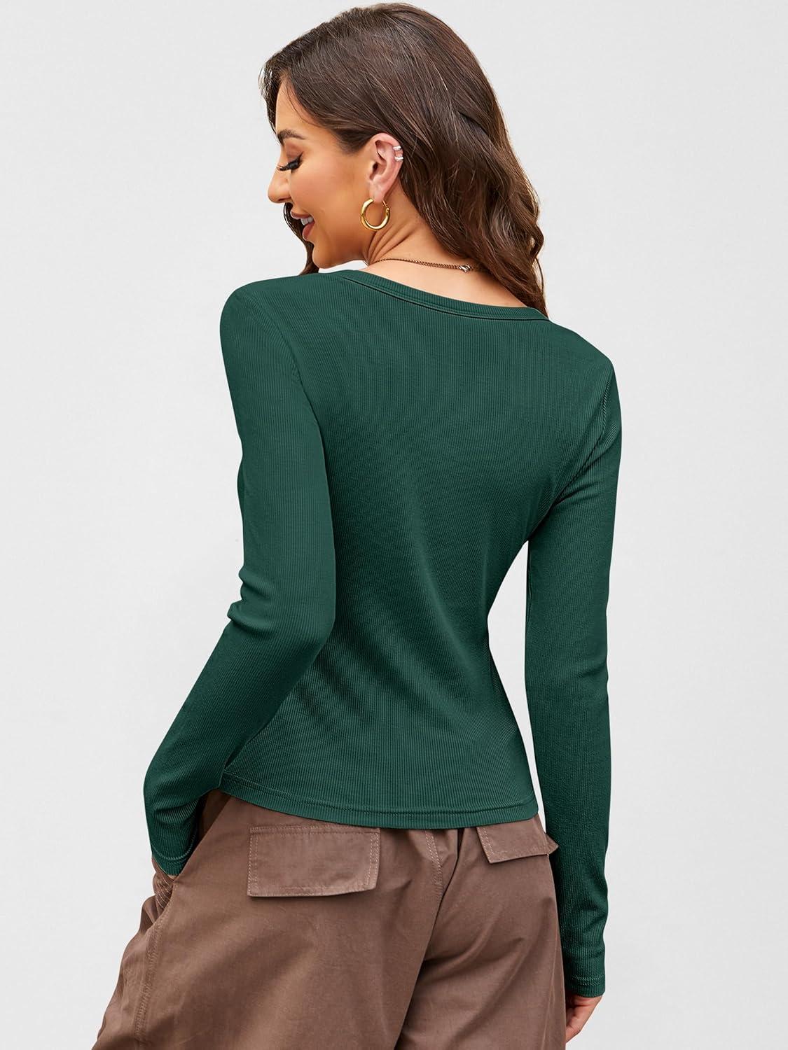 imageANRABESS Women Long Sleeve Button Down Shirts Ribbed Knit Slim Fitted Crop Tops 2025 Fall Y2K Dressy Casual Trendy OutfitsDeep Green