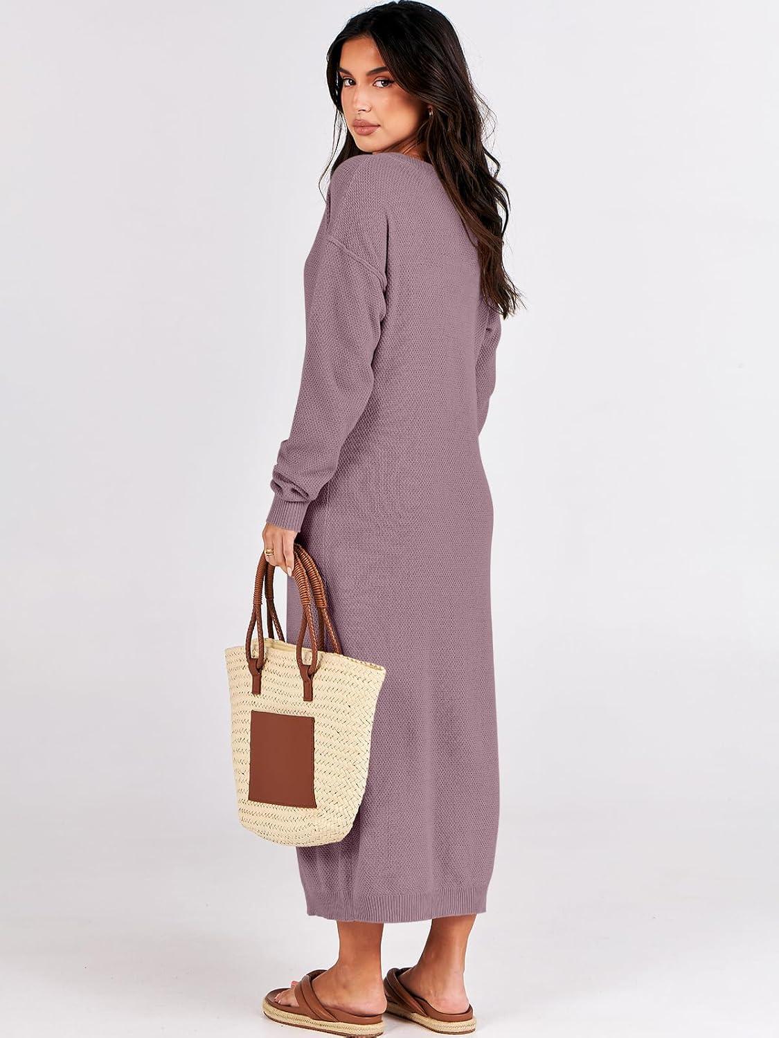 imageANRABESS Women Long Sleeve Button V Neck Oversized Casual Loose Fit Waffle Knit Fall Midi Sweater Dress 2025 Trendy OutfitsWhite