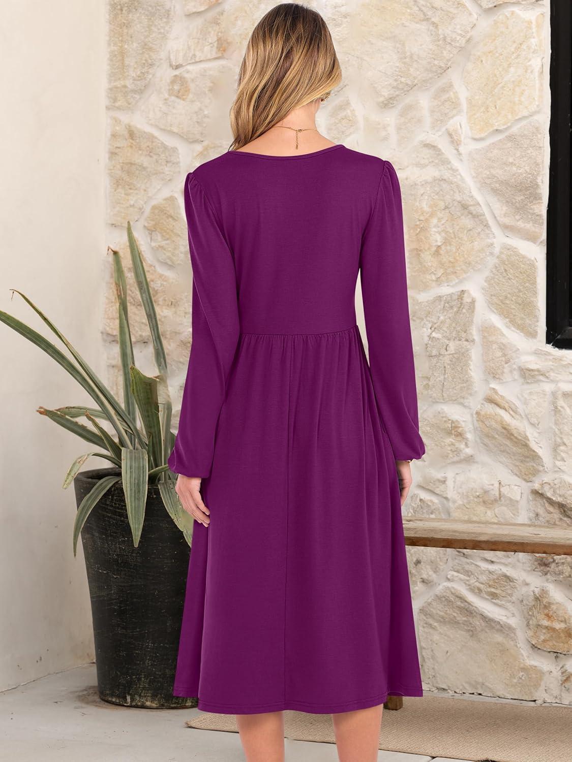 imageANRABESS Women Long Sleeve Midi Dress Crewneck 2025 Fall Fashion Casual Flowy ALine Long Dresses Vacation Outfit with PocketDeep Purple