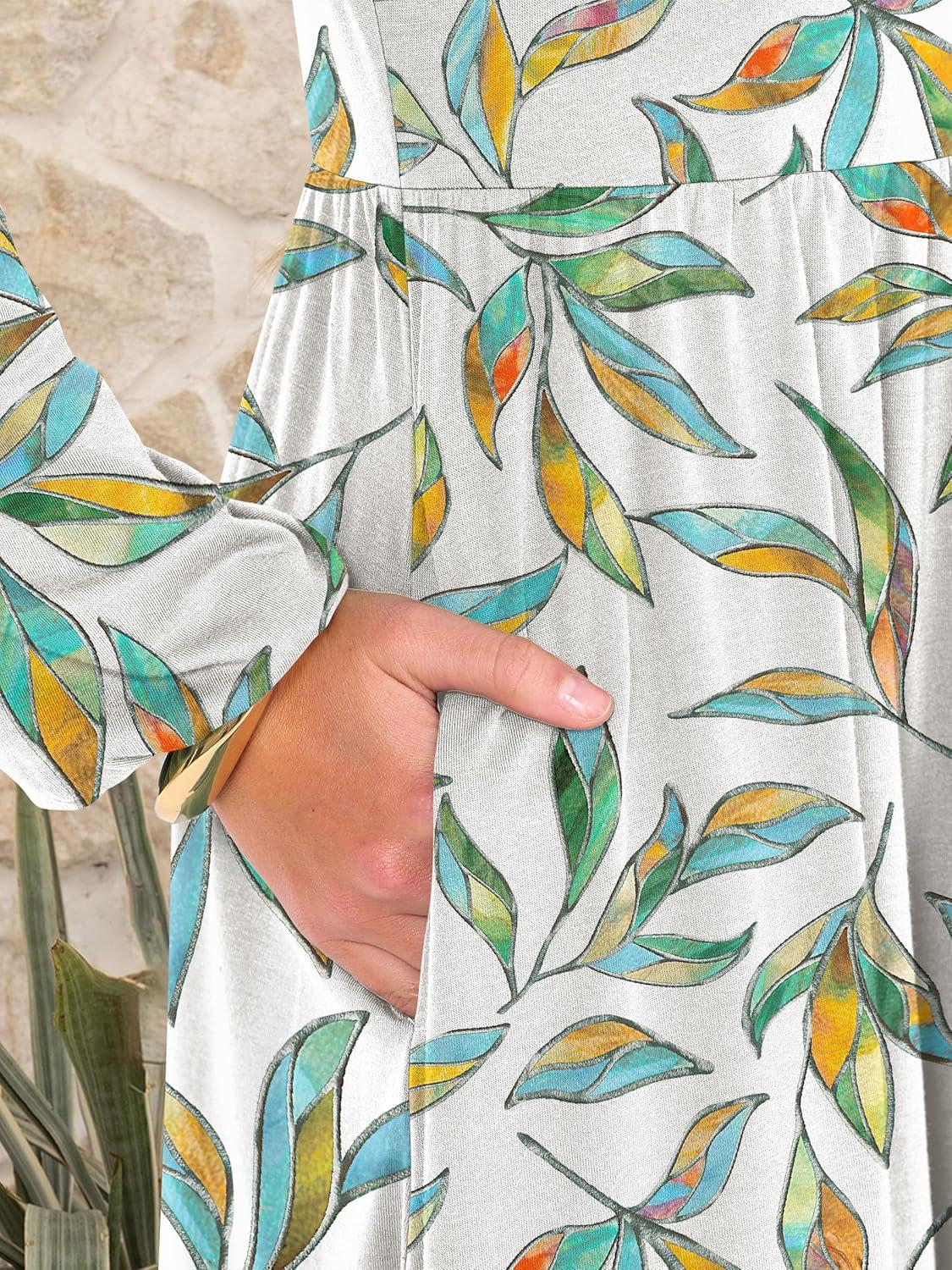 ANRABESS Women Long Sleeve Midi Dress Crewneck 2025 Fall Fashion Casual Flowy A-Line Long Dresses Vacation Outfit with Pocket(Floral Colorful)