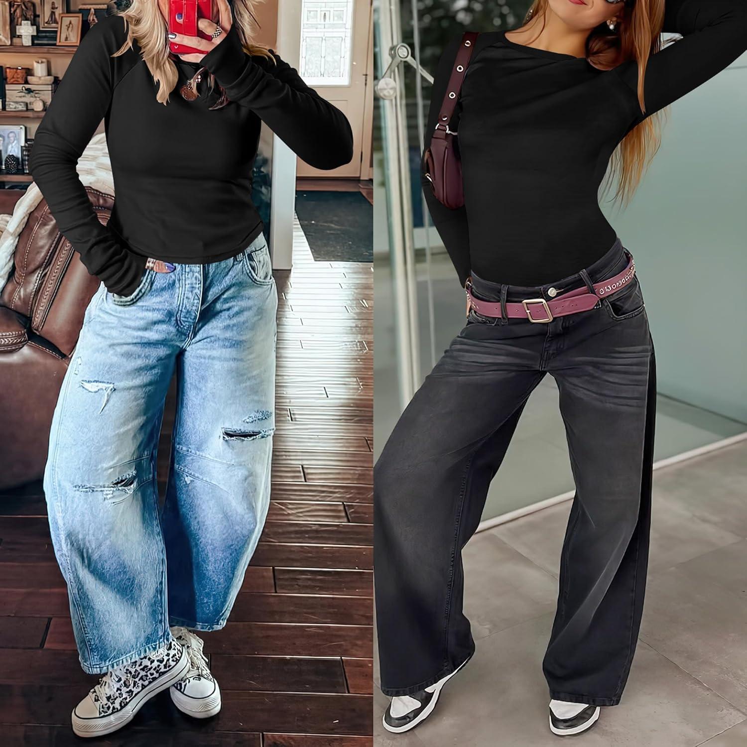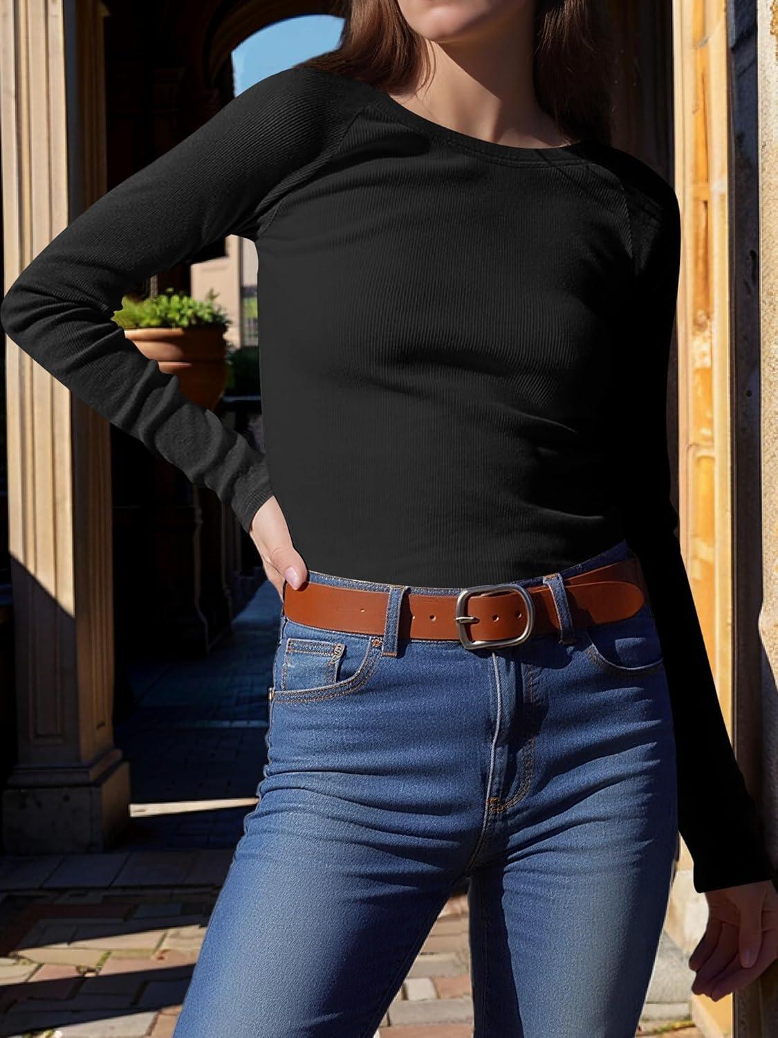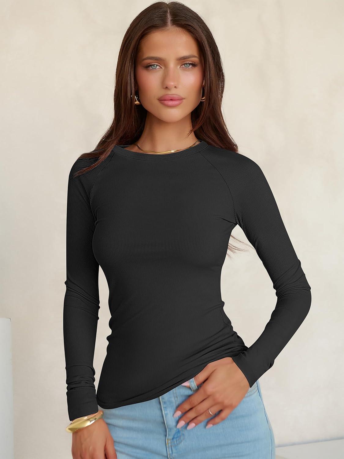 ANRABESS Women Long Sleeve Shirts Ribbed Knit Slim Fitted Tops Casual Basic Tight Tee T-Shirts 2025 Fall Underscrubs Layer(Black)
