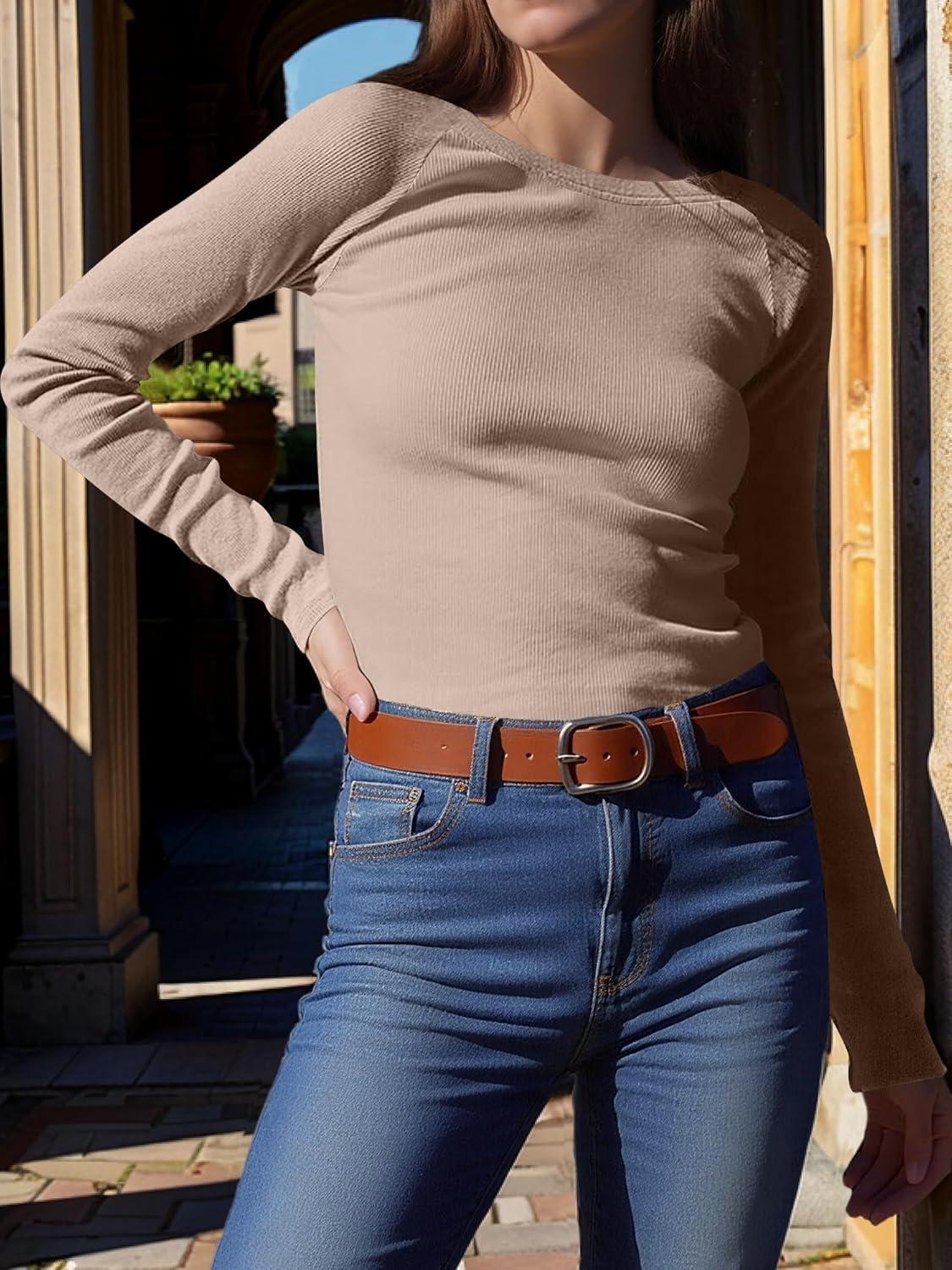 imageANRABESS Women Long Sleeve Shirts Ribbed Knit Slim Fitted Tops Casual Basic Tight Tee TShirts 2025 Fall Underscrubs LayerCamel