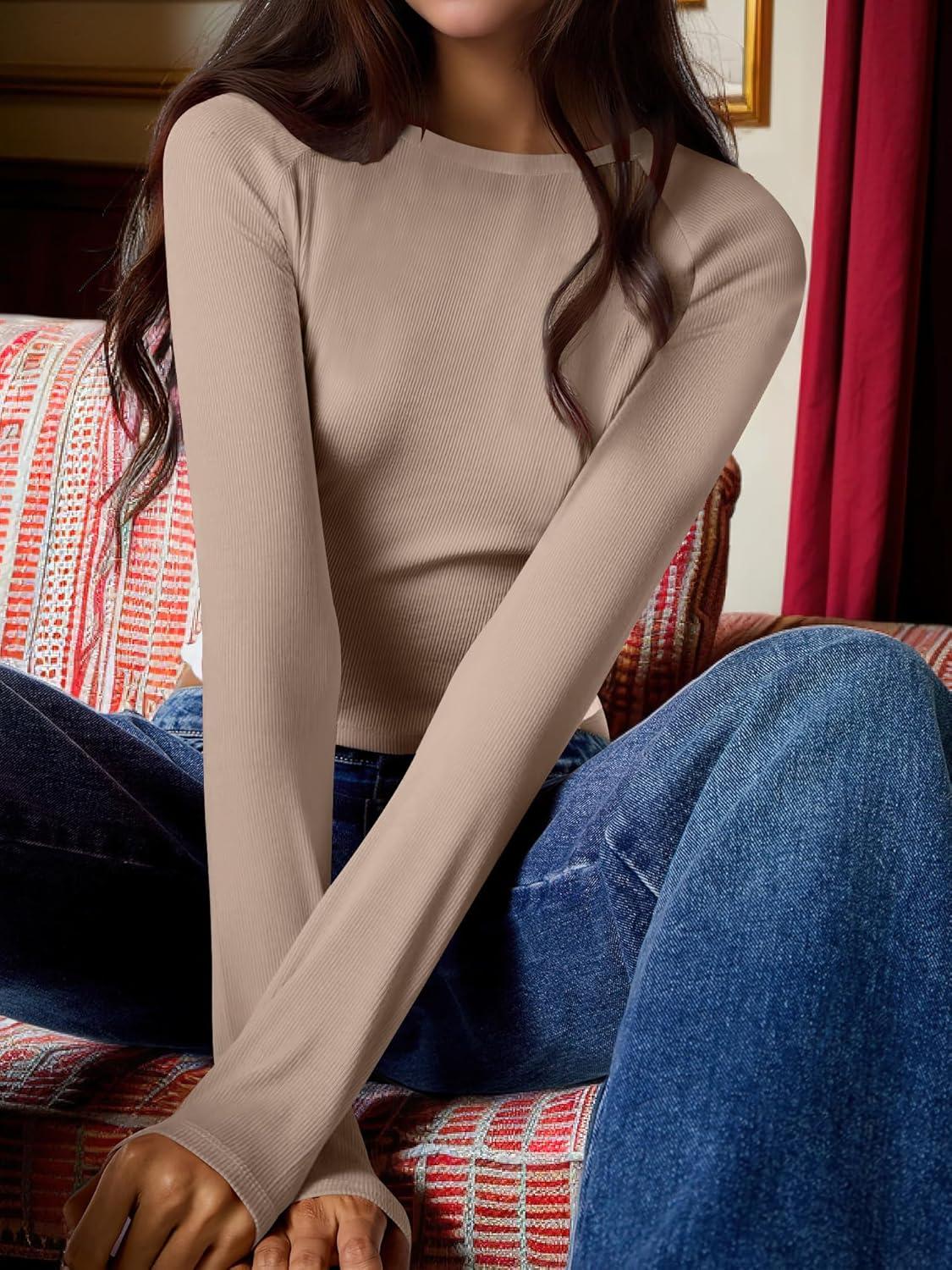 Be the first to review “ANRABESS Women Long Sleeve Shirts Ribbed Knit Slim Fitted Tops Casual Basic Tight Tee T-Shirts 2025 Fall Underscrubs Layer(Camel)”