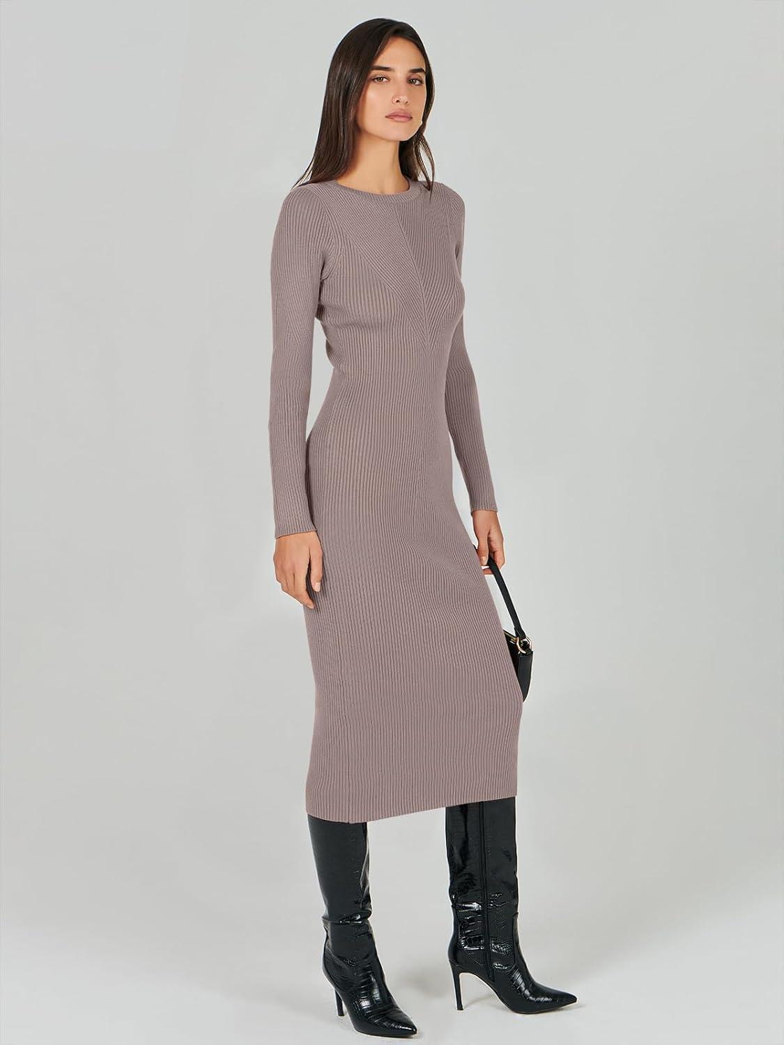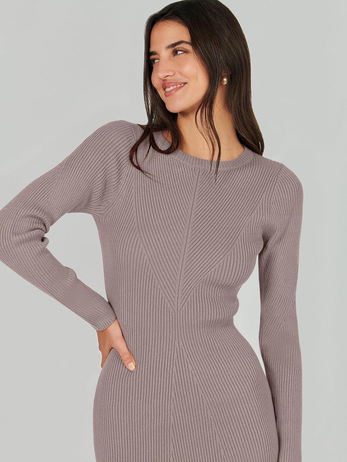 imageANRABESS Women Long Sleeve Sweater Dress Crewneck Bodycon Stretch Slim Fit Ribbed Knit Midi Dresses 2025 Fall Trendy OutfitsAlmond