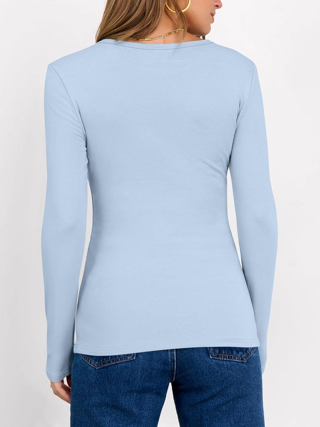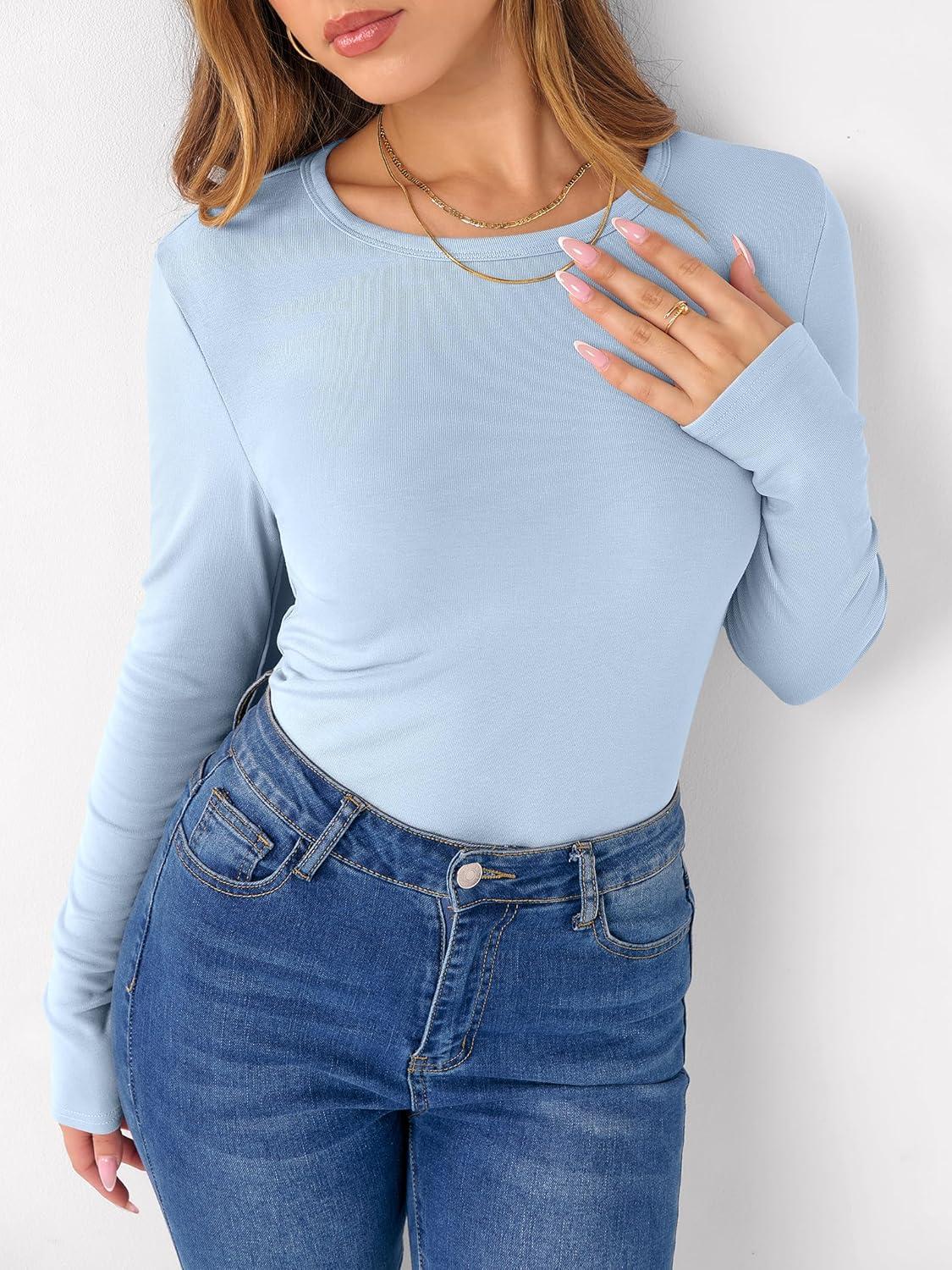 ANRABESS Women Long Sleeve Thermal Shirt Fleece Tops 2025 Fall Winter Crew Neck Casual Base Layer T-Shirts Warm Undershirts(Blue)