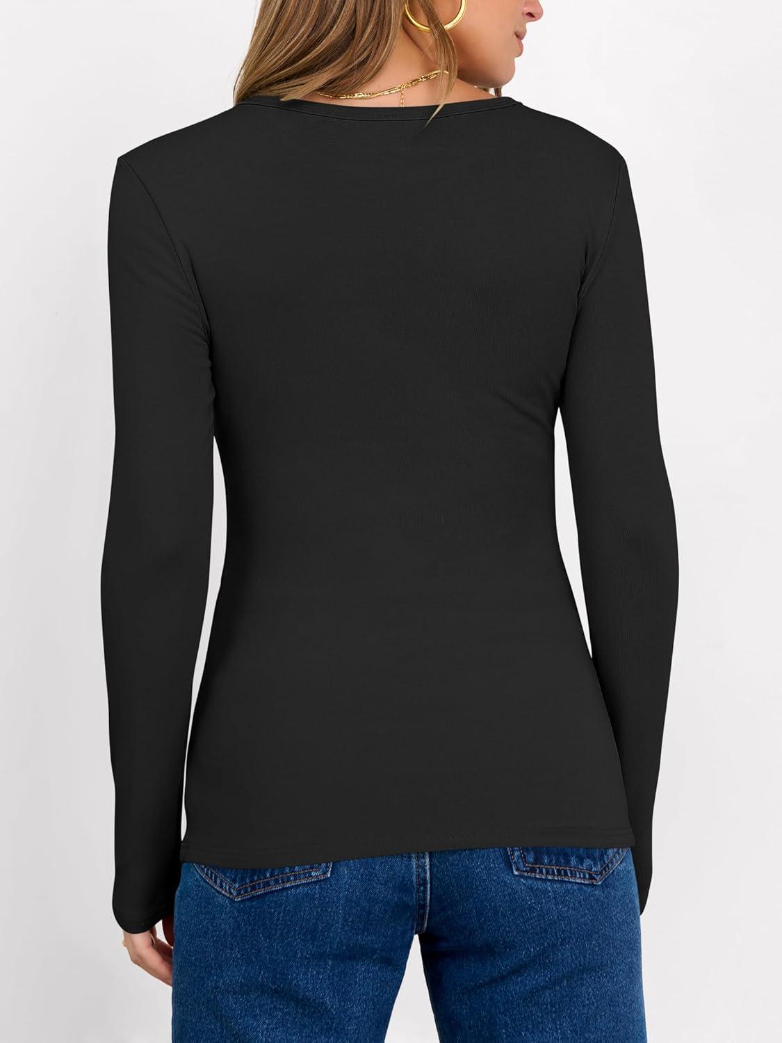 ANRABESS Women Long Sleeve Thermal Shirt Fleece Tops 2026 Fall Winter Crew Neck Casual Base Layer T-Shirts Warm Undershirts(Black)